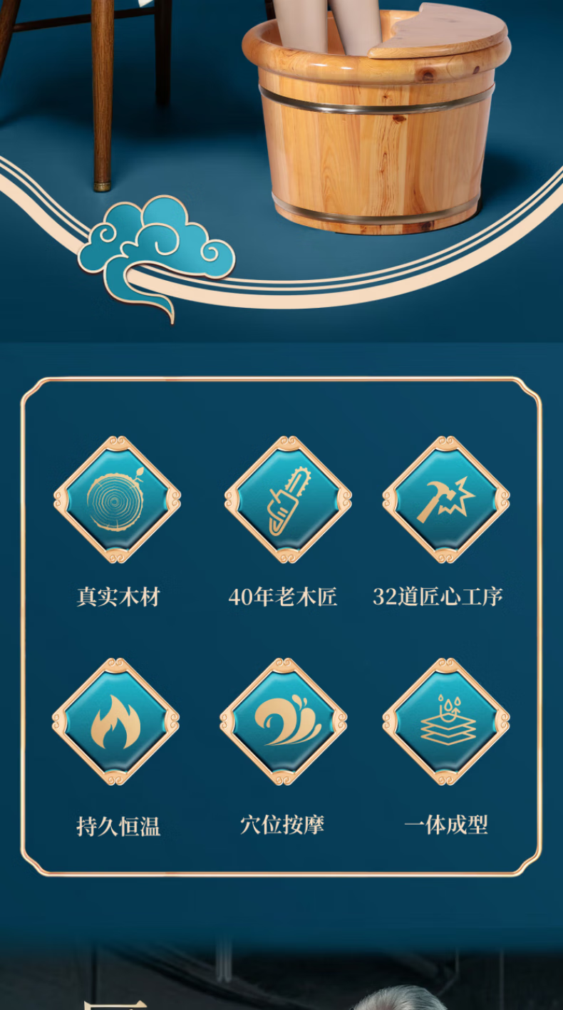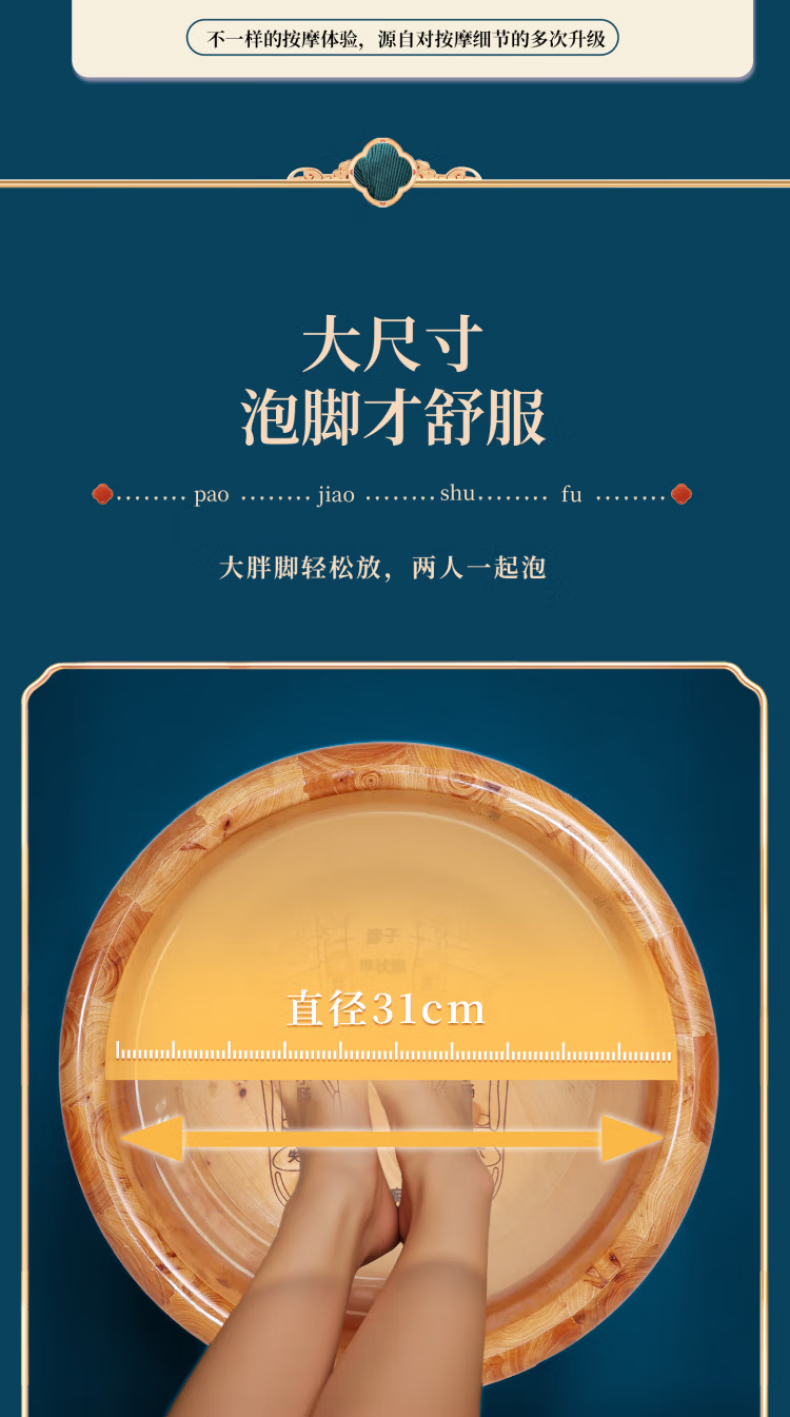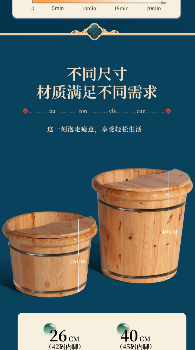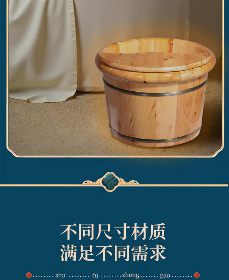 DEATKN德国高端中医养生泡脚桶家用木桶香柏木按摩足浴桶过小腿保温 26cm无盖+穴位按摩(42码内脚)