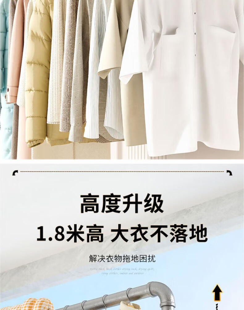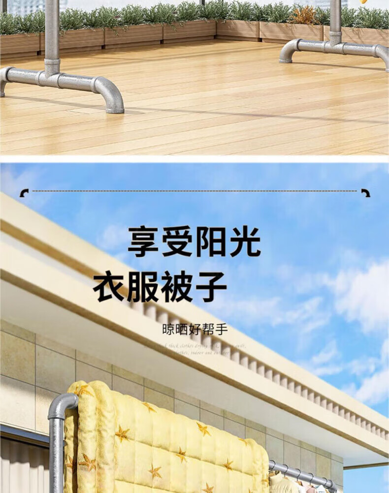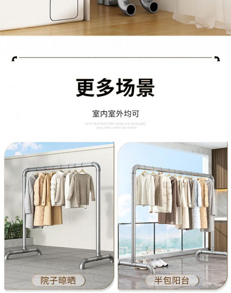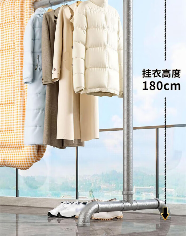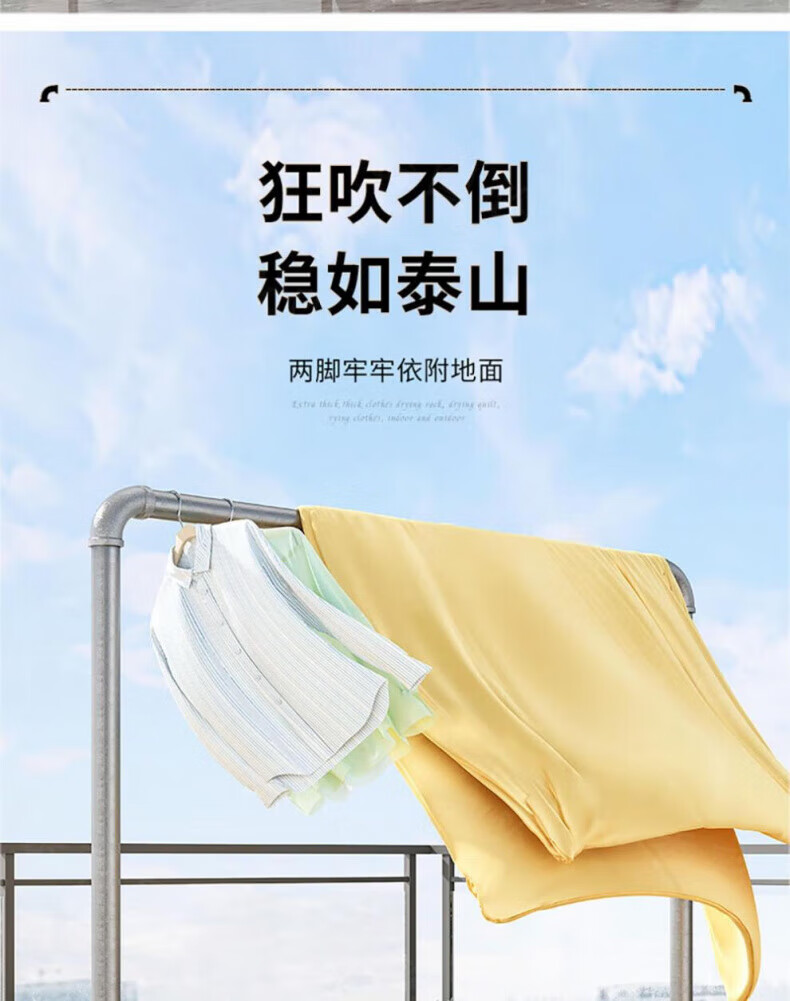 DEATKN德国高端钢管晾衣架落地卧室户外家用阳台挂衣服简易晒被凉衣 6分管长1.2米高1.35米