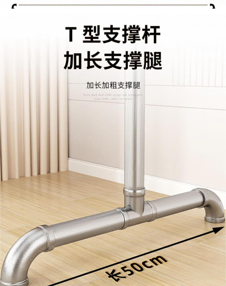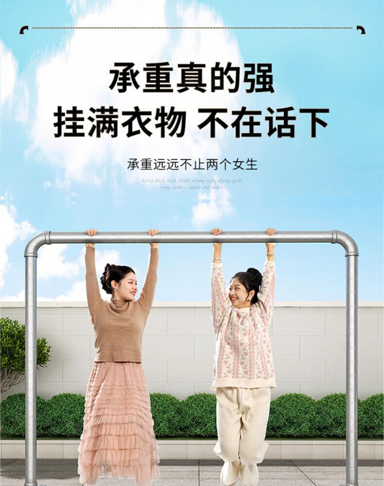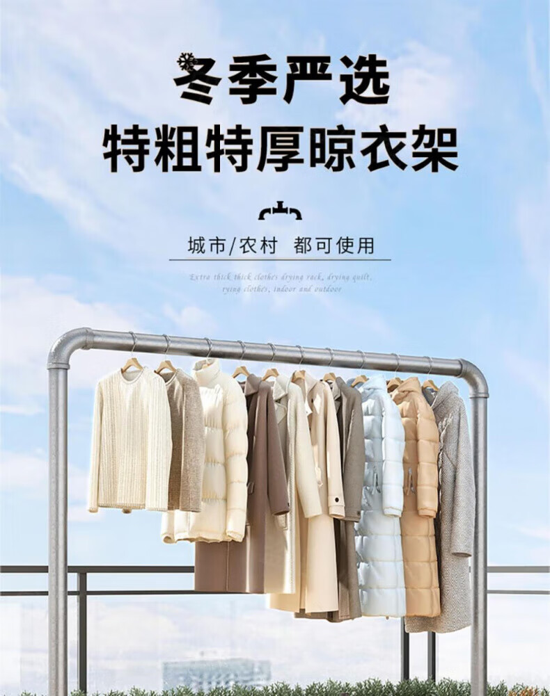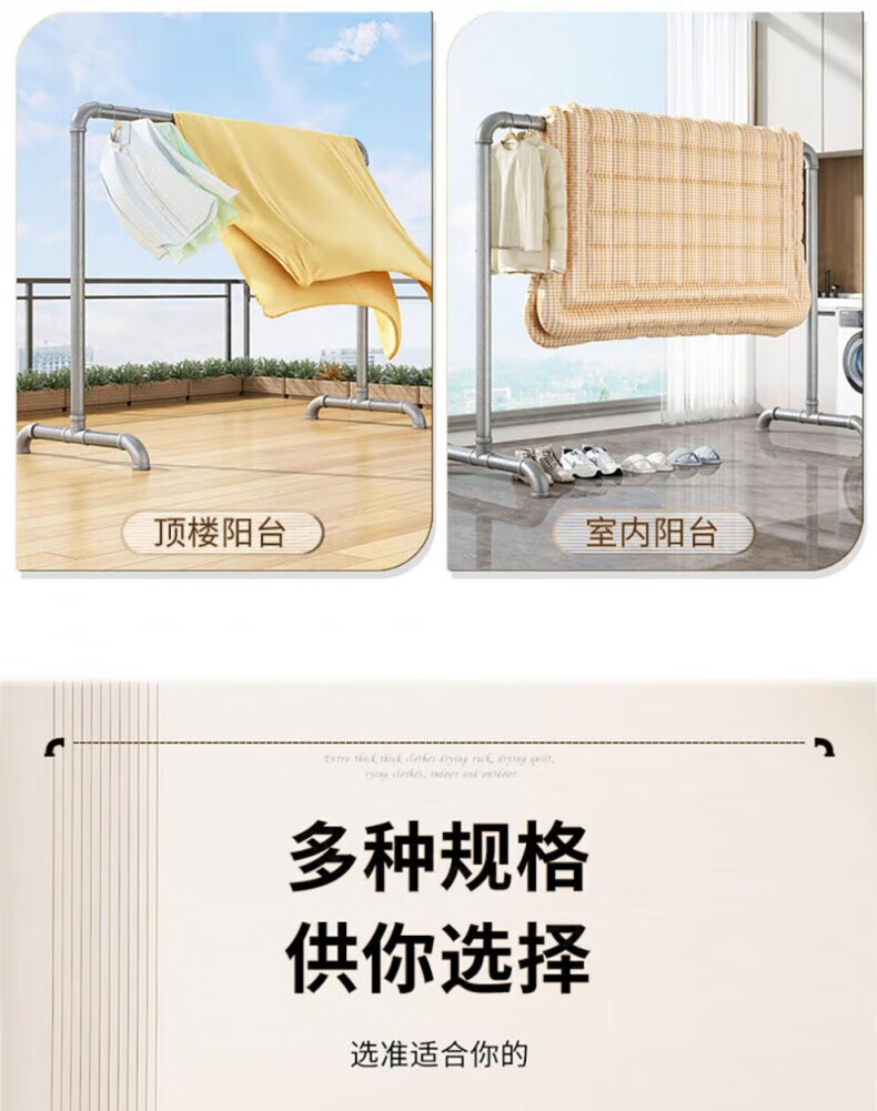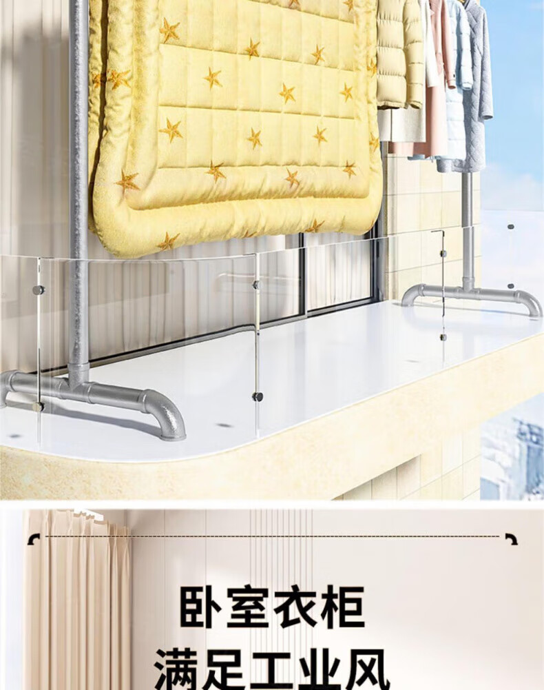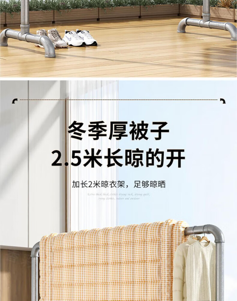 DEATKN德国高端钢管晾衣架落地卧室户外家用阳台挂衣服简易晒被凉衣 6分管长1.2米高1.35米