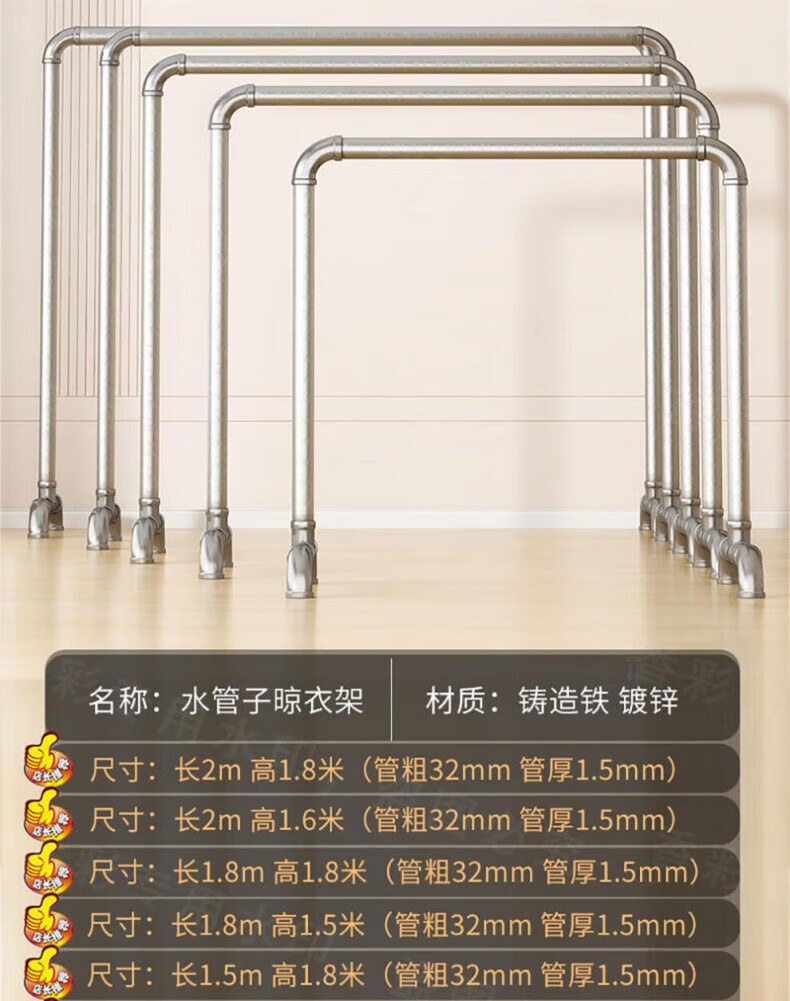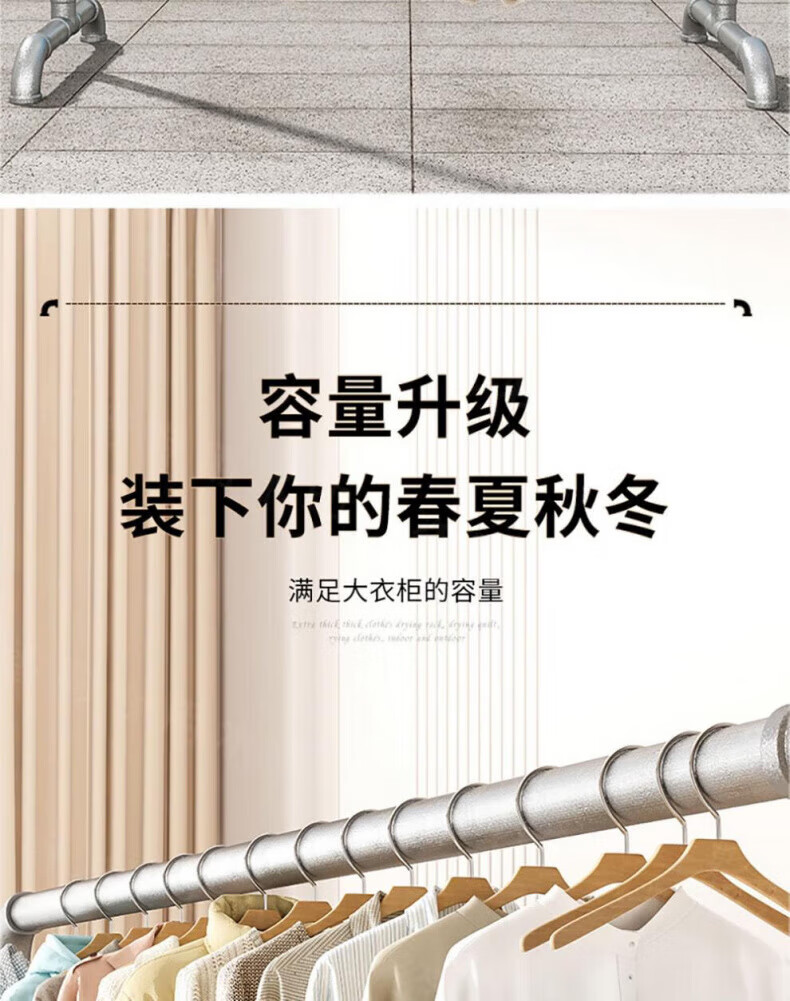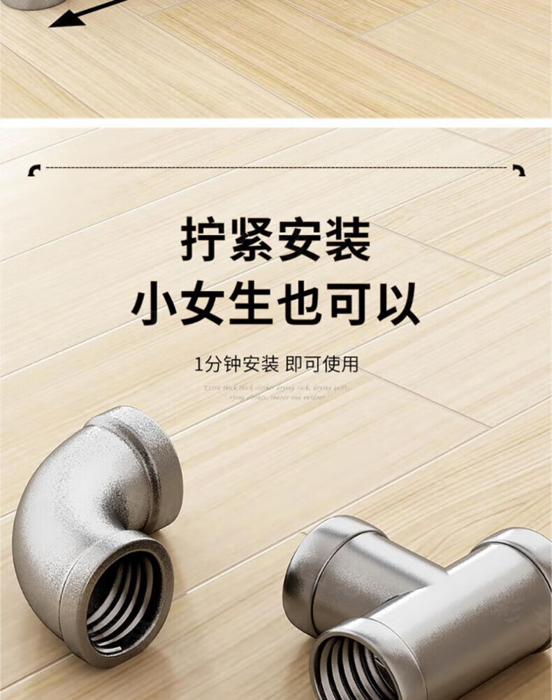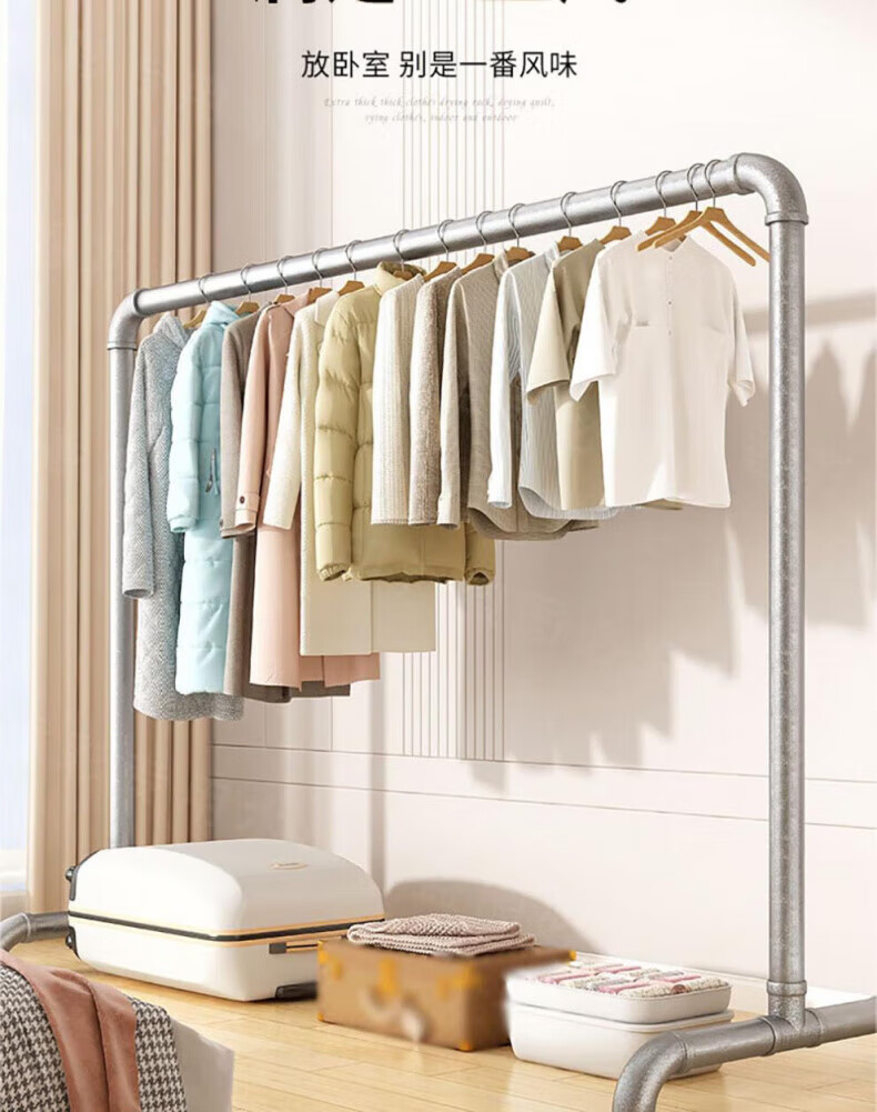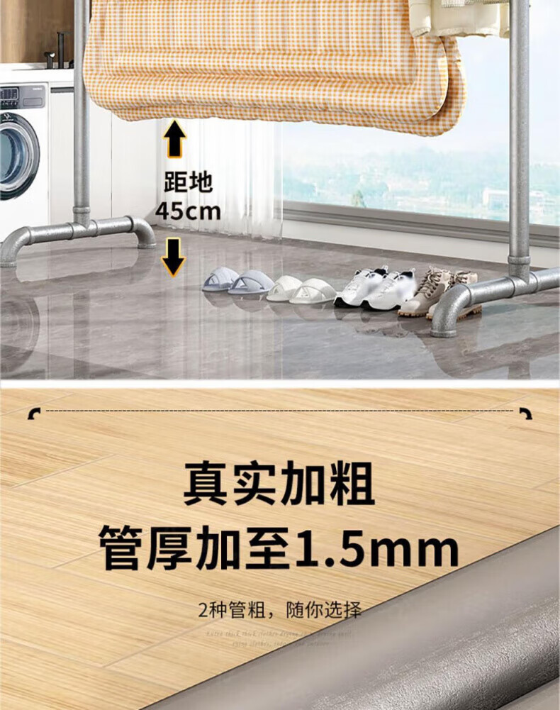 DEATKN德国高端钢管晾衣架落地卧室户外家用阳台挂衣服简易晒被凉衣 6分管长1.2米高1.35米