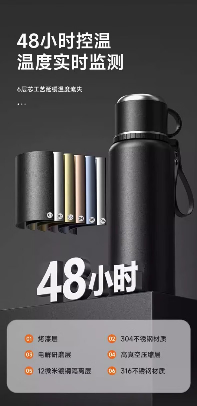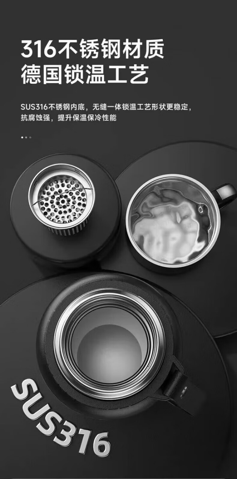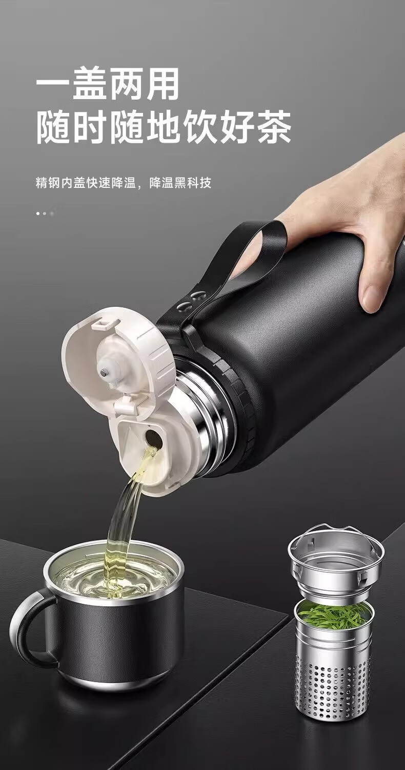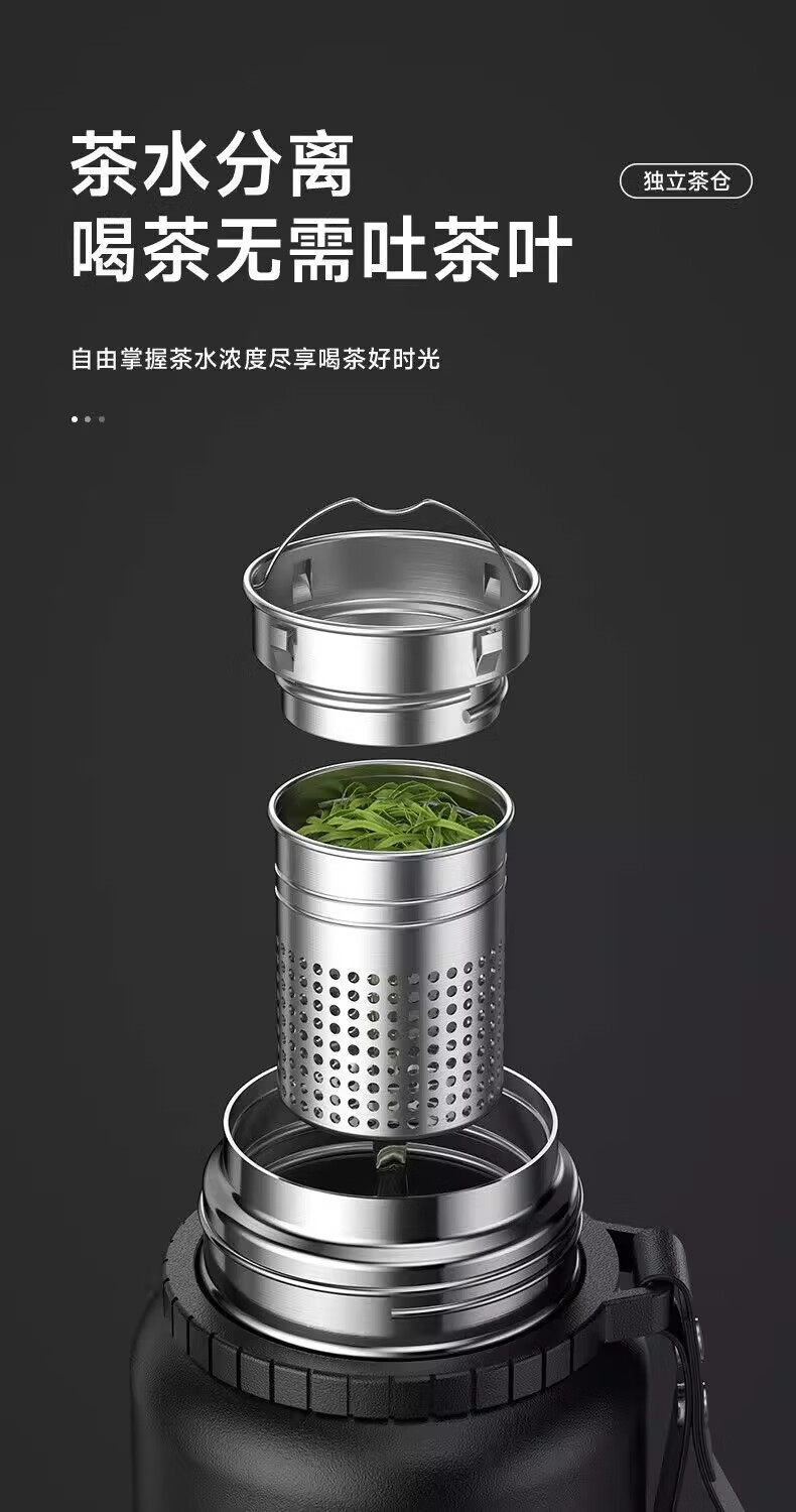 AILUKI日本316不锈钢保温杯男款大容量冬季焖闷泡茶杯子水杯壶2025新款 【升级温显】钢本色-1000ML(茶水分离)316