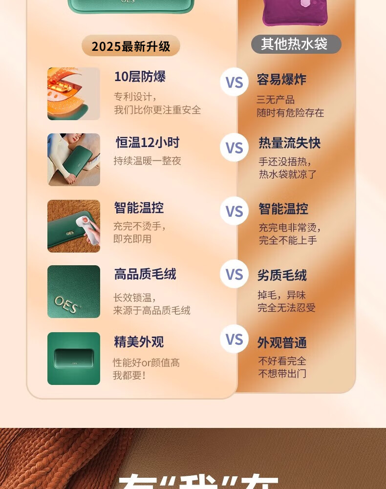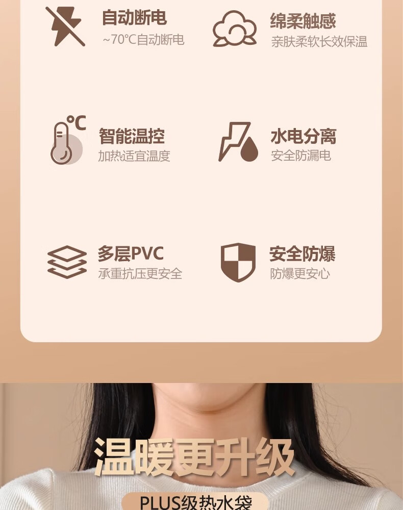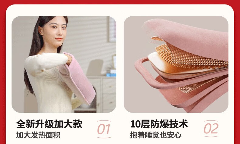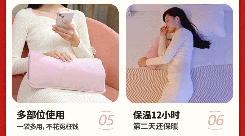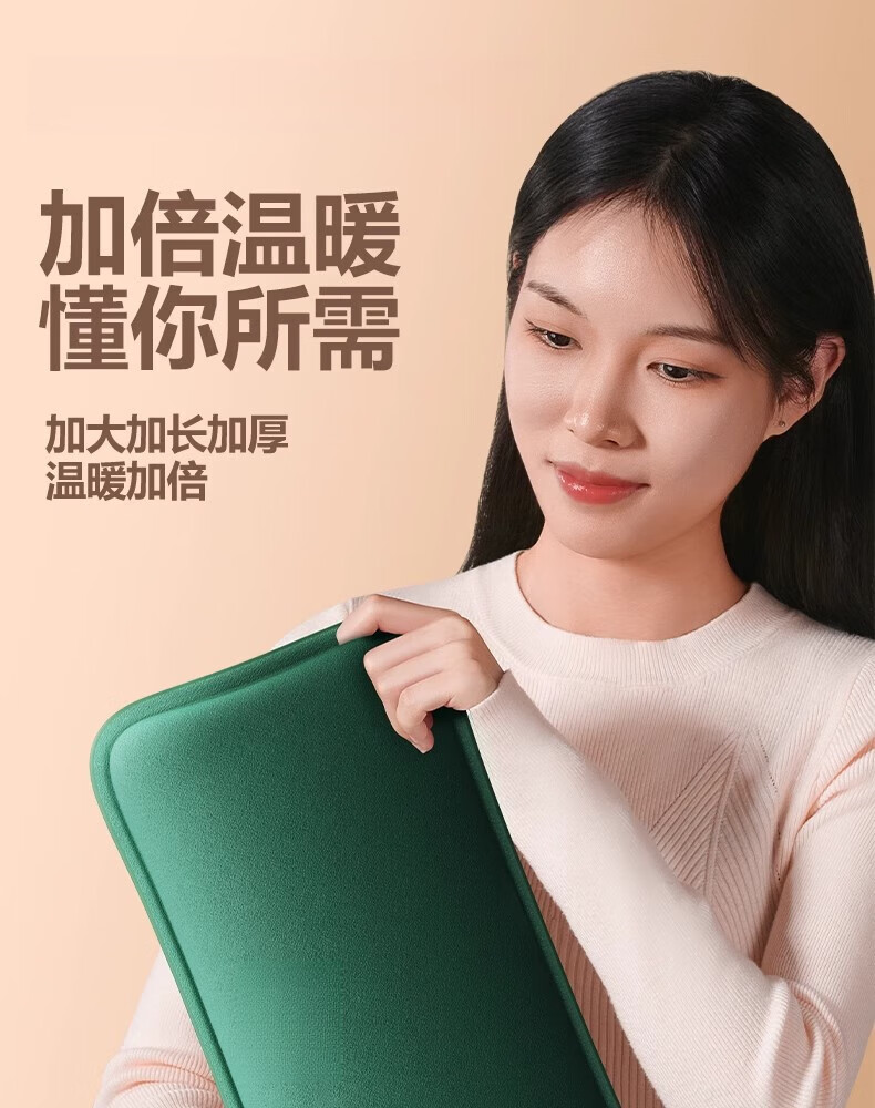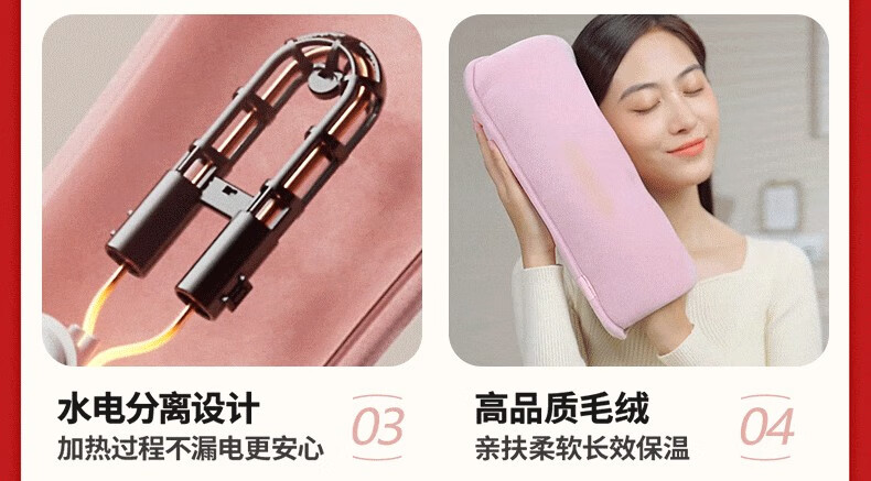 WCZ德国热水袋充电防爆暖水袋暖宝宝电暖宝热宝床上被窝暖脚神器 莫兰迪粉【保暖加厚水晶绒】双插手
