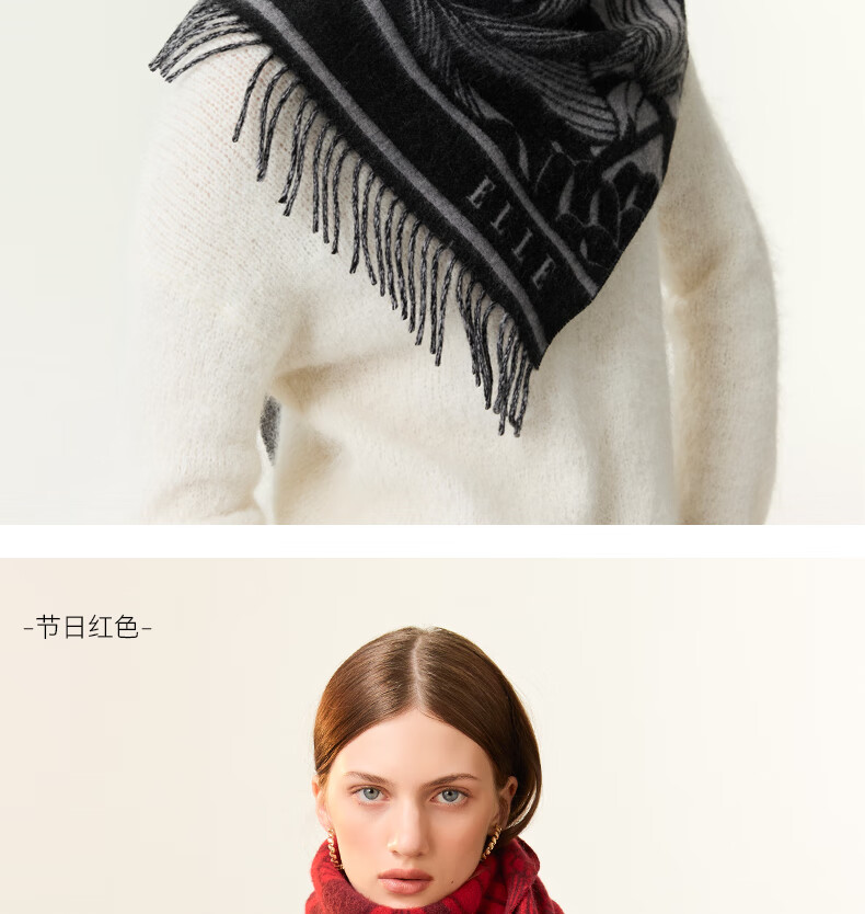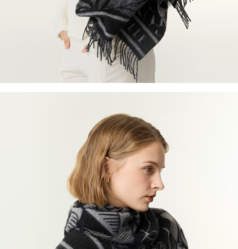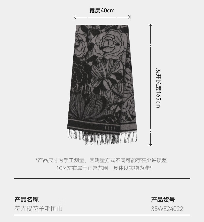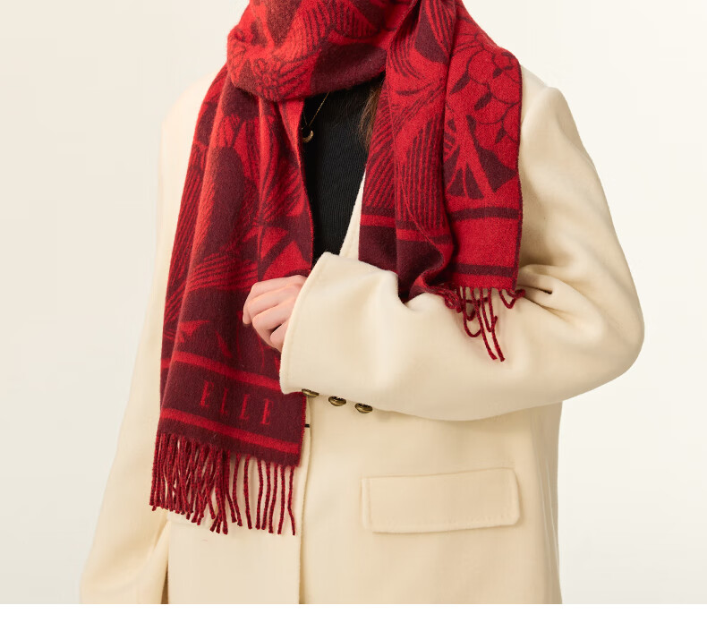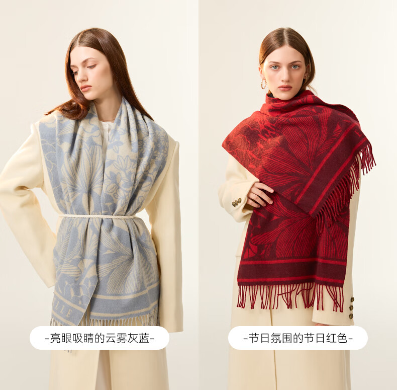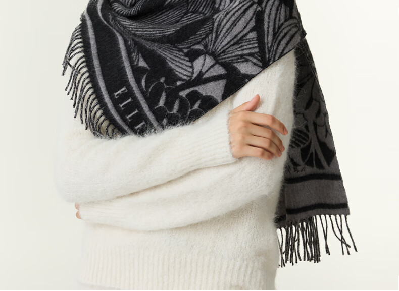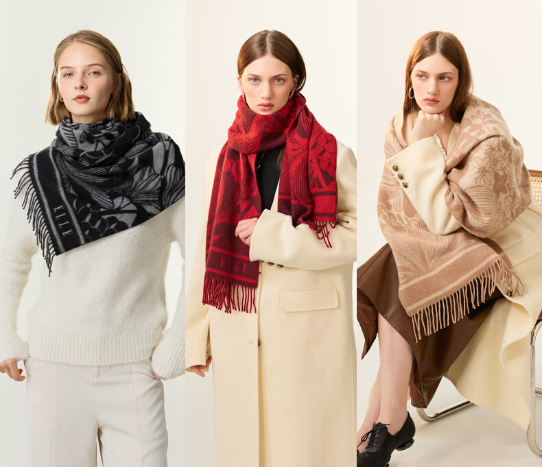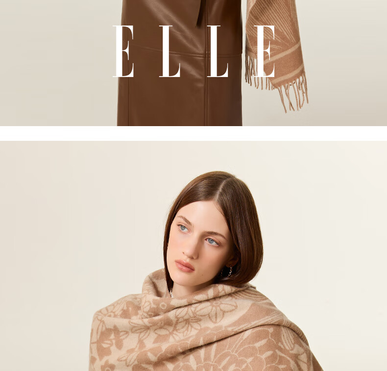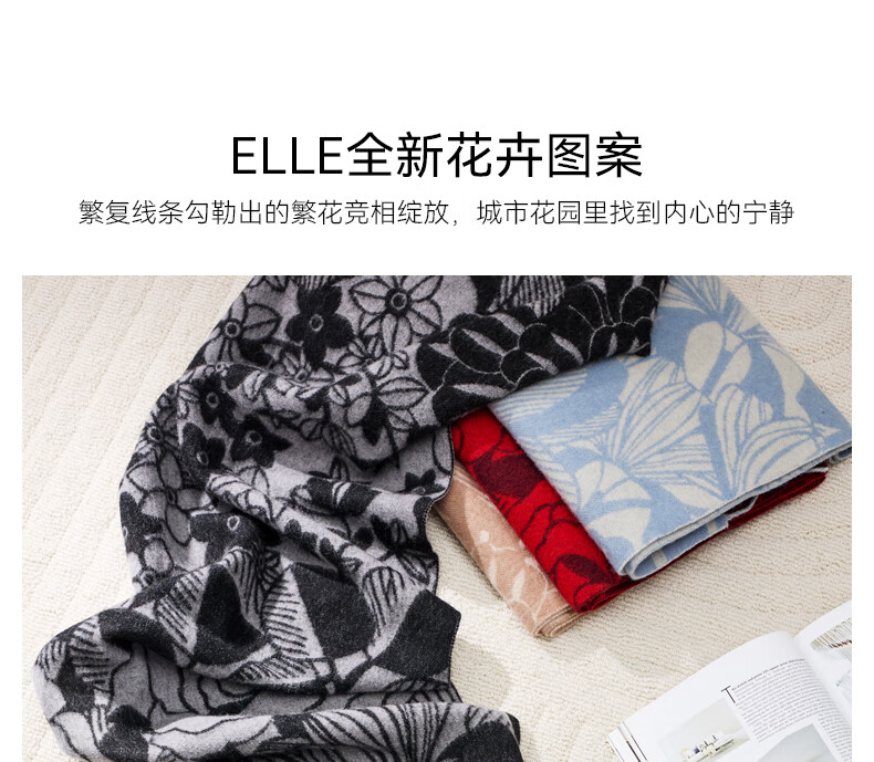 ELLE【礼盒装】100%绵羊毛围巾女秋冬礼物保暖时尚提花围脖披肩