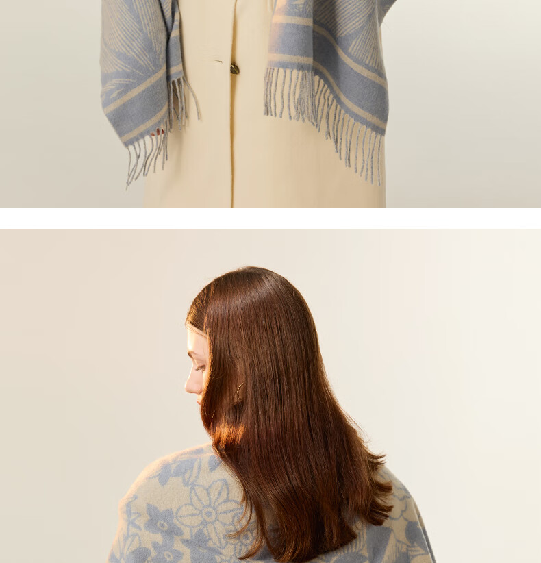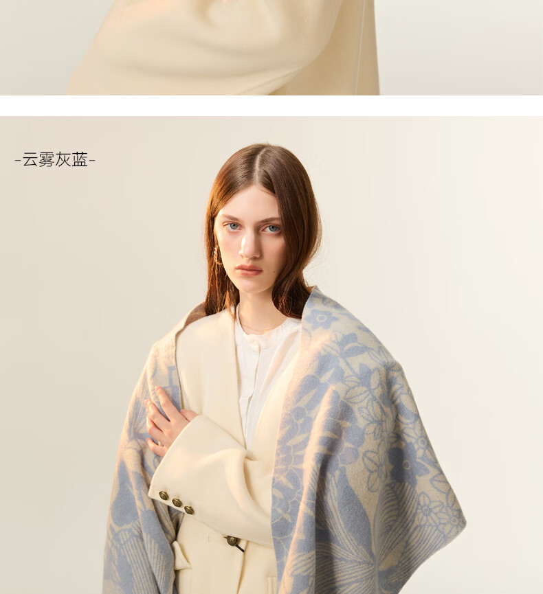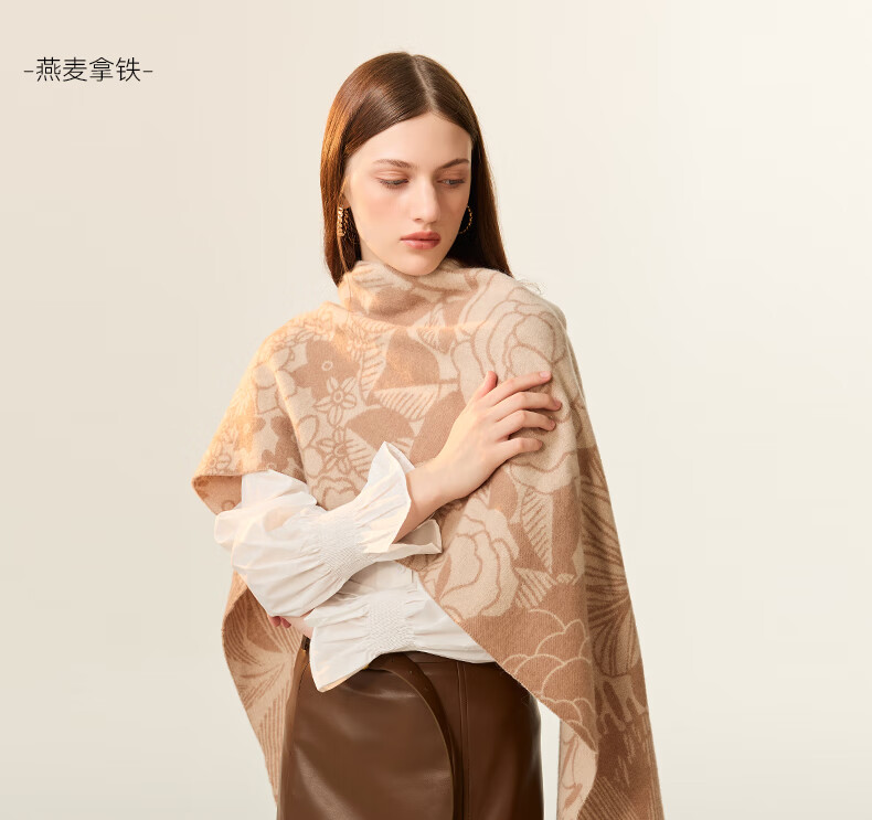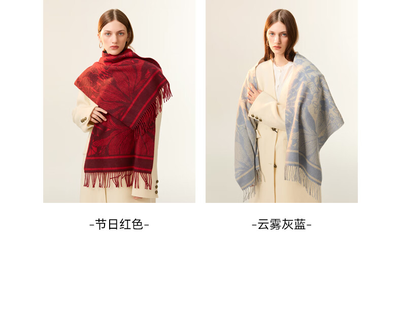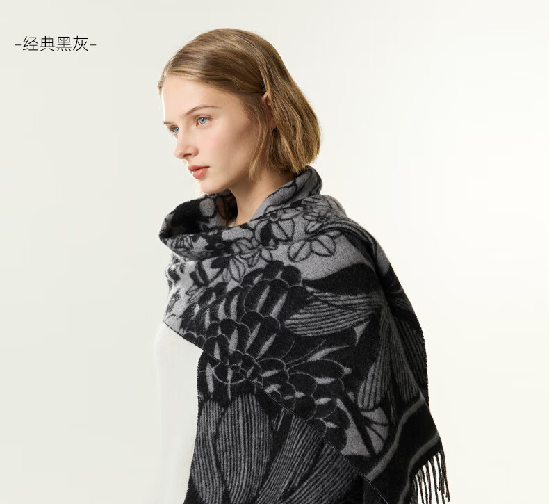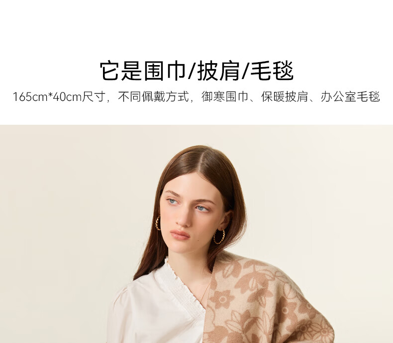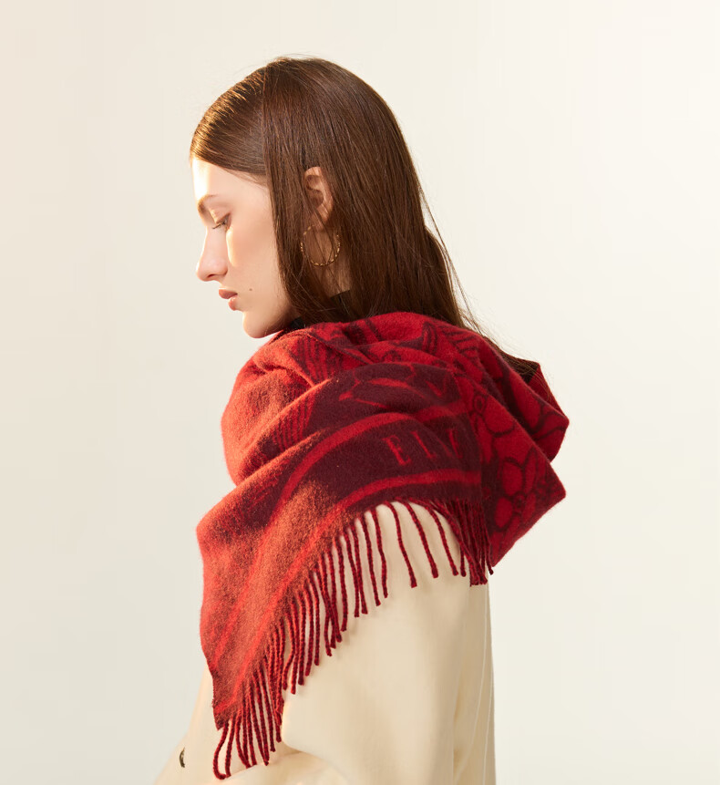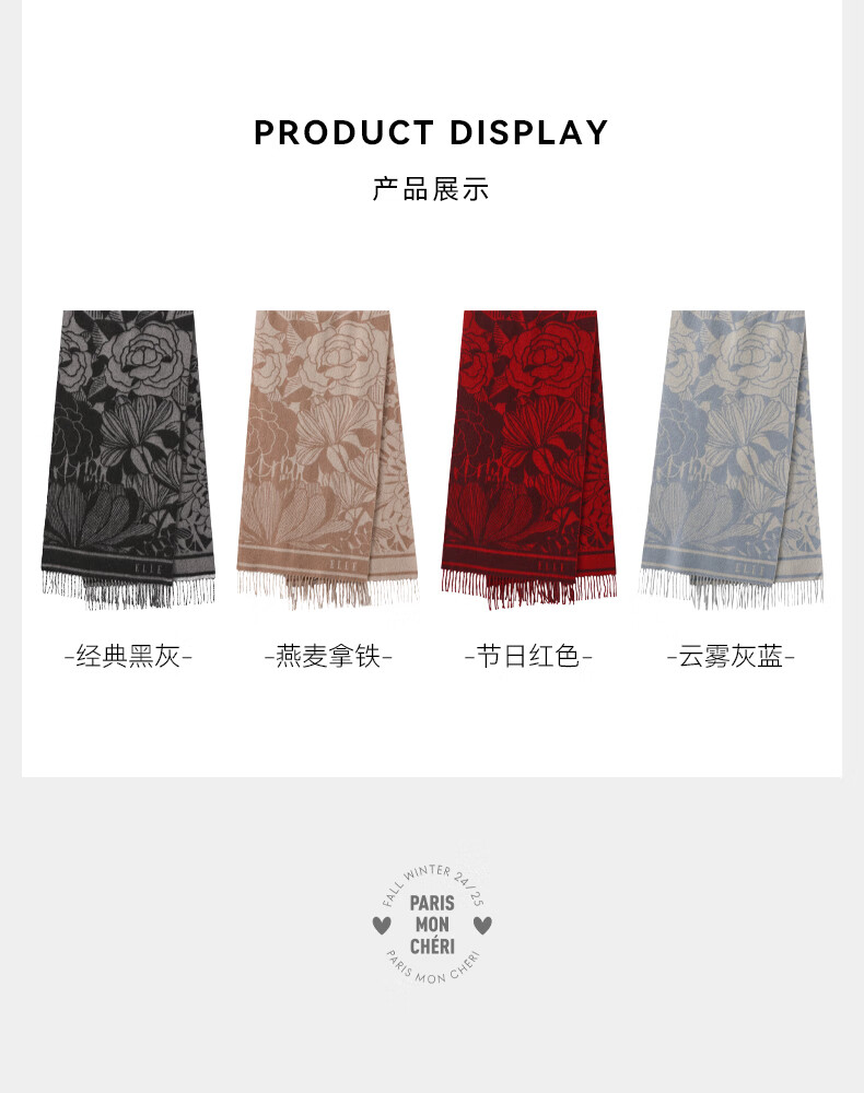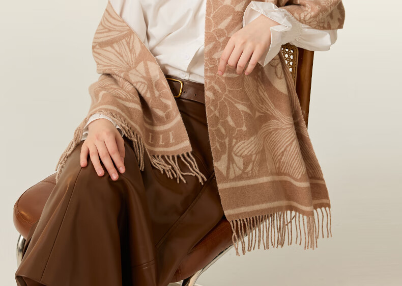 ELLE【礼盒装】100%绵羊毛围巾女秋冬礼物保暖时尚提花围脖披肩