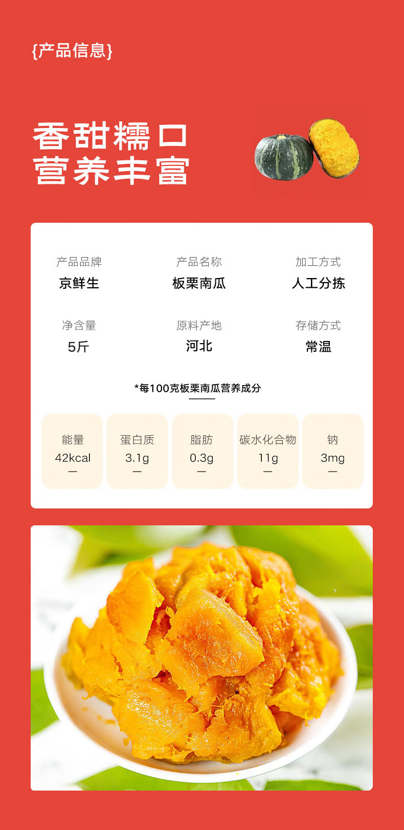 京鲜生 山东正宗贝贝南瓜 净4.5斤单果300g+软糯香甜减脂早餐 源头直发