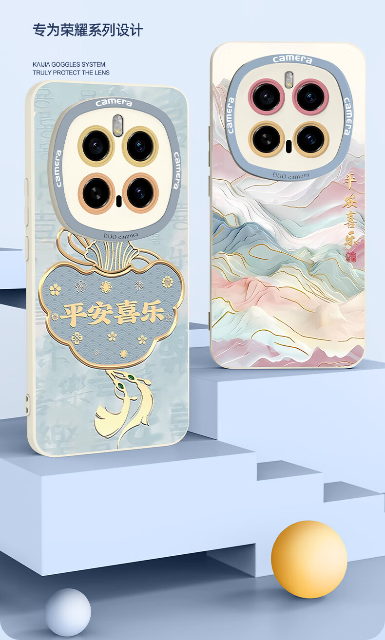XP适用荣耀magic7 pro手机壳镜头全包Magic7Pro硅胶国潮男女高级感防摔带挂绳保护套-古董白国风山水