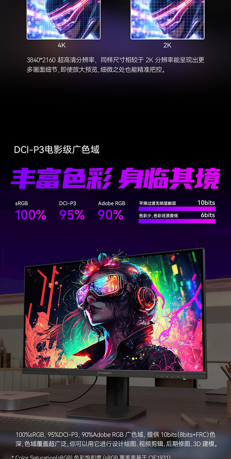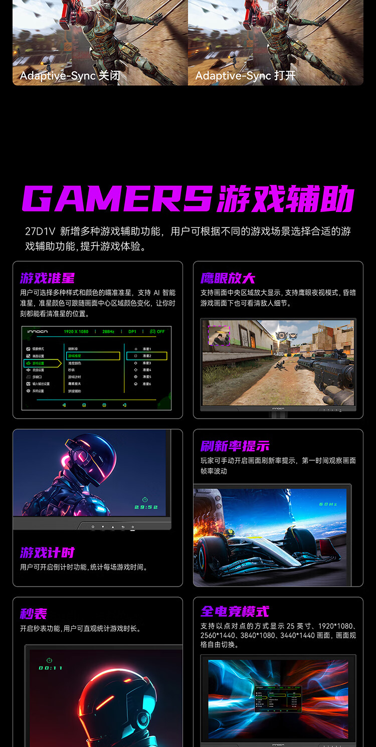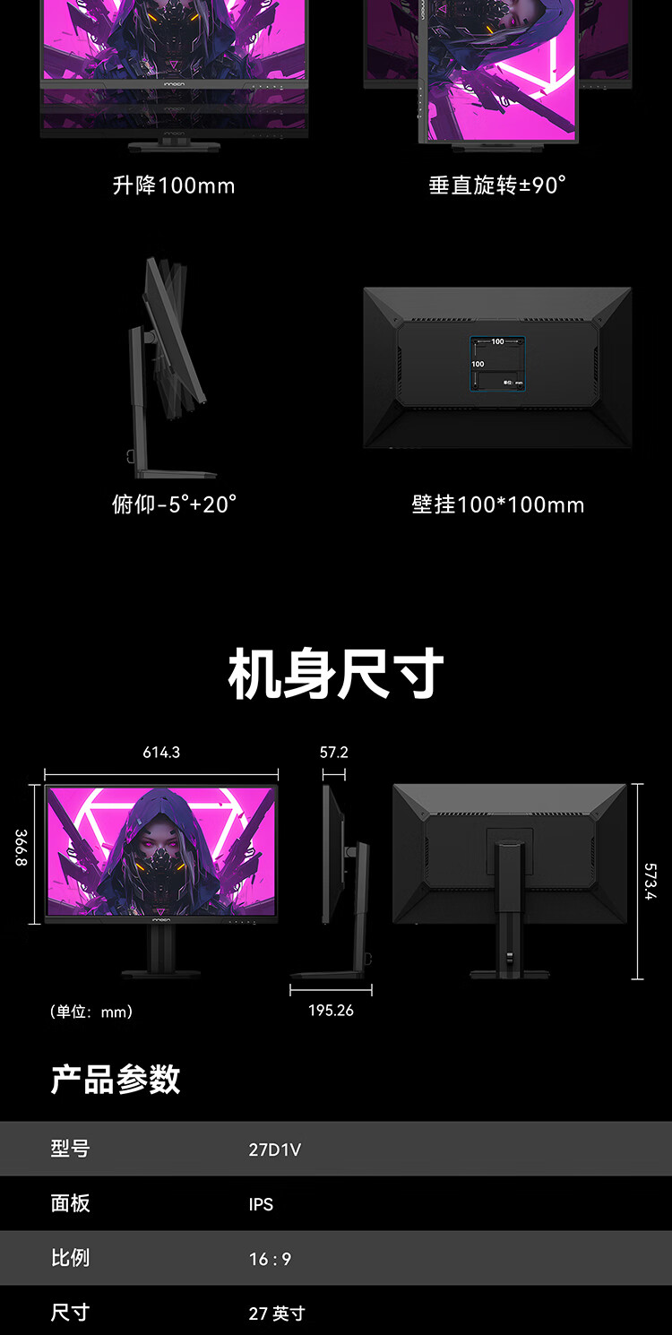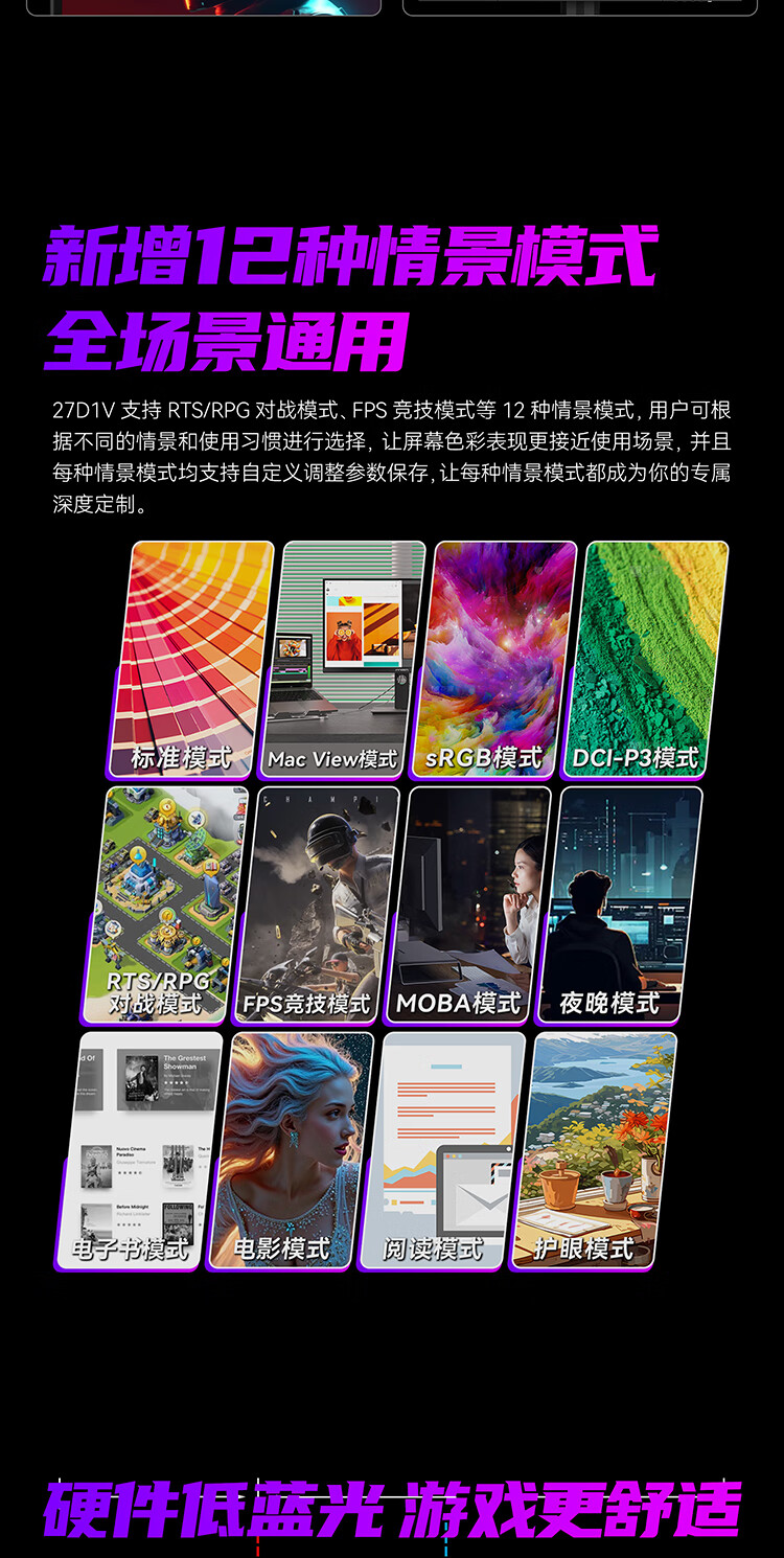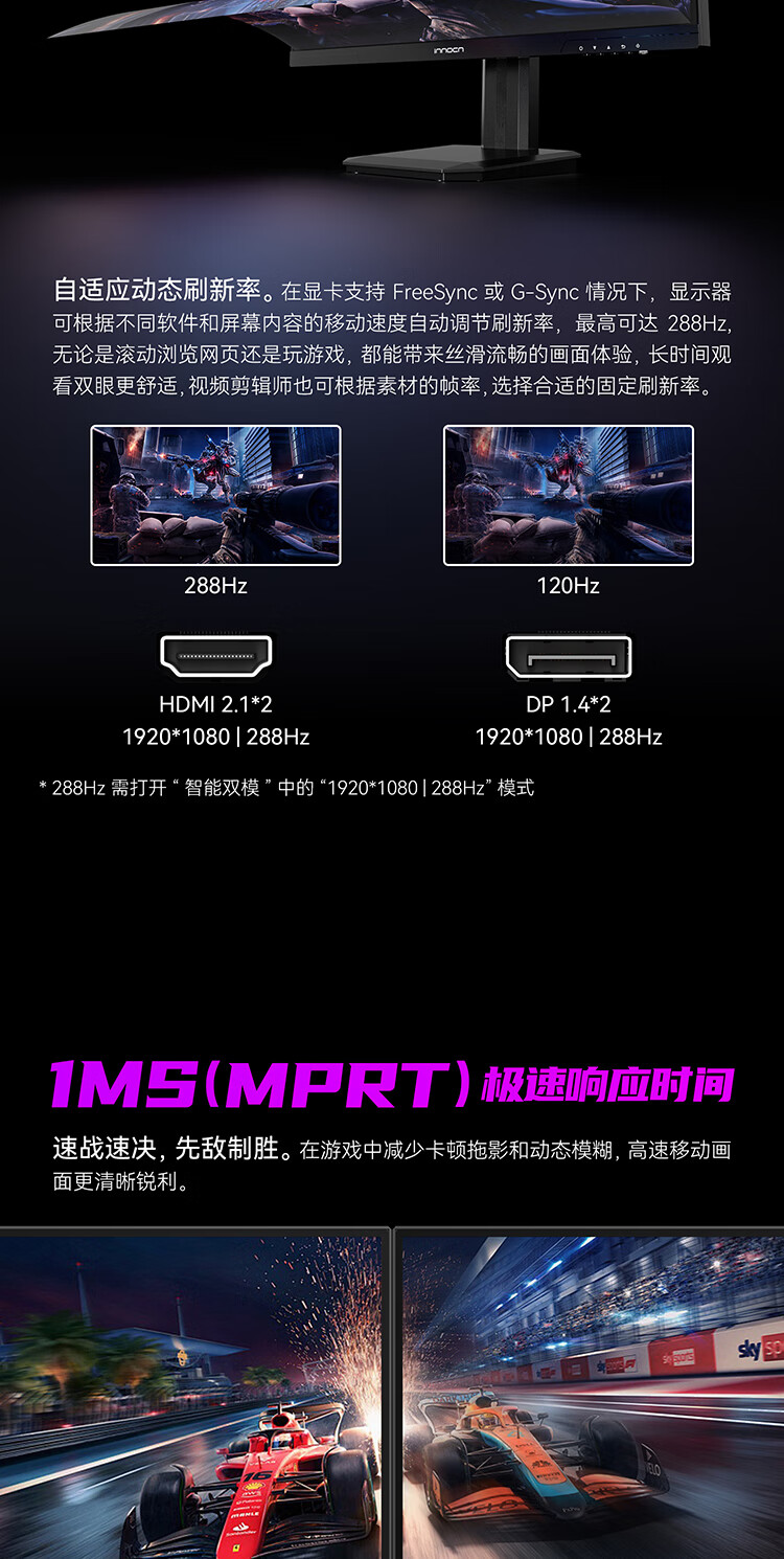 联合创新27英寸 4K超清144Hz双模288Hz IPS屏HDR400硬件低蓝光护眼 旋转升降支架 电竞游戏电脑显示器27D1V