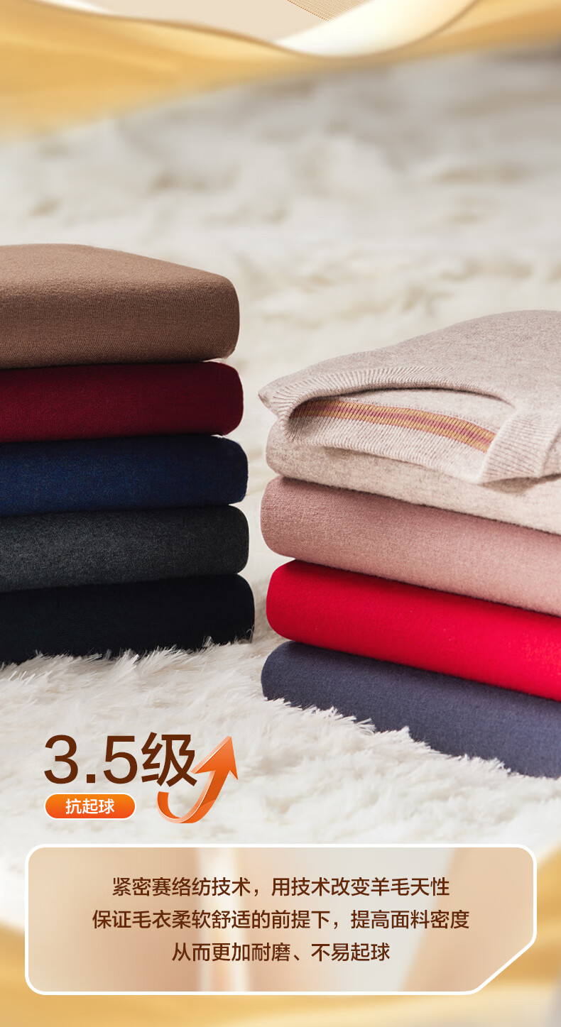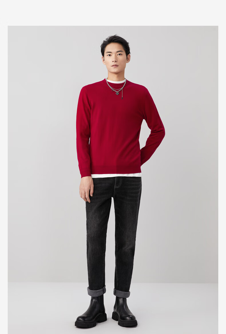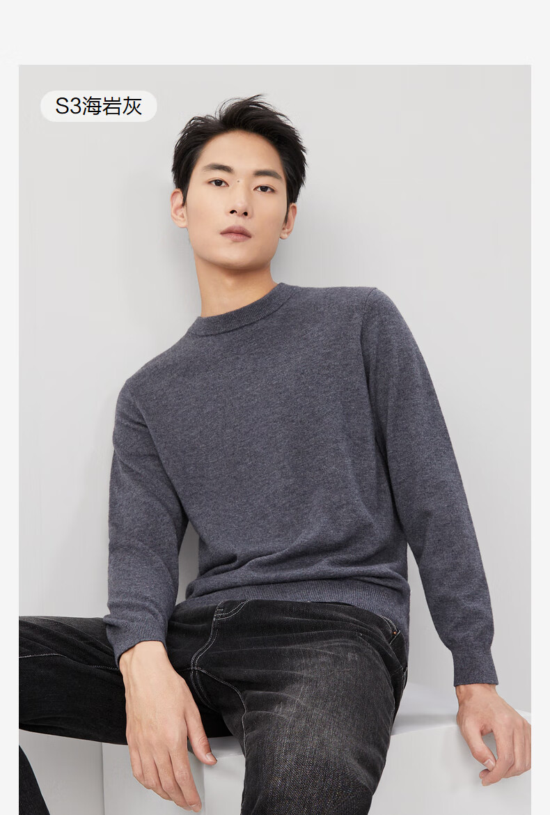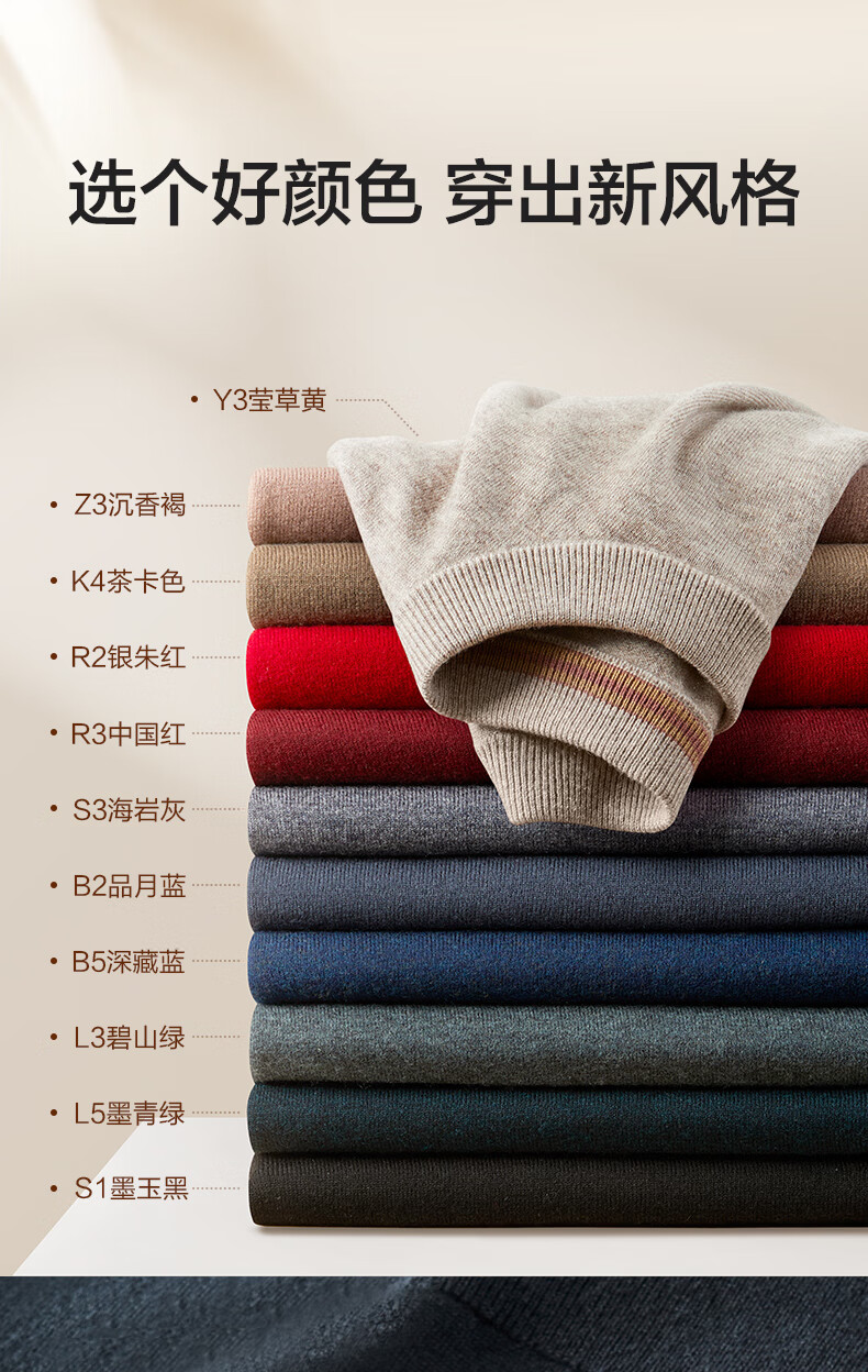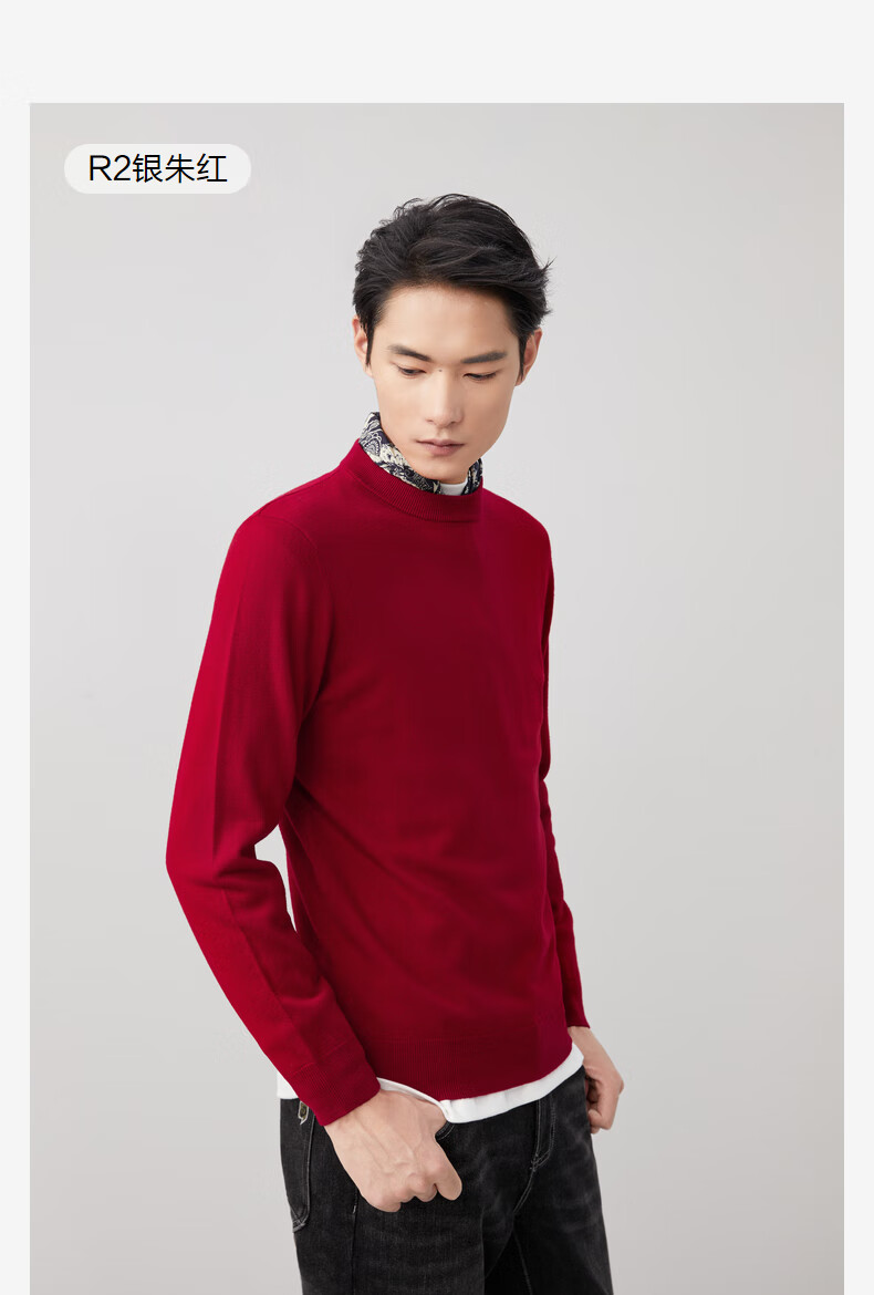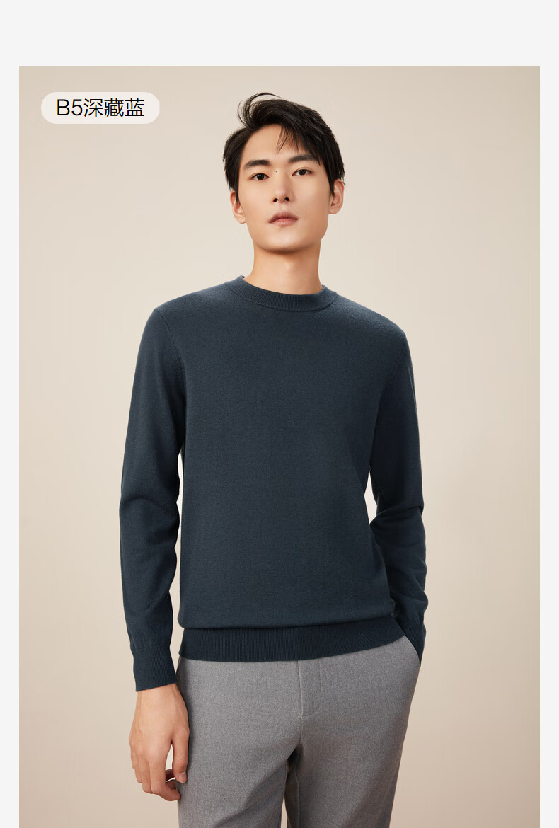 红豆羊毛衫男秋季打底针织纯色100%羊毛中年休闲百搭毛衣男 B5-深藏蓝 XL 【180/100B 体重145-160】