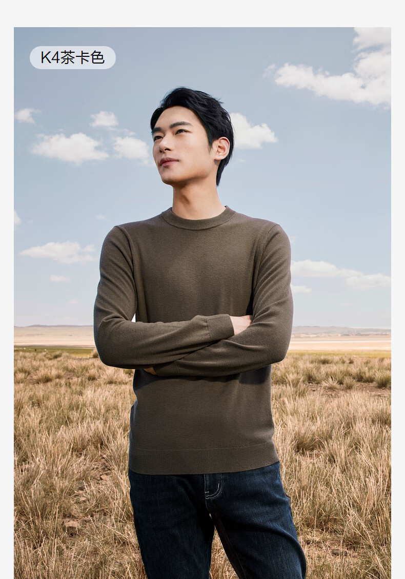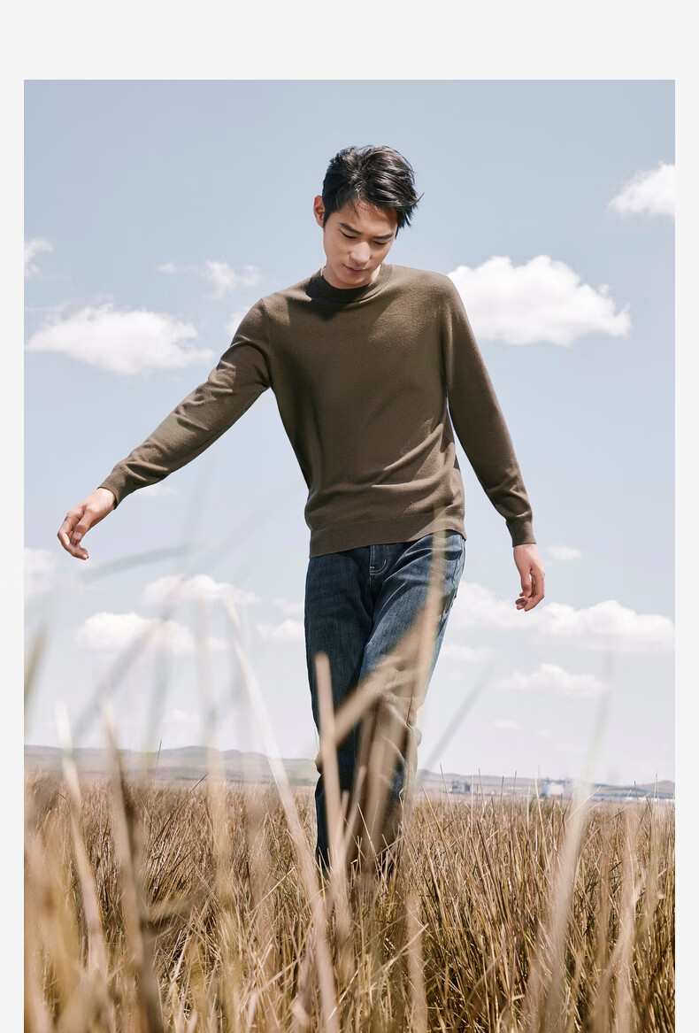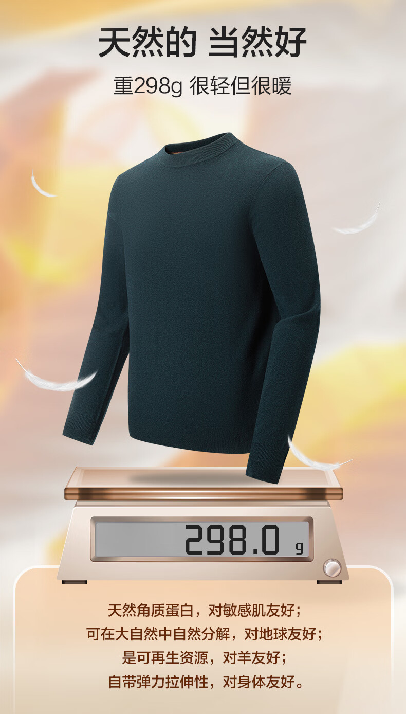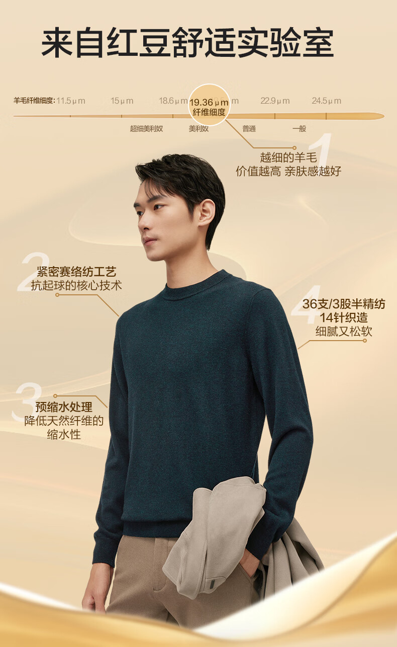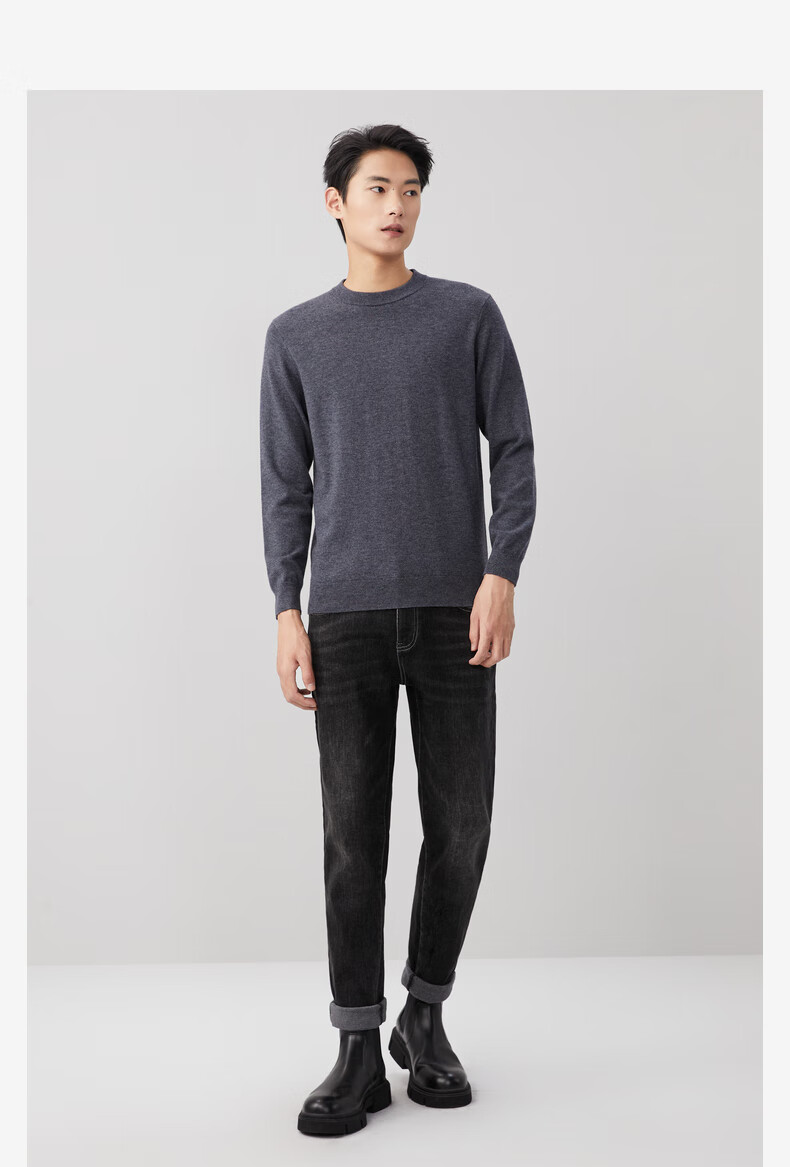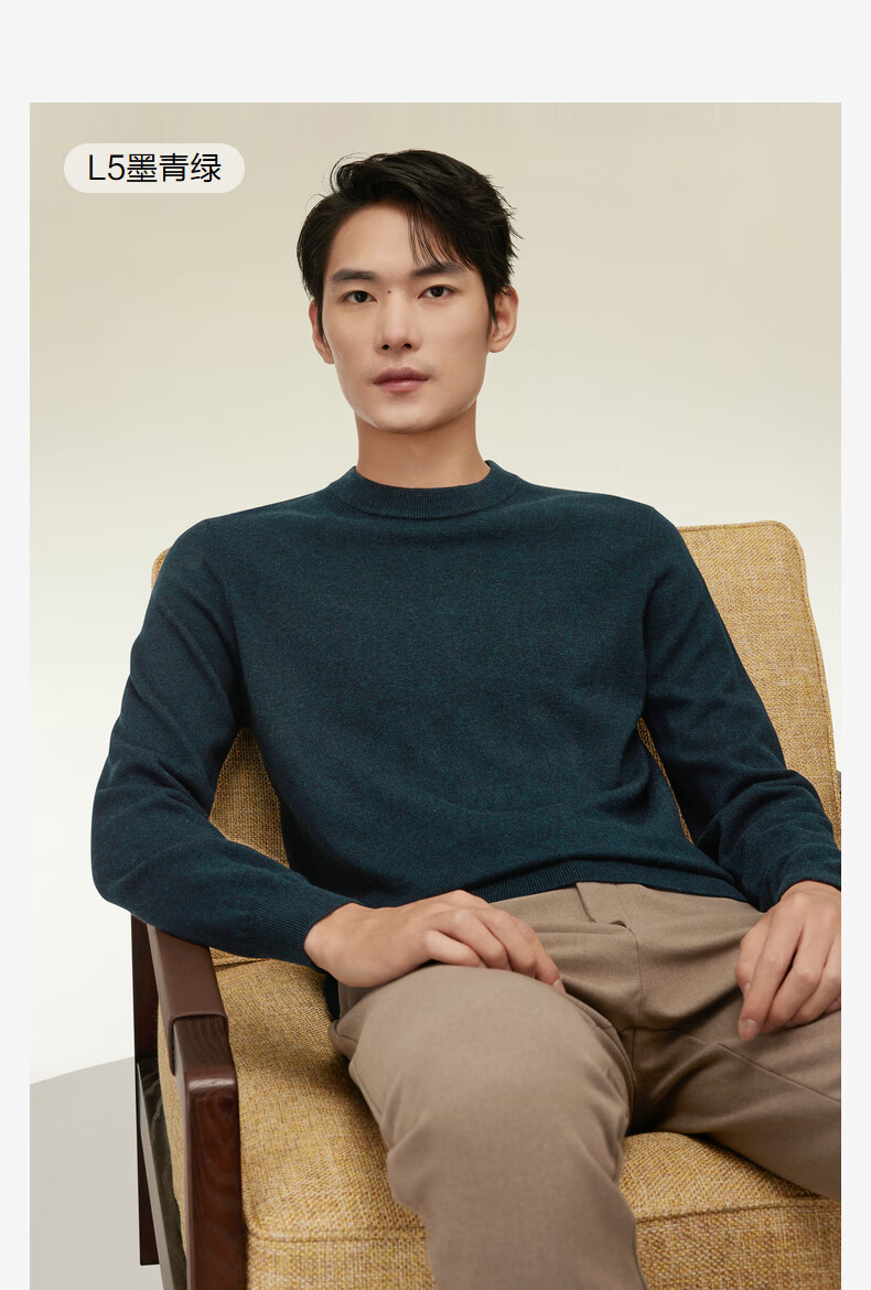 红豆羊毛衫男秋季打底针织纯色100%羊毛中年休闲百搭毛衣男 B5-深藏蓝 XL 【180/100B 体重145-160】