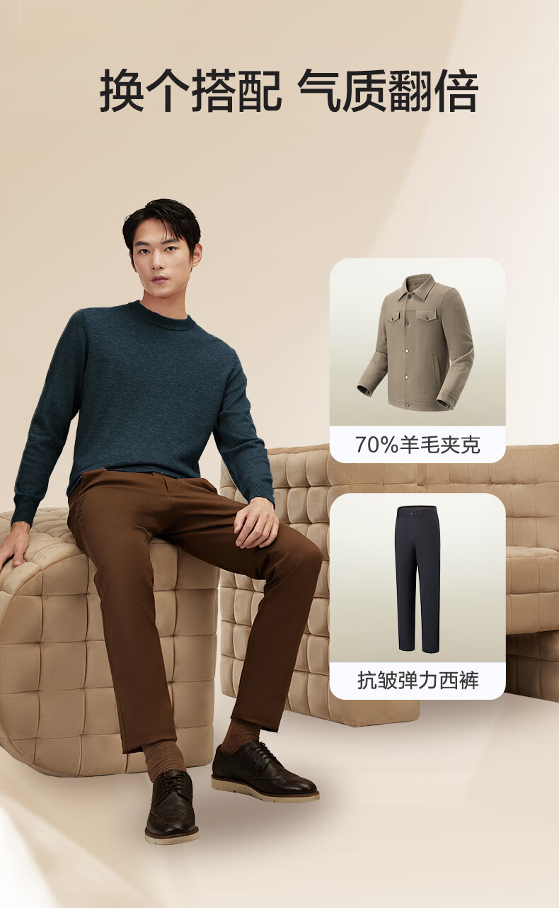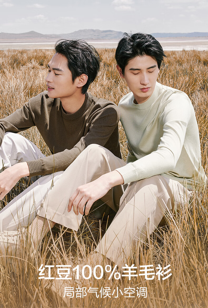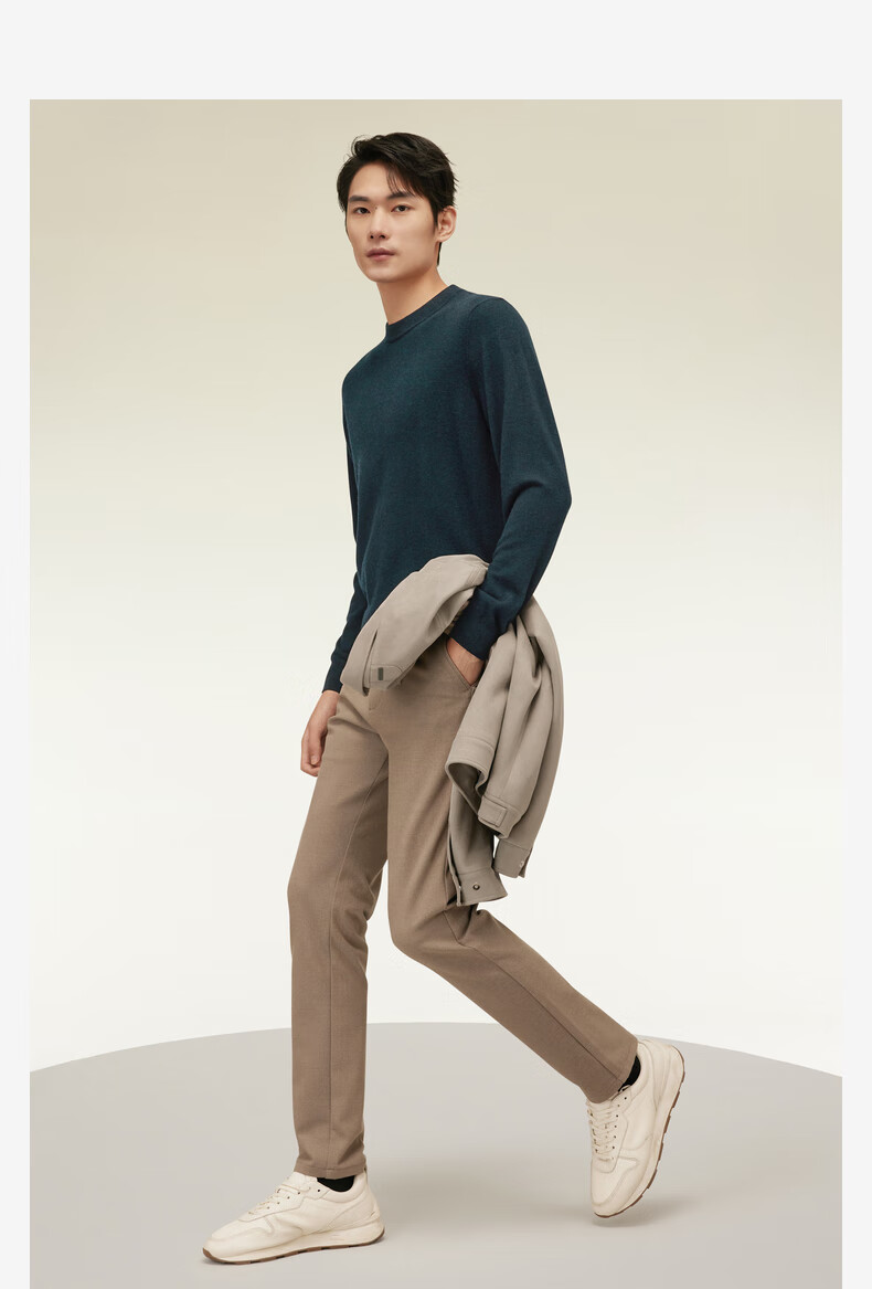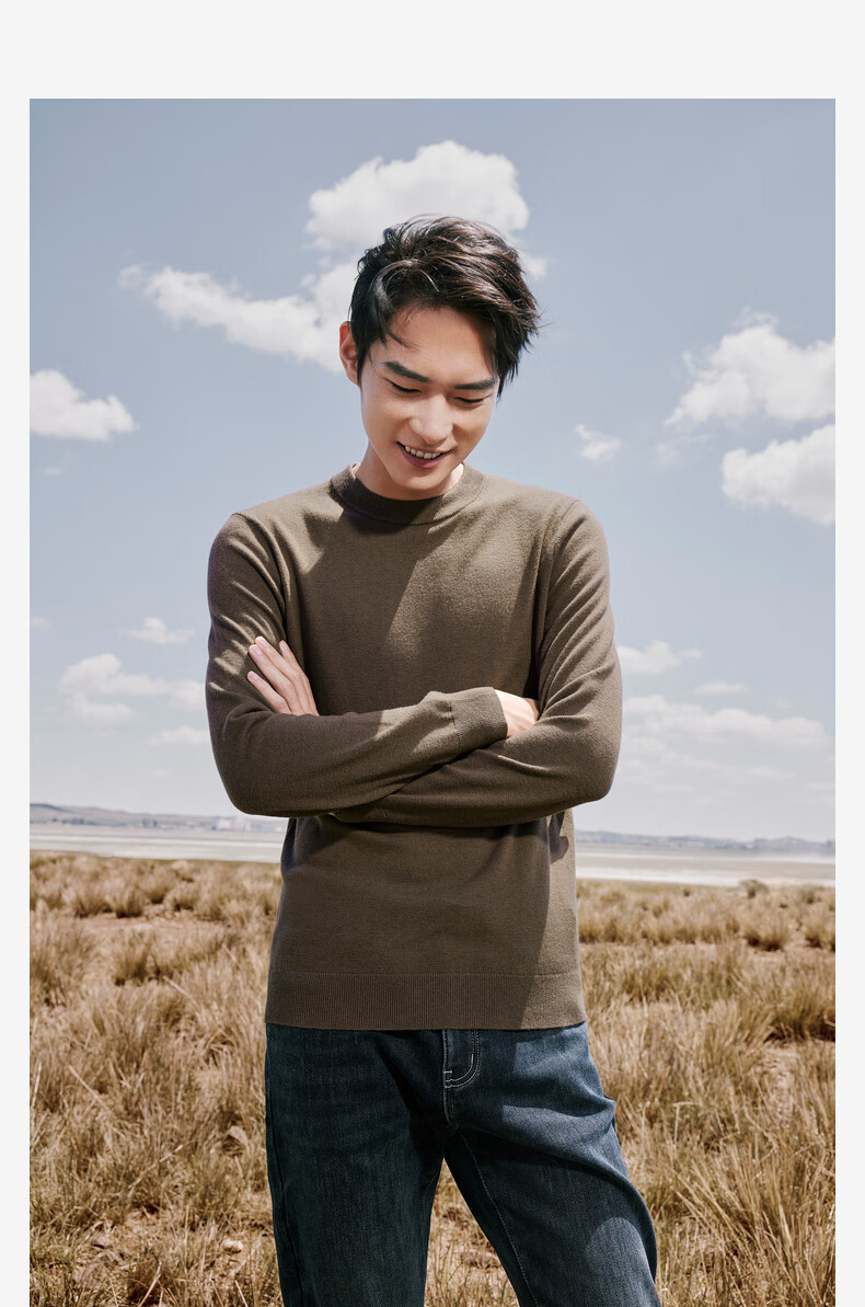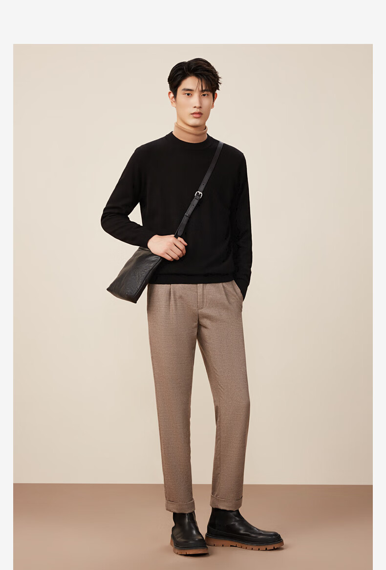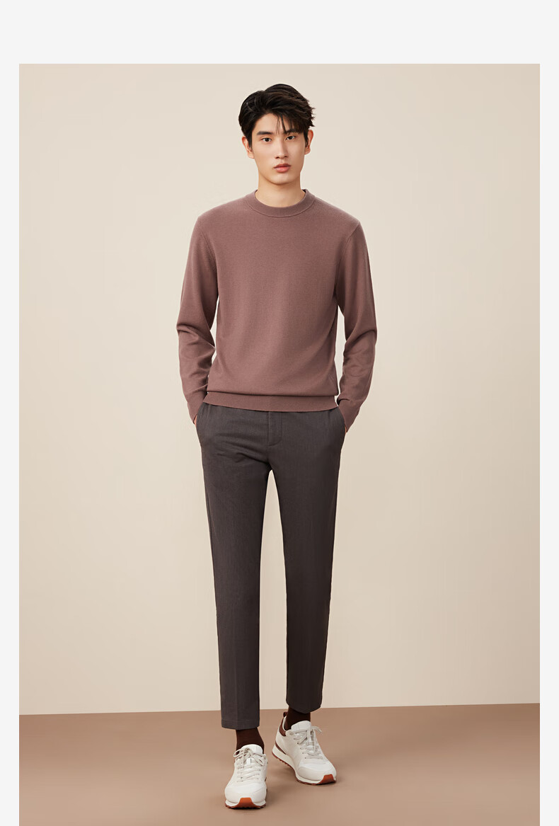 红豆羊毛衫男秋季打底针织纯色100%羊毛中年休闲百搭毛衣男 B5-深藏蓝 XL 【180/100B 体重145-160】