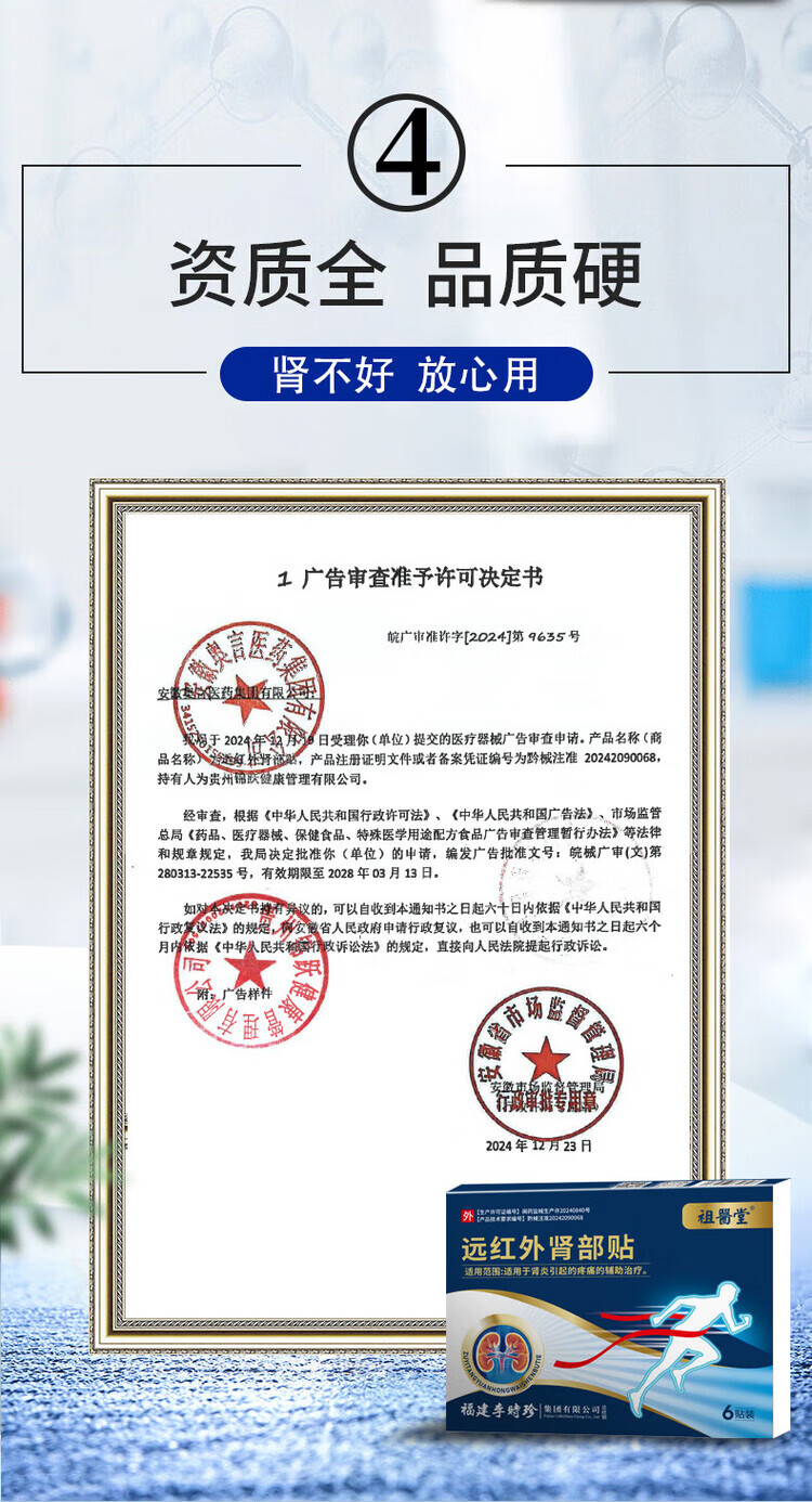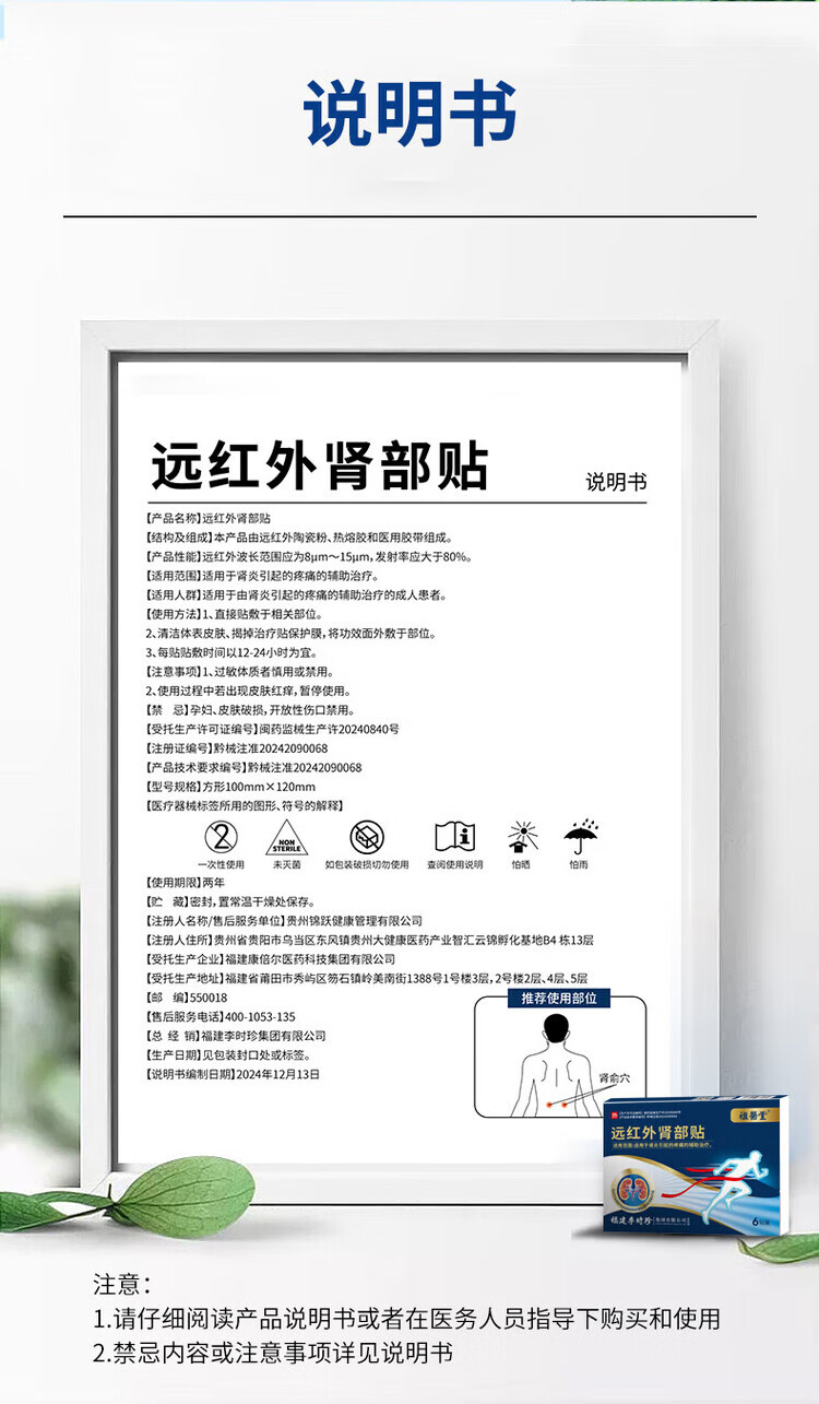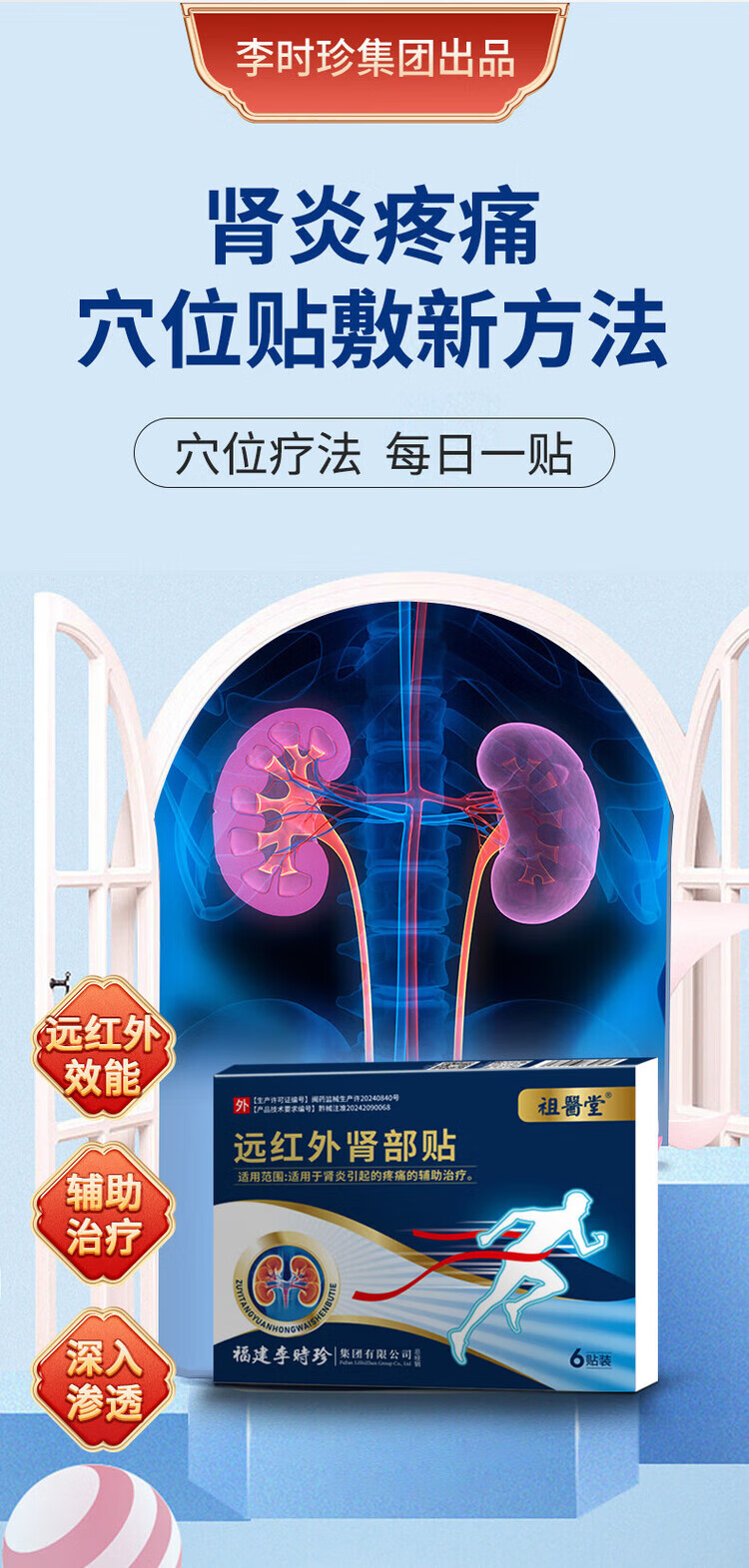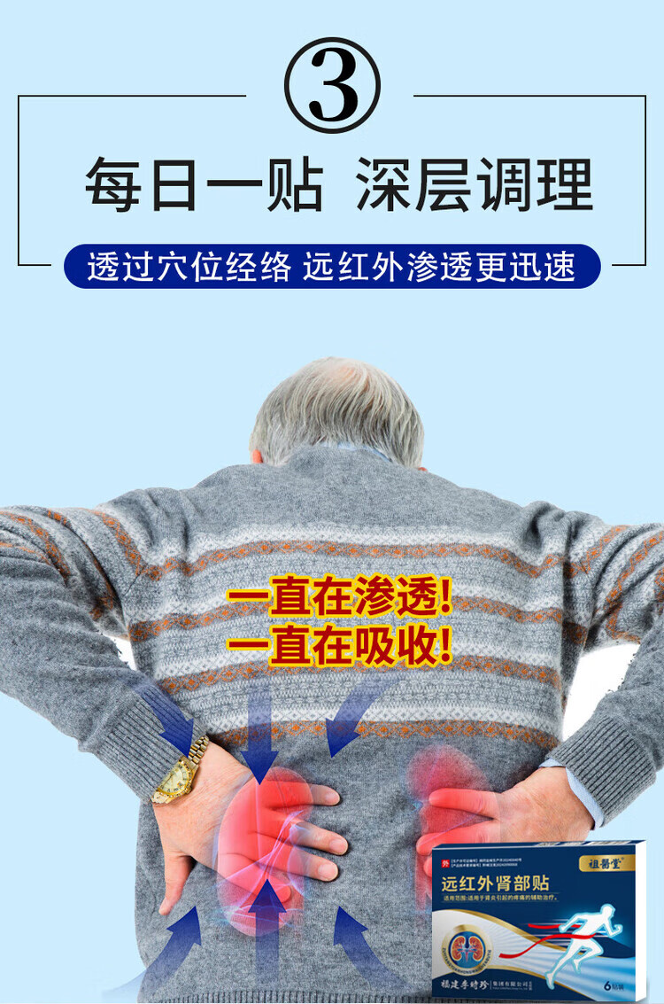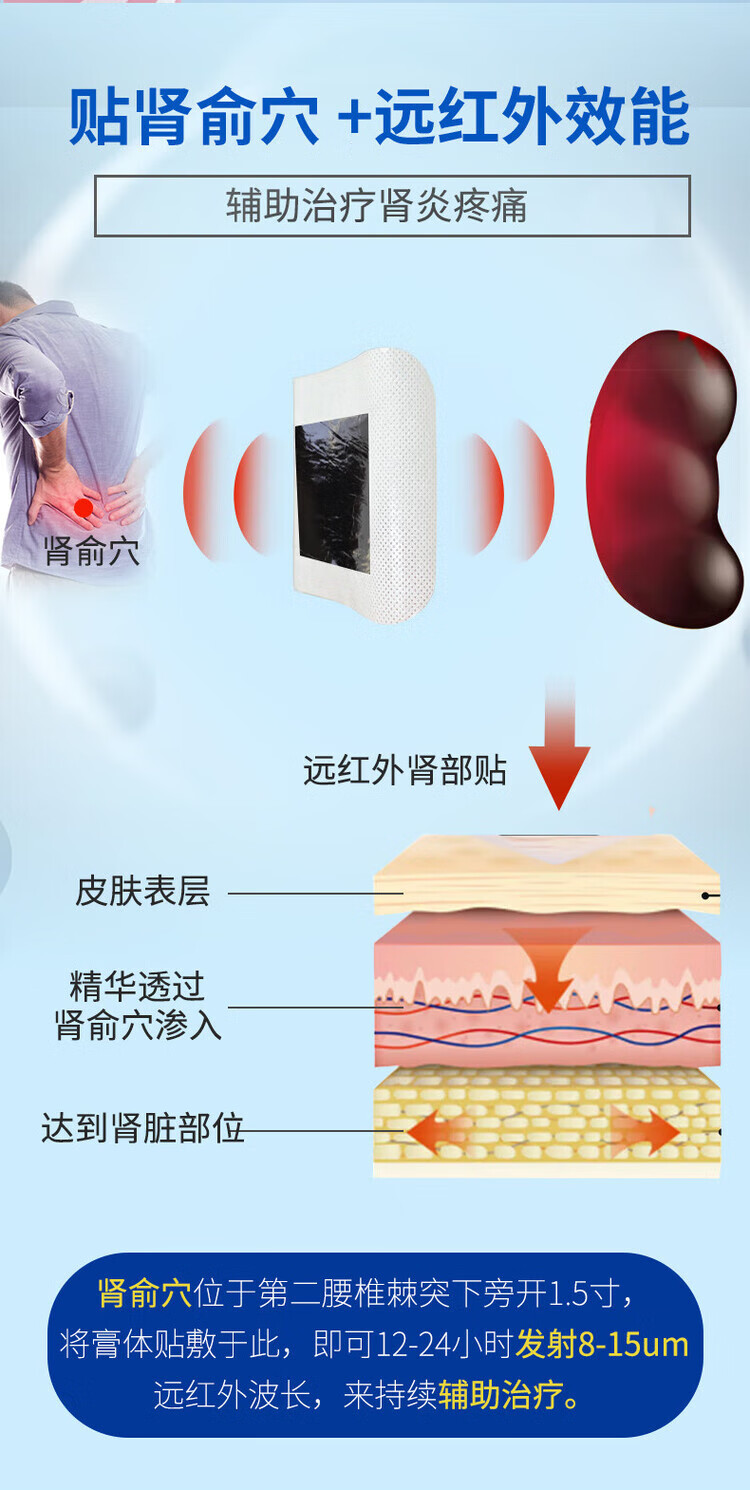 祖医堂远红外肾部贴肾炎疼痛肾功能下降少尿多尿远红外肾部贴 一盒装