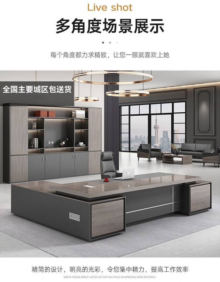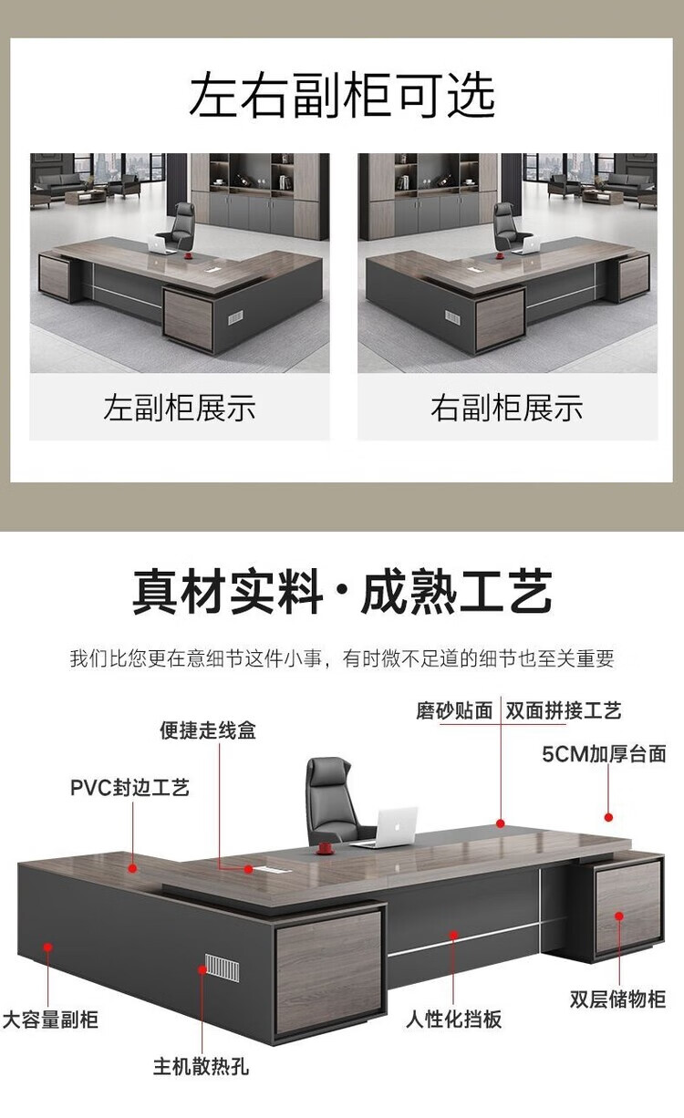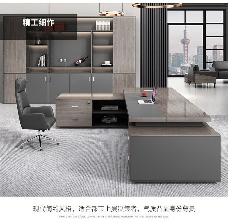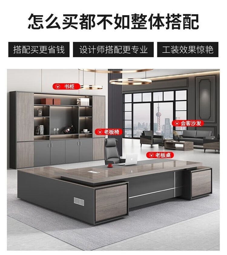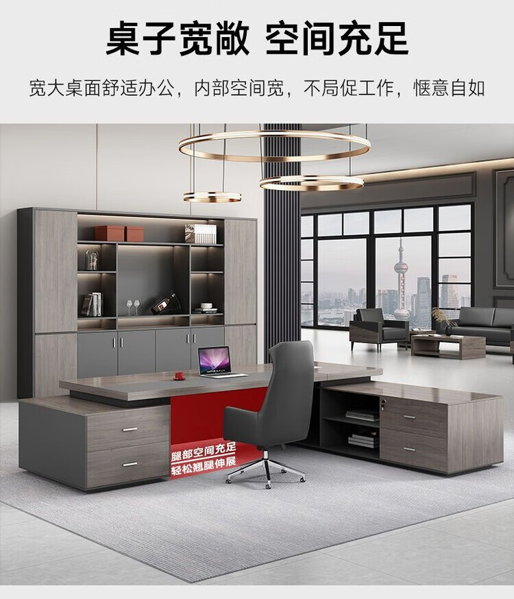 迈途森老板桌办公桌椅组合时尚总裁桌大班台大气主管桌老板台办公室家具 1.8*0.8米桌+单柜+(包邮安装)