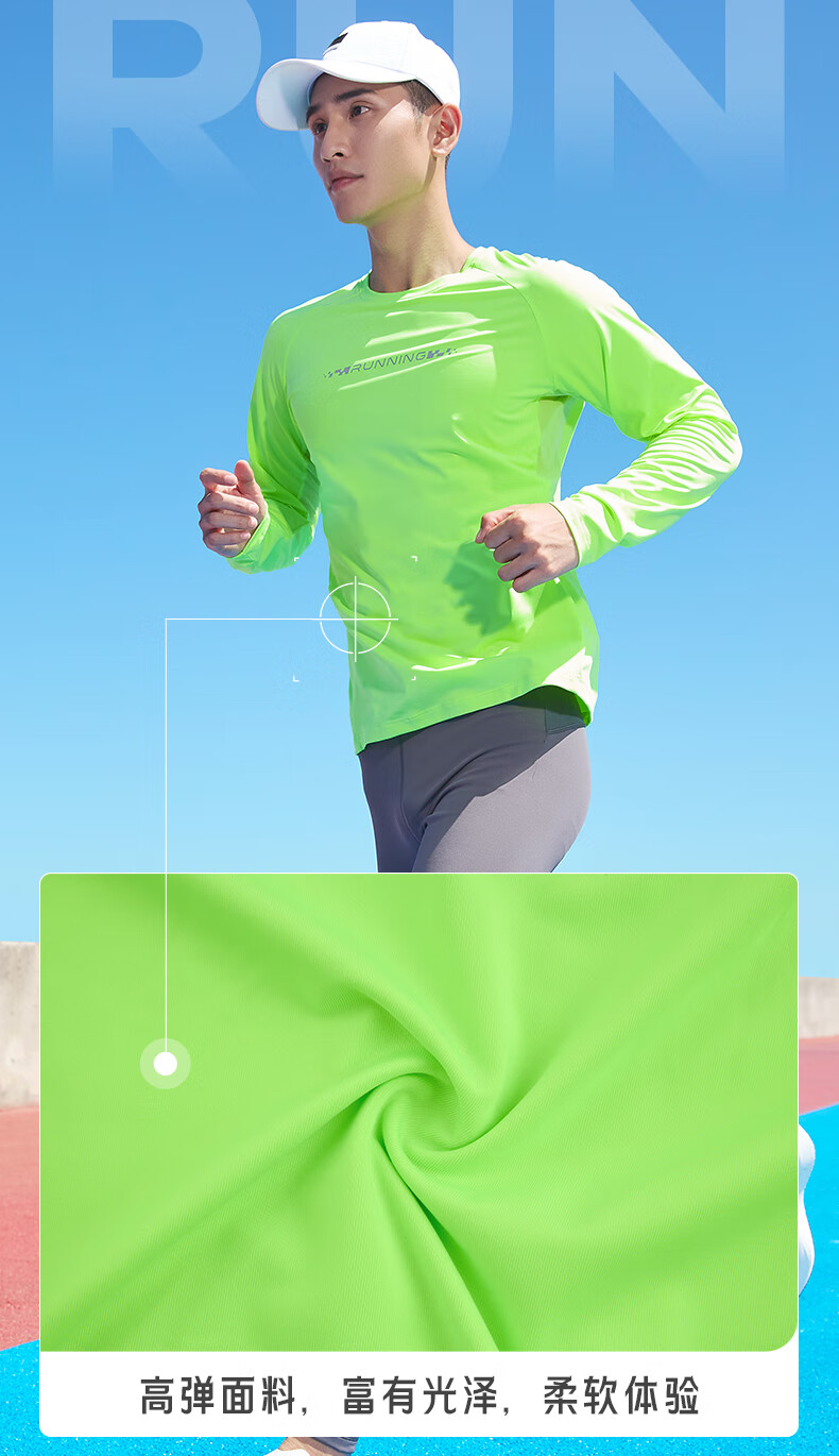 乔丹飞影长袖t恤男外套2025春季透气速干马拉松跑步运动T恤 飞影绿 5XL