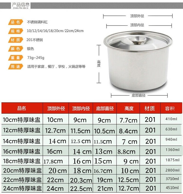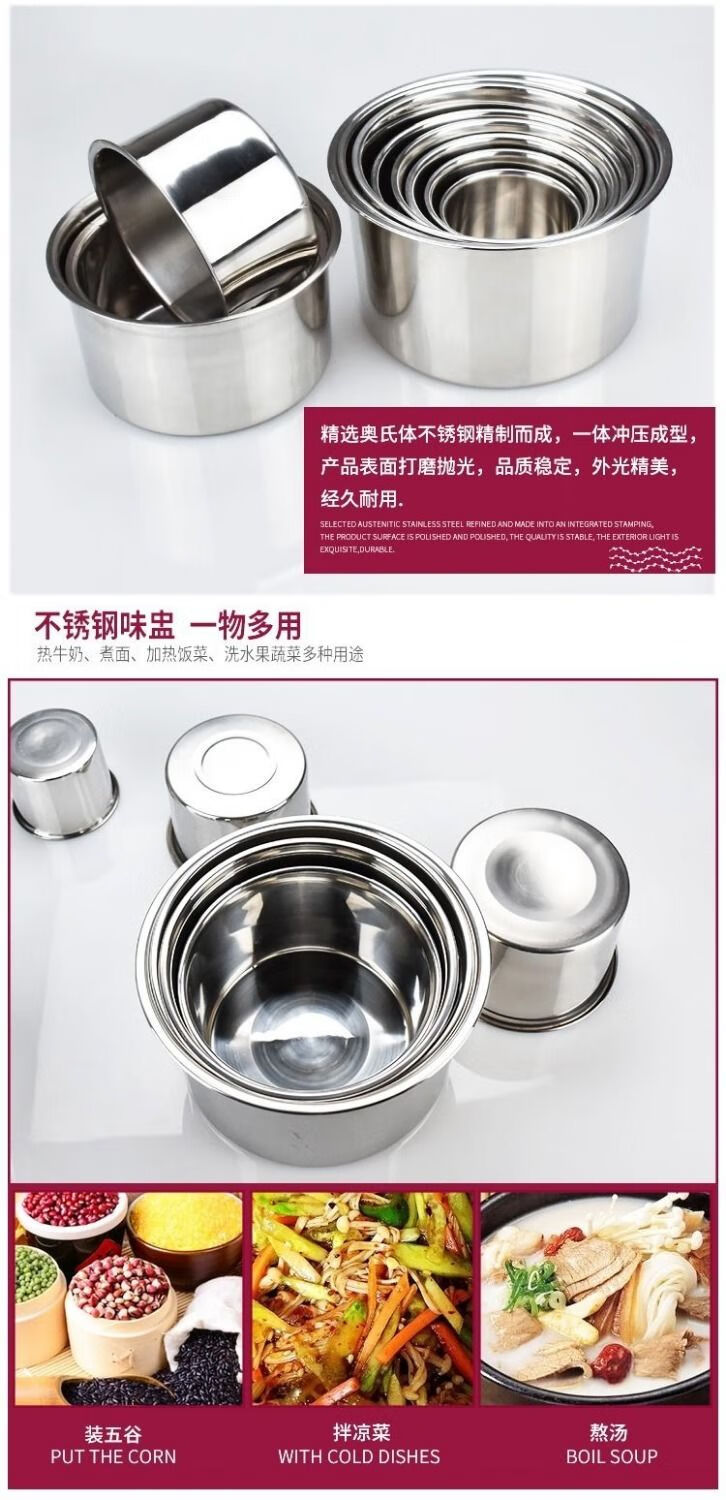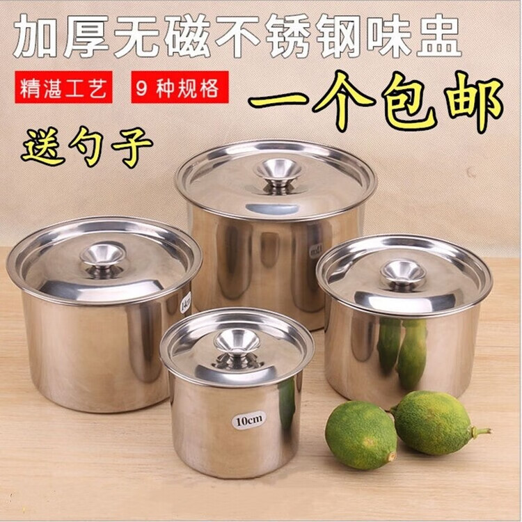 DEATKN不锈钢味盅调料罐调料缸商用家用盅炖盅带盖子味盒油盆带盖盆圆形 12cm 特厚调料缸【带盖】送勺子