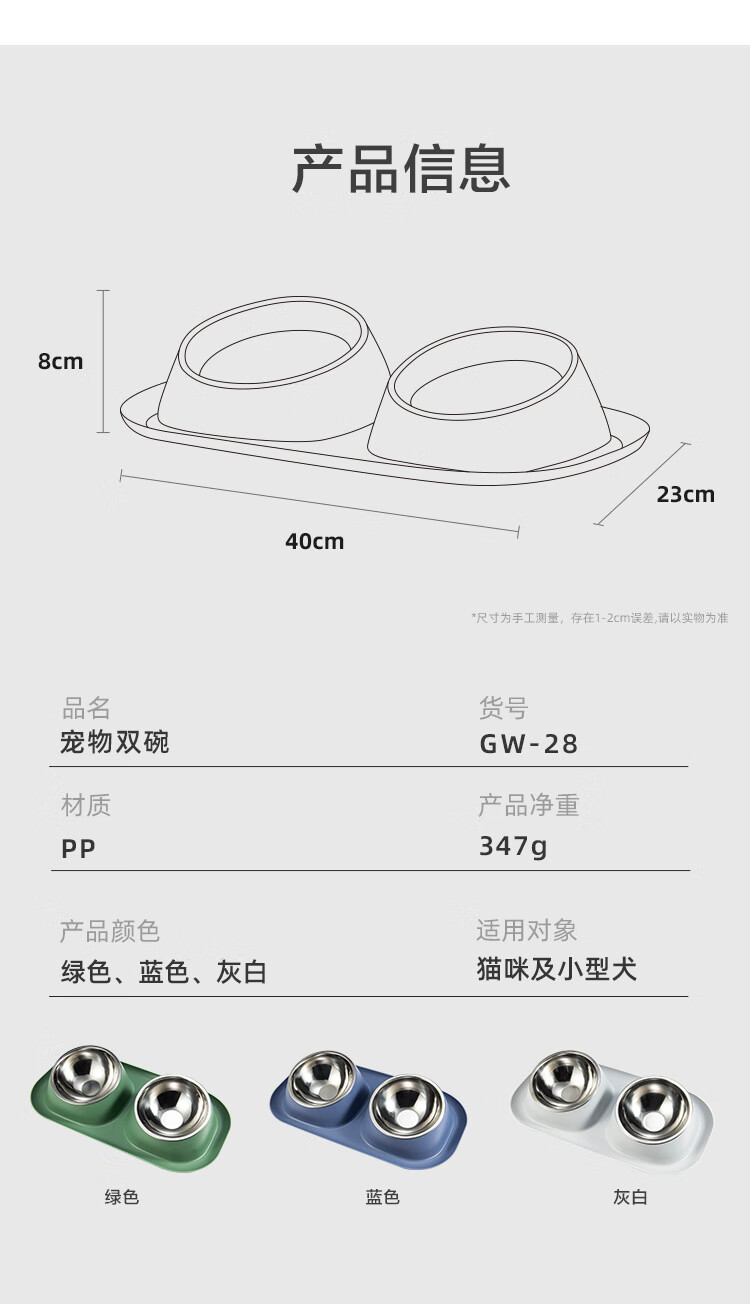petofstory宠物碗不锈钢狗碗双碗 猫碗可拆卸护颈猫粮碗狗盆猫盆