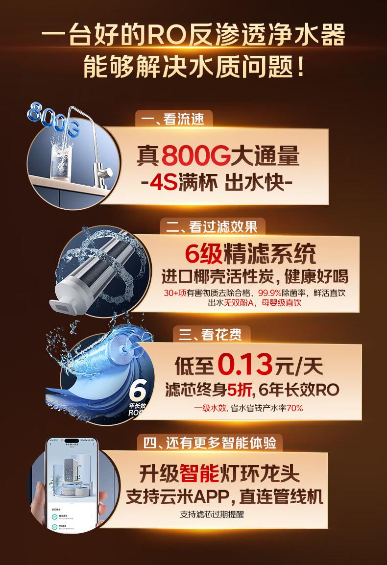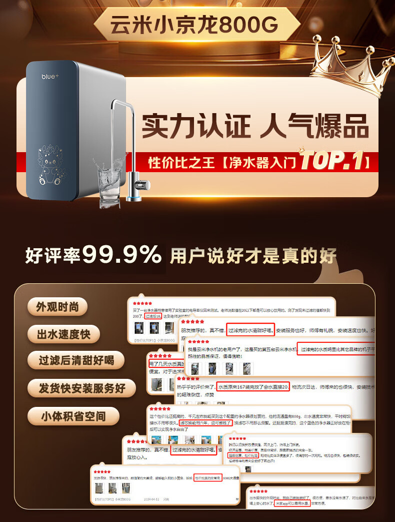 云米(VIOMI)净水器家用小京龙800G纯水ro反渗透厨房厨下式0阻垢剂母婴直饮自来水过滤器净水机净饮机 国家补贴
