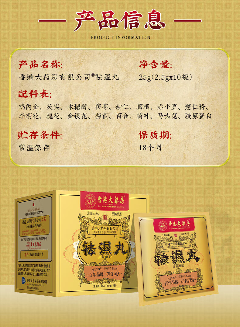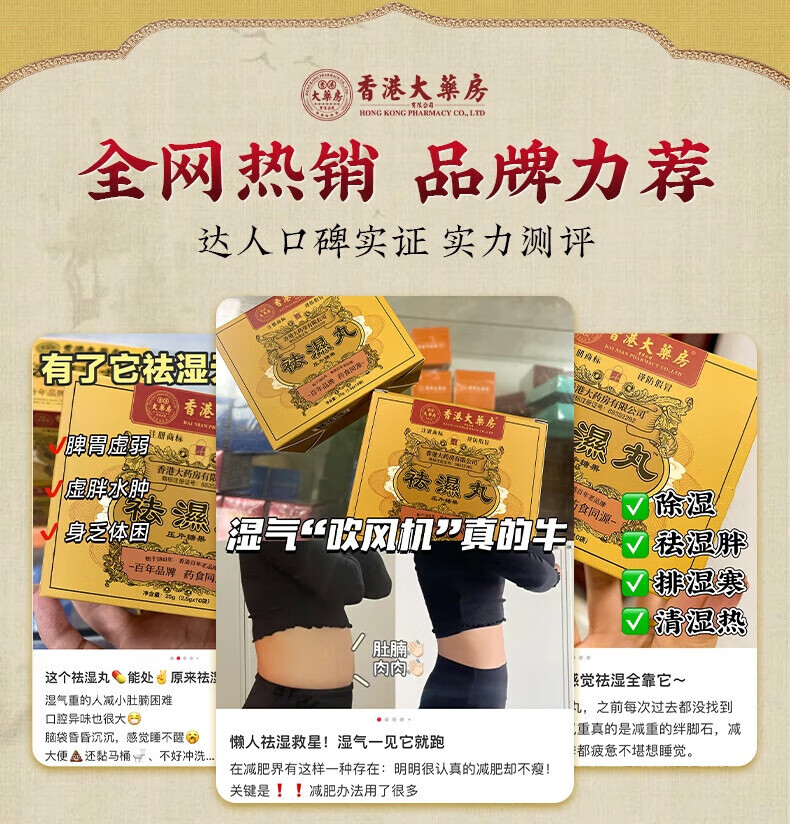 香港大药房祛湿丸无湿轻鸡内金祛体内湿气瘦肚子去除湿气祛湿调脾胃舌苔变色 【基础3盒装】 普通调哩 基础袪濕