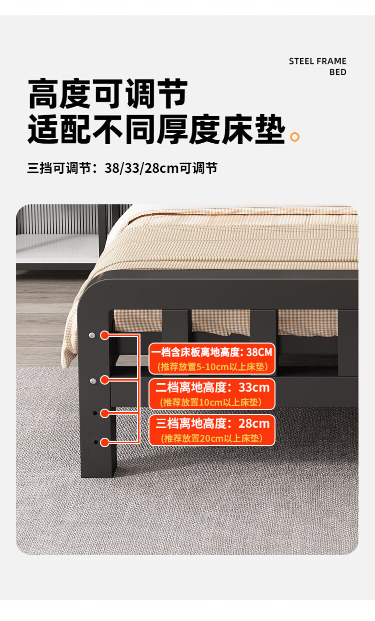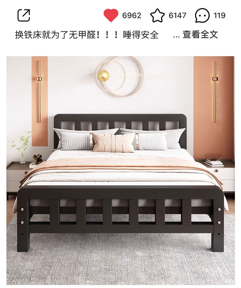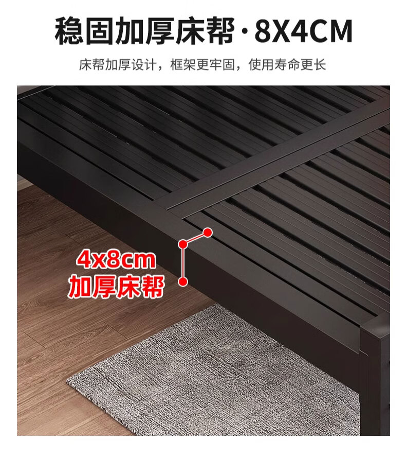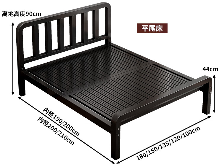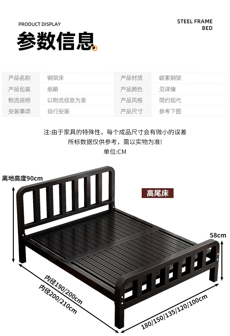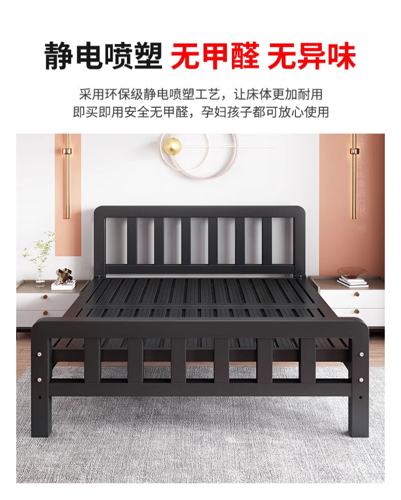 科虎【顺丰入户】床铁艺床双人床家用单人铁架床简约出租房铁床 黑色高头平尾【店长重点推荐】 1.5*2.0m【店长重点推荐款】