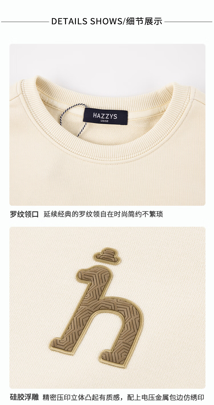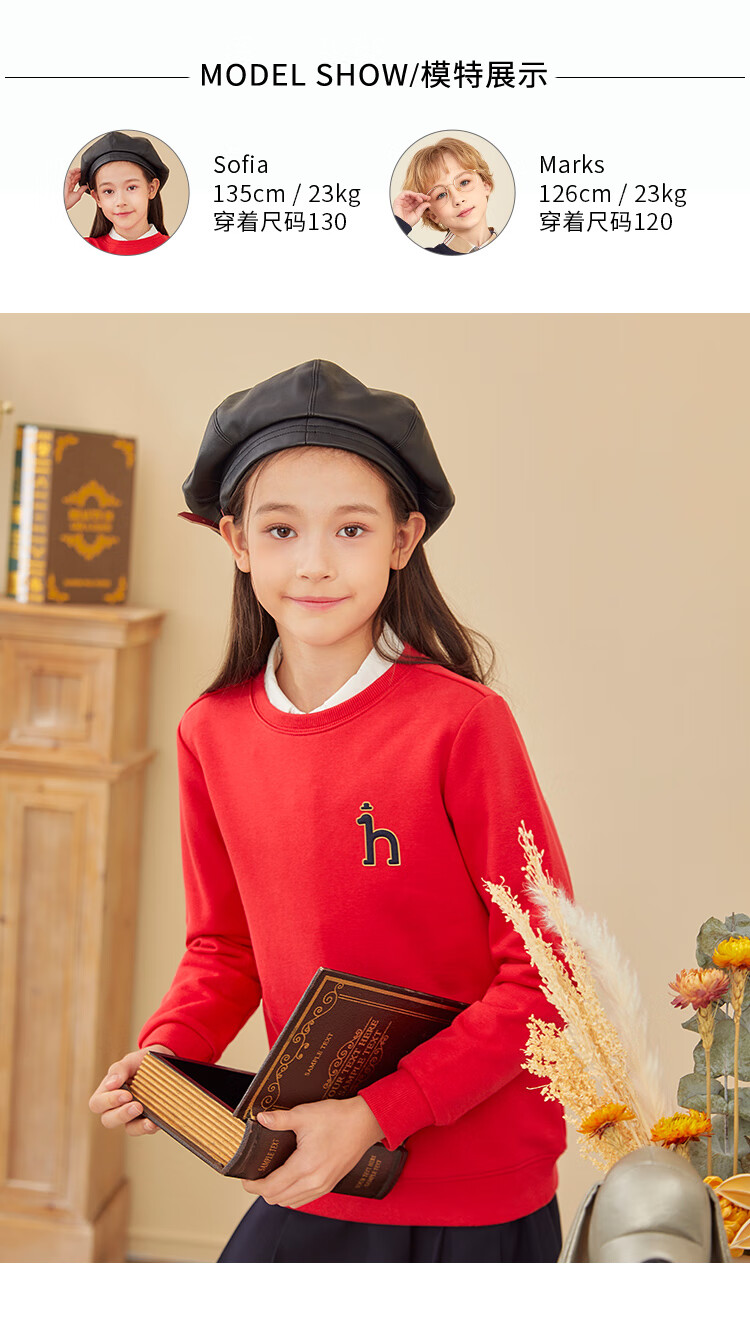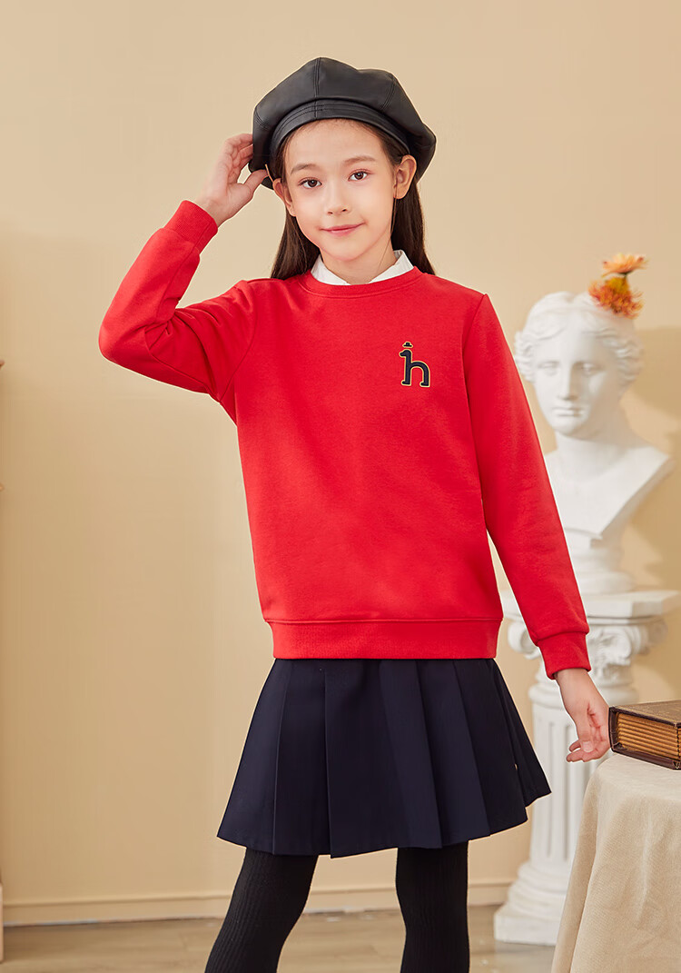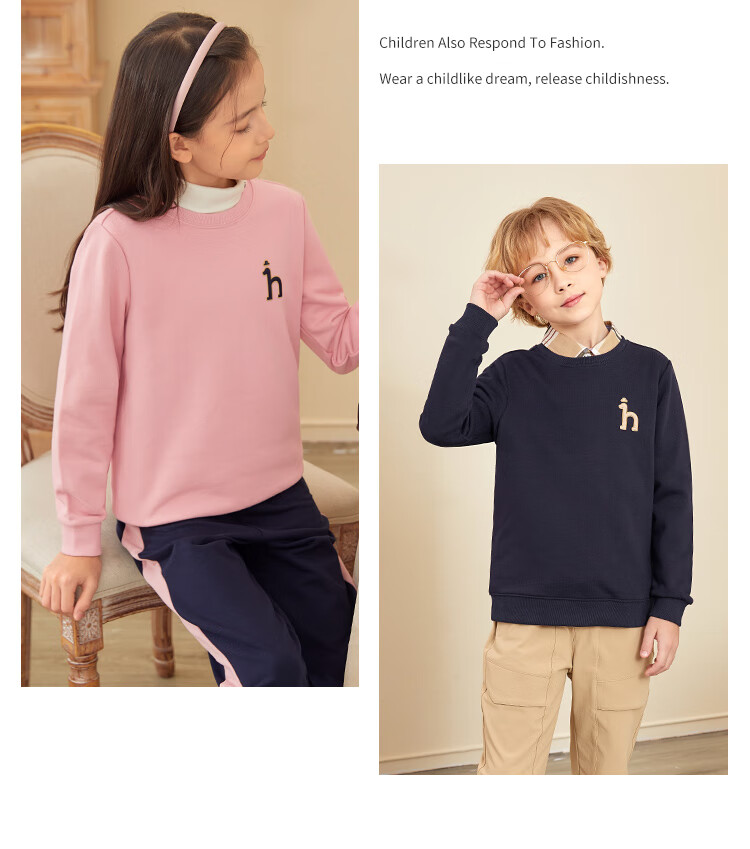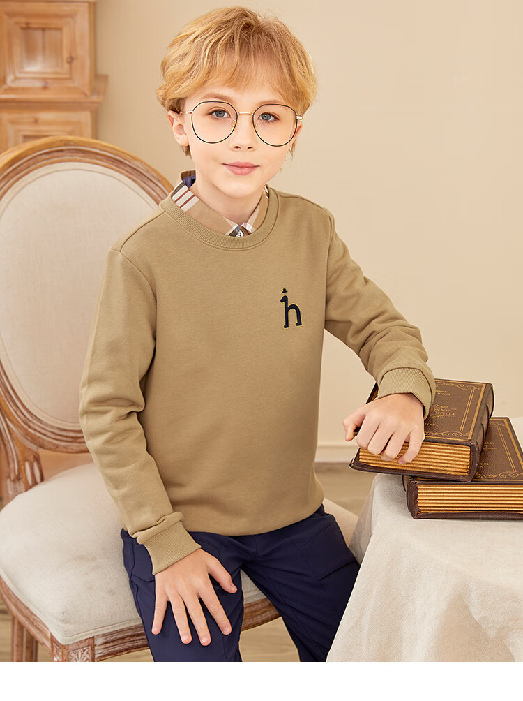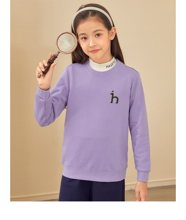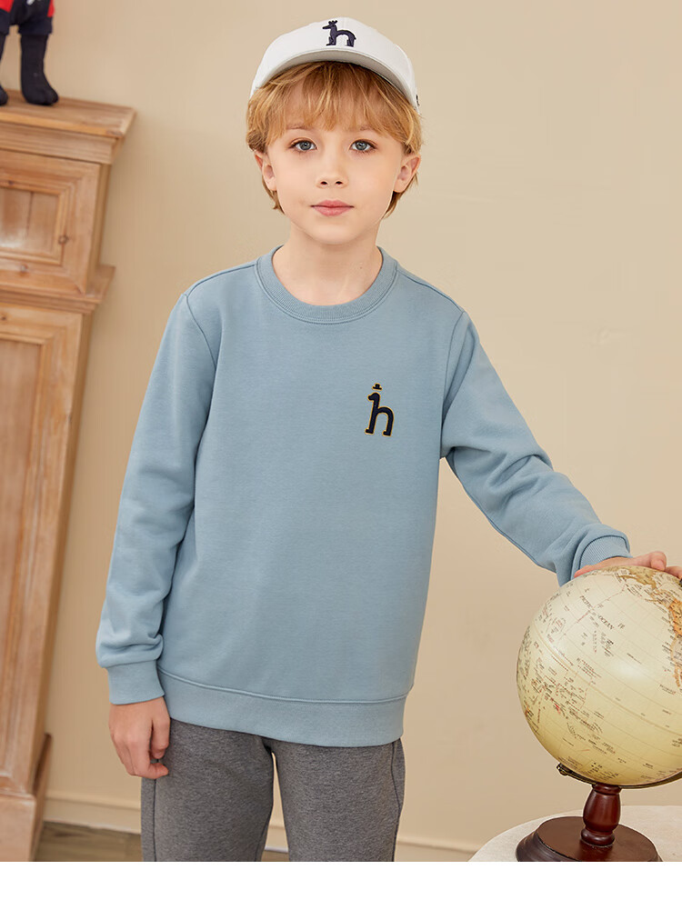 哈吉斯(HAZZYS)童装男女童卫衣秋季新品中大童圆领套头束口上衣 藏蓝 145