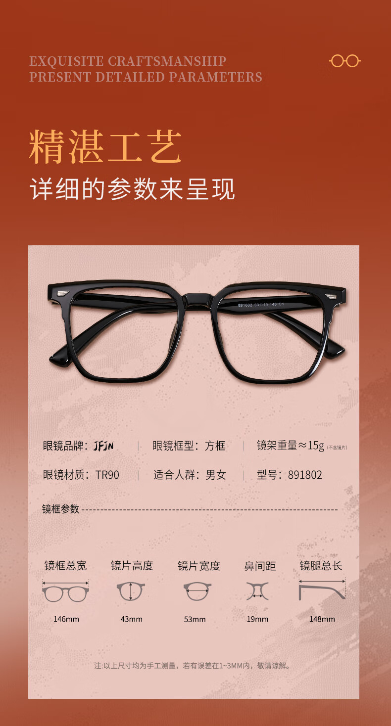 JFJN超轻防蓝光眼镜素颜女款显脸小专业配近视眼镜男可配度数891802