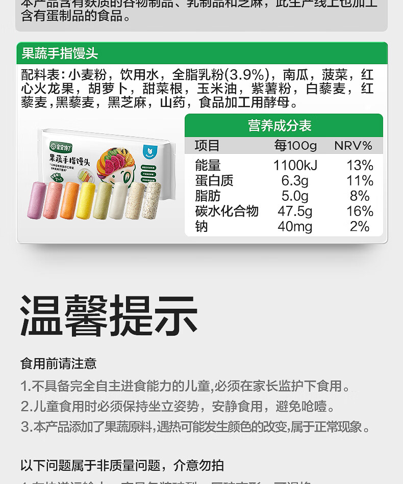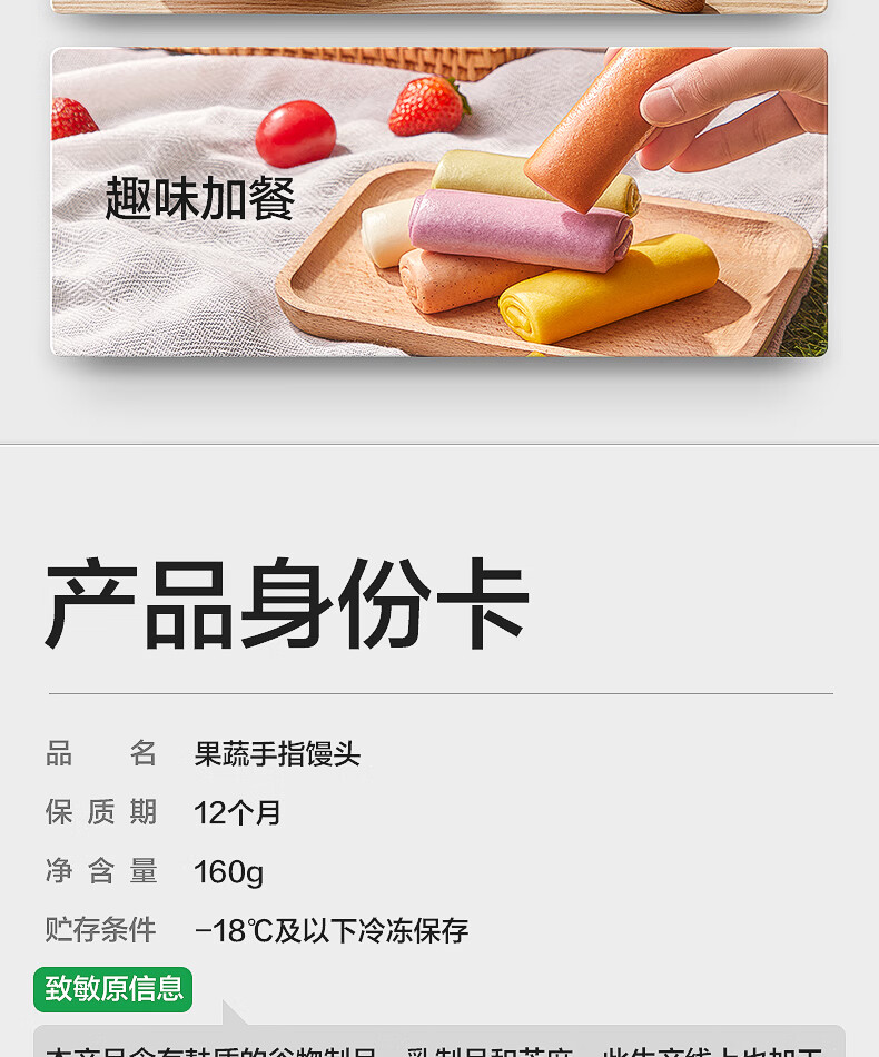 宝宝馋了果蔬手指馒头160g儿童早餐营养主食半成品享婴儿幼儿宝宝辅食谱