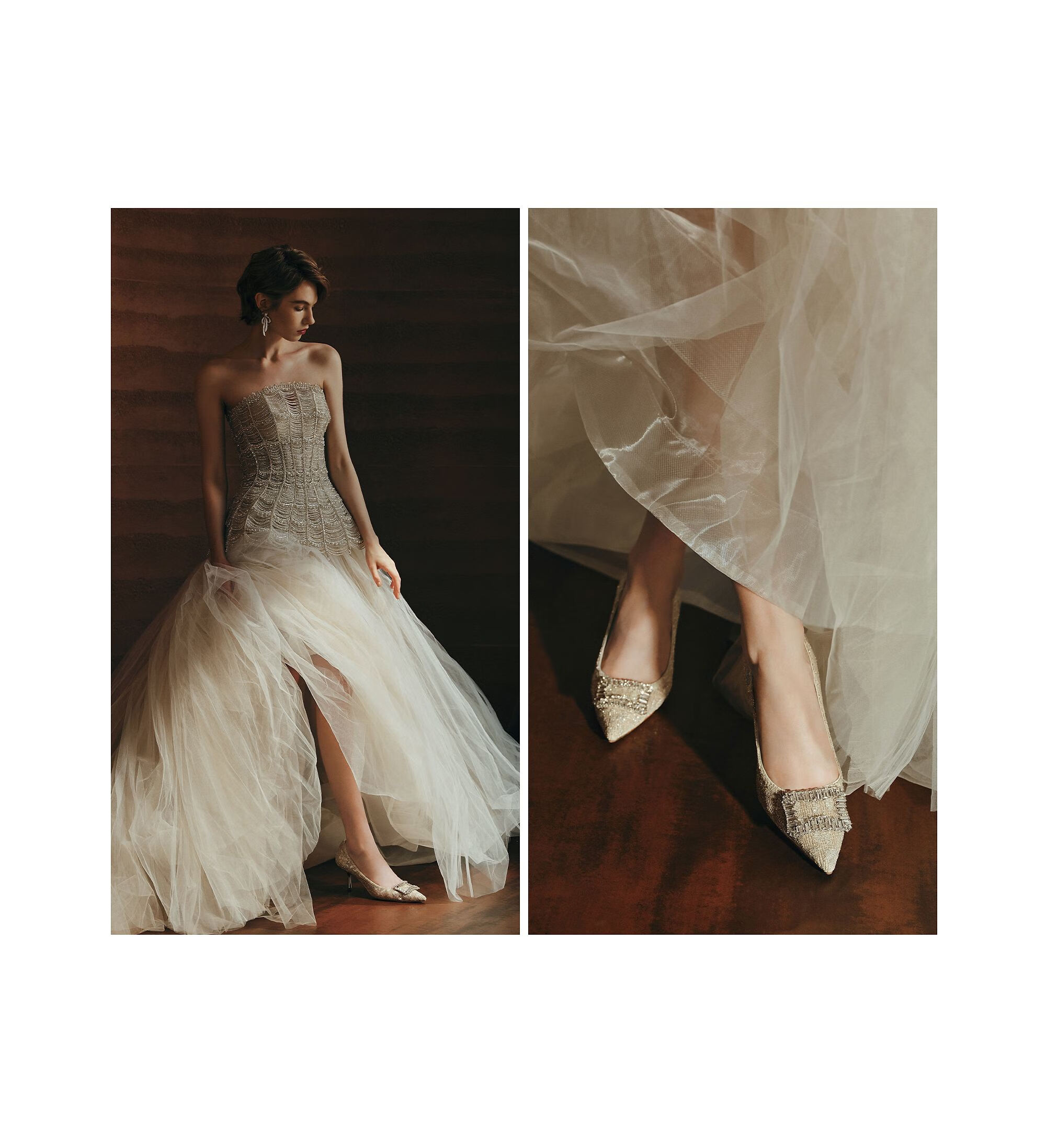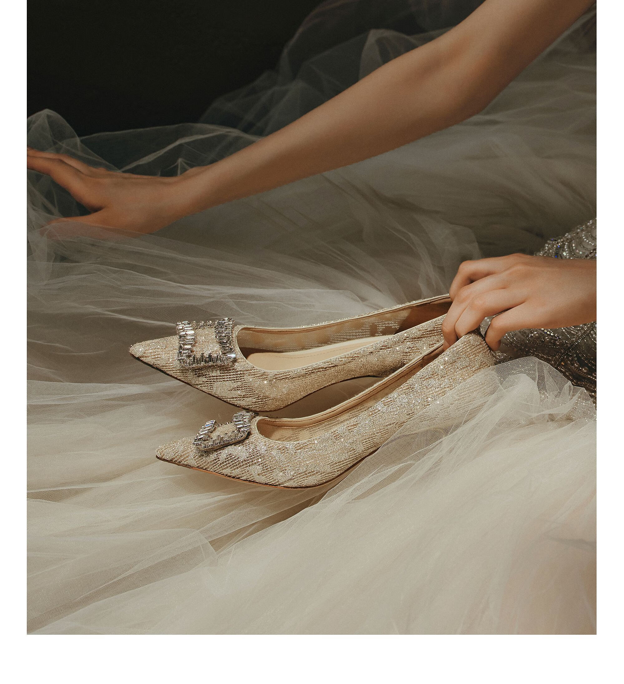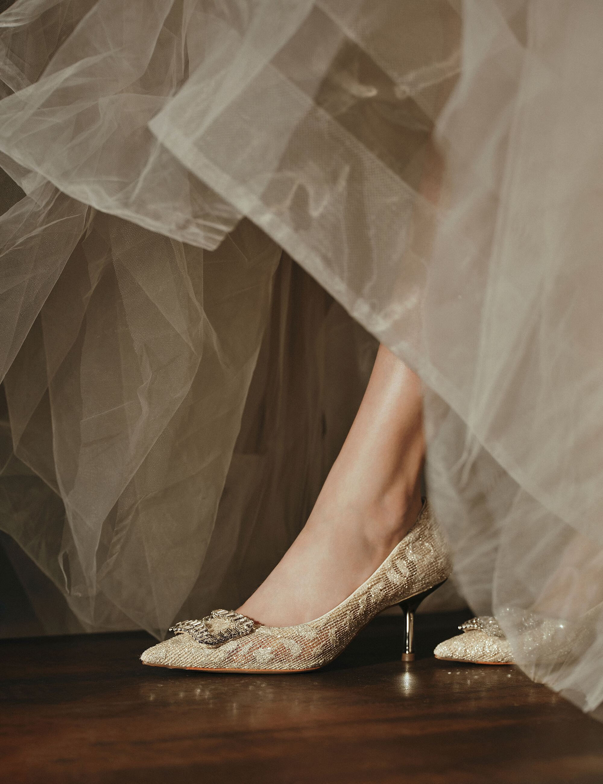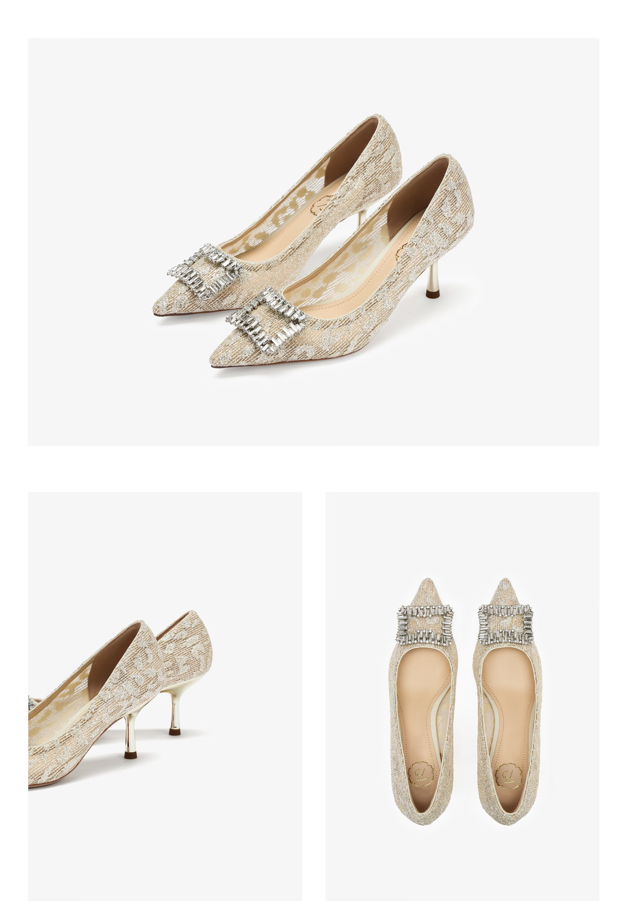 73Hours女鞋钟爱熔金2025秋季新款尖头细跟蕾丝婚鞋气质高跟鞋女 金色 38