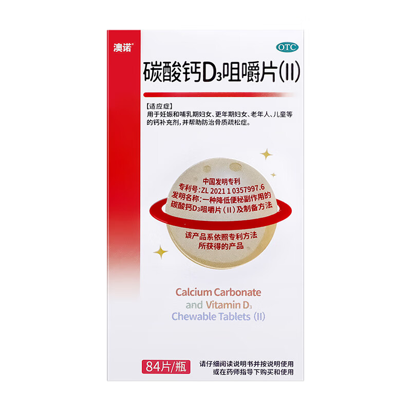 澳诺 碳酸钙D3咀嚼片(Ⅱ)0.75g:60lU*84片 1盒+澳诺 葡萄糖酸钙锌口服溶液 5ml*36支1盒