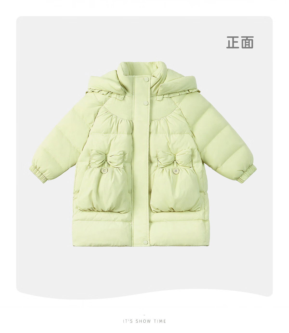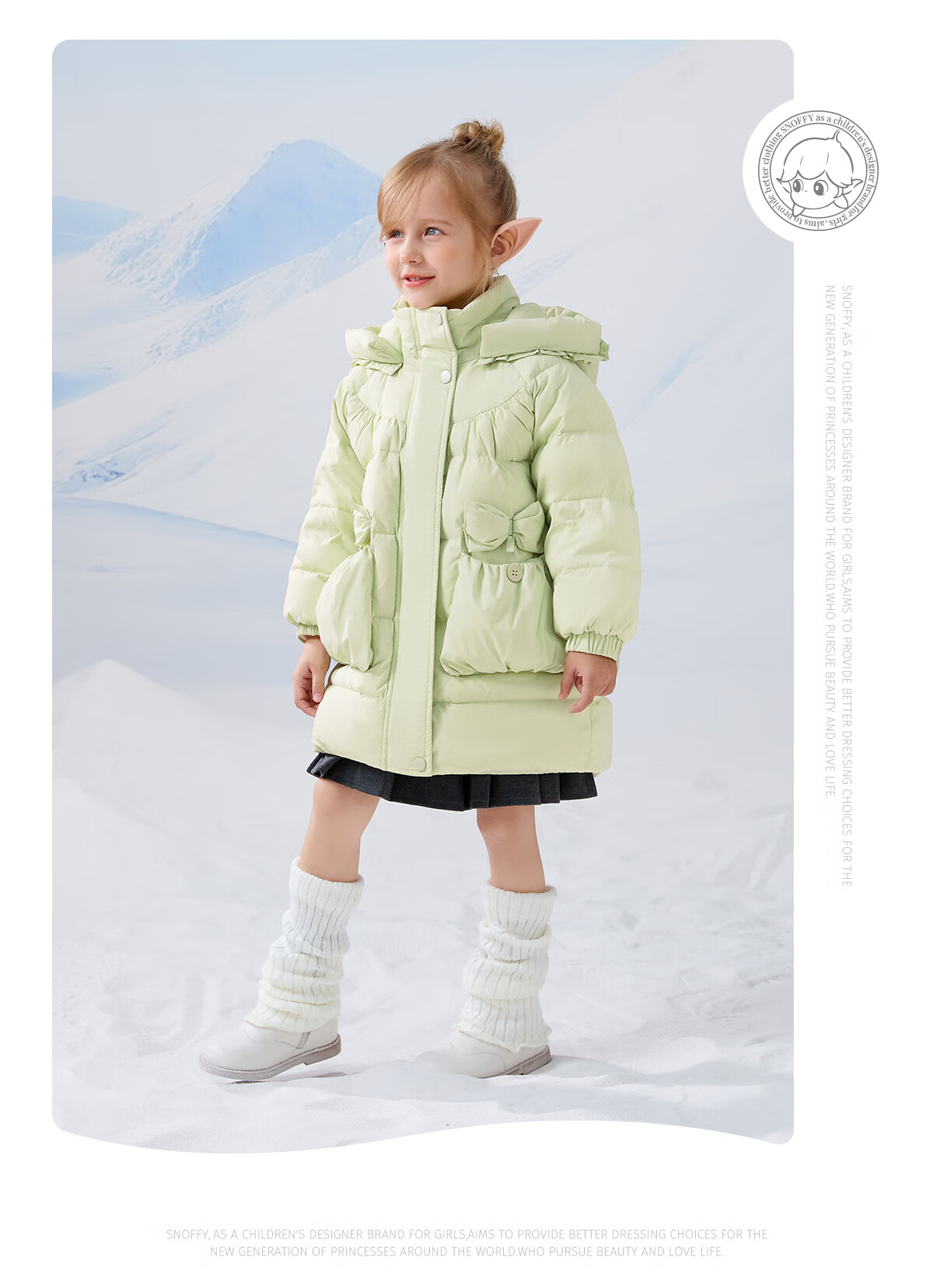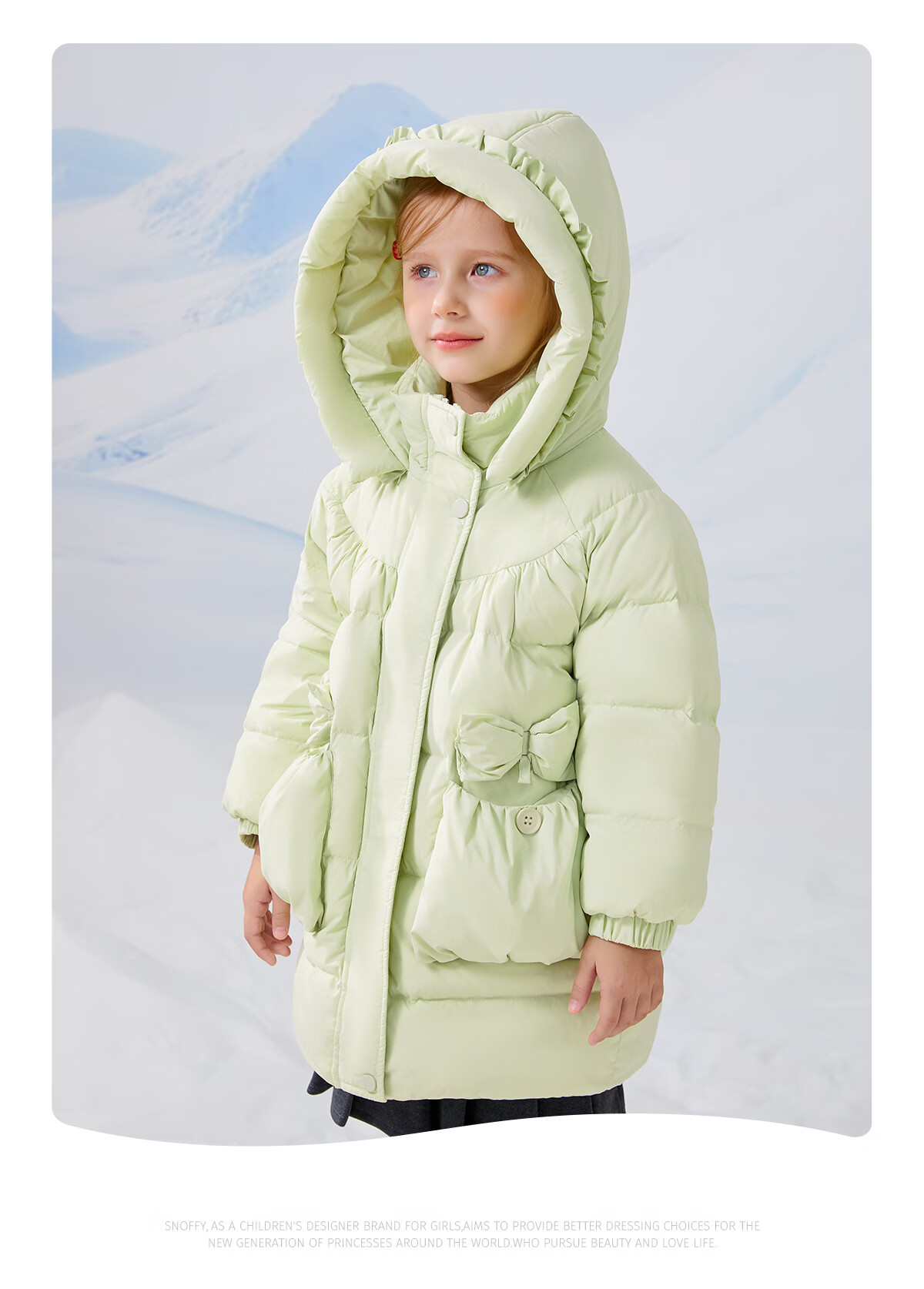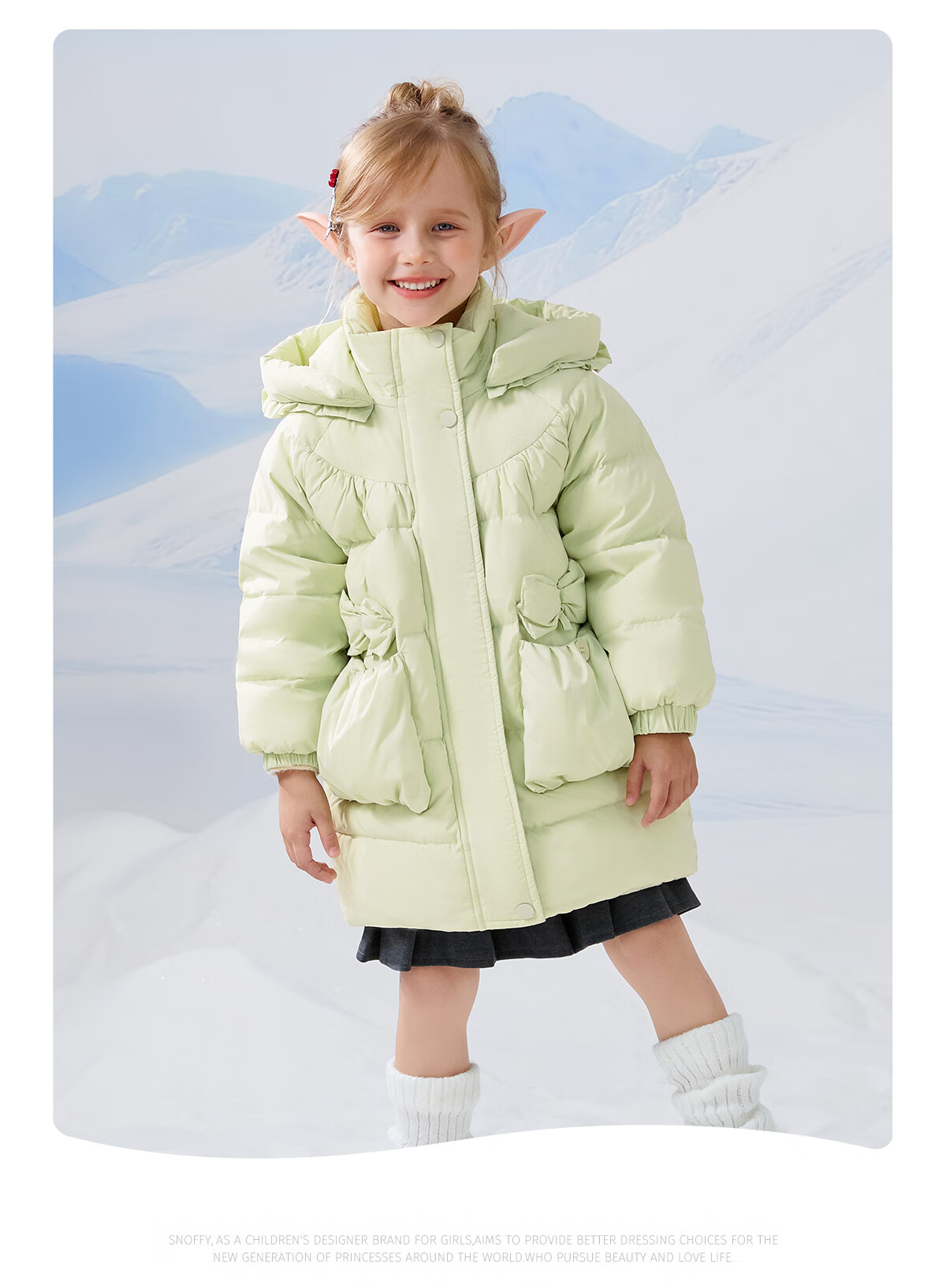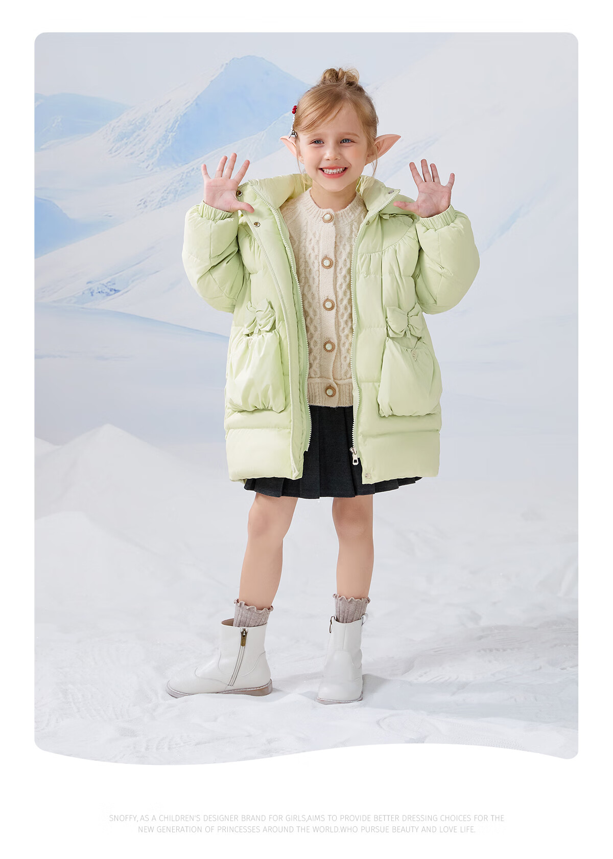 斯纳菲儿童羽绒服女童冬季加厚保暖童装女宝宝中长款外套 莺黄绿 120