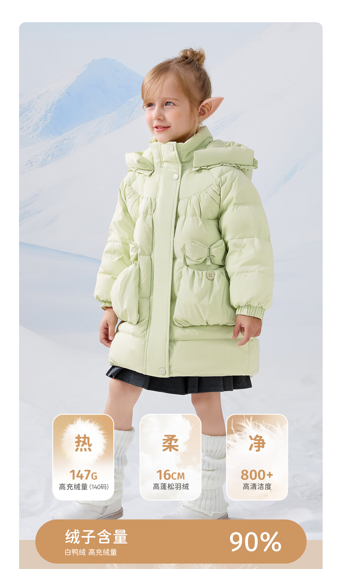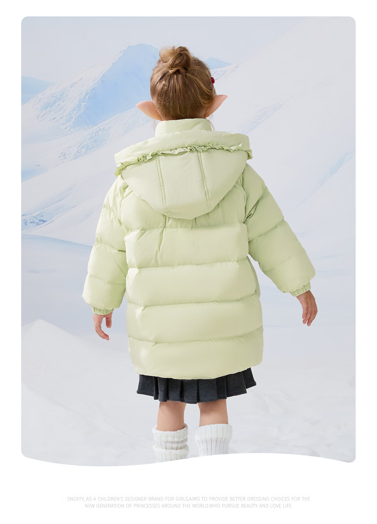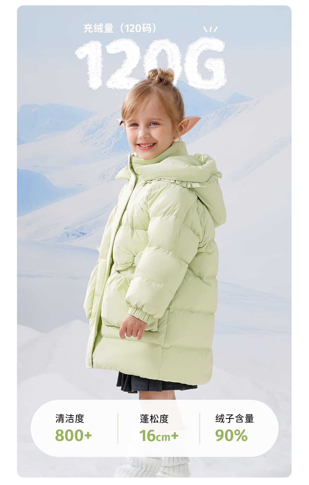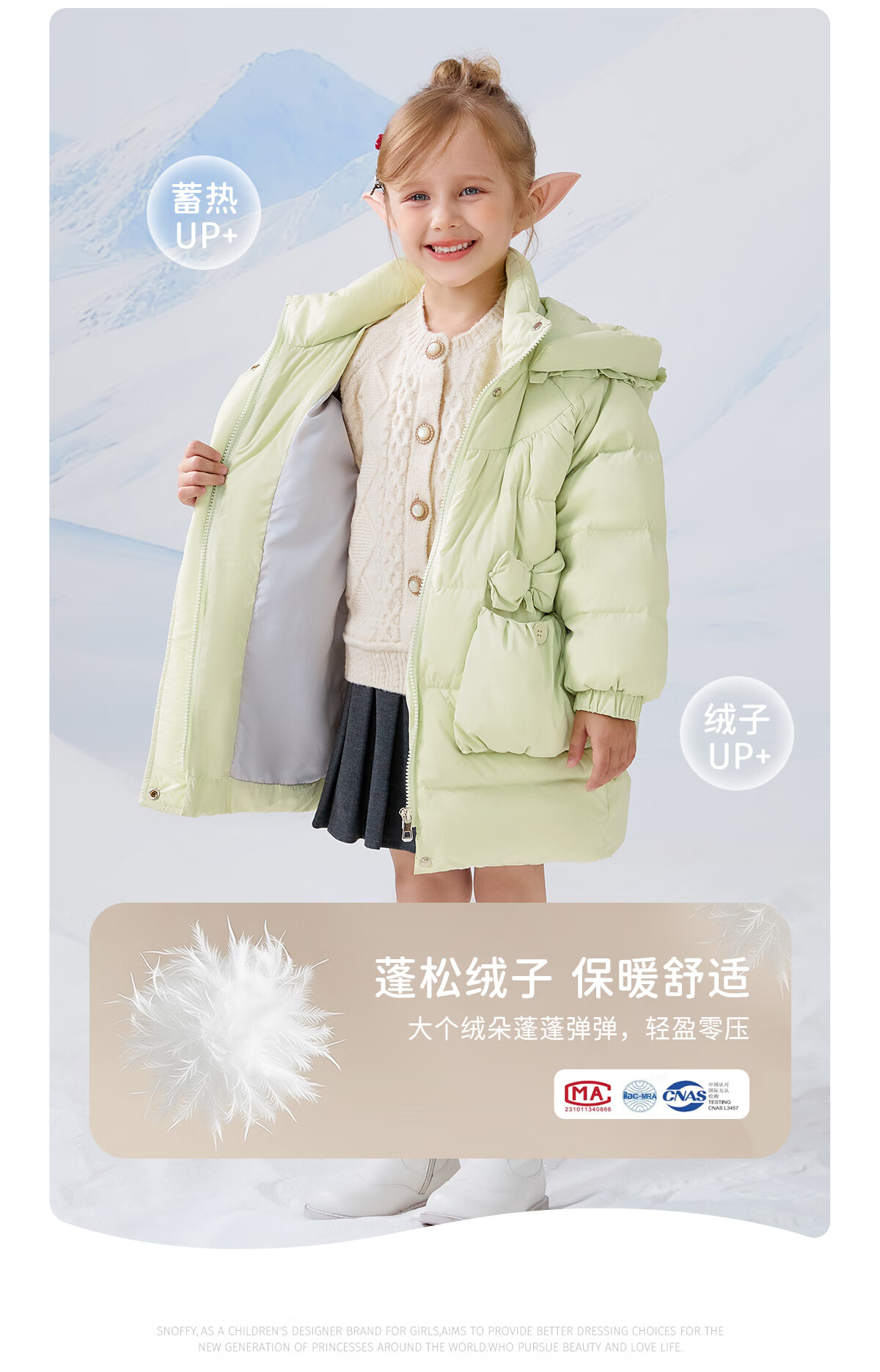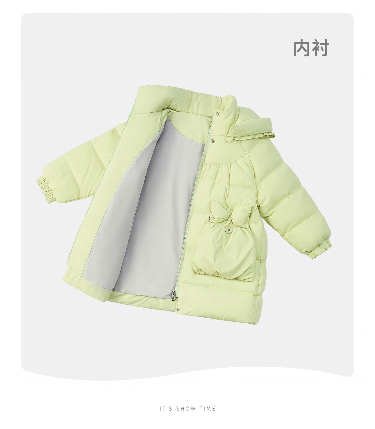 斯纳菲儿童羽绒服女童冬季加厚保暖童装女宝宝中长款外套 莺黄绿 120