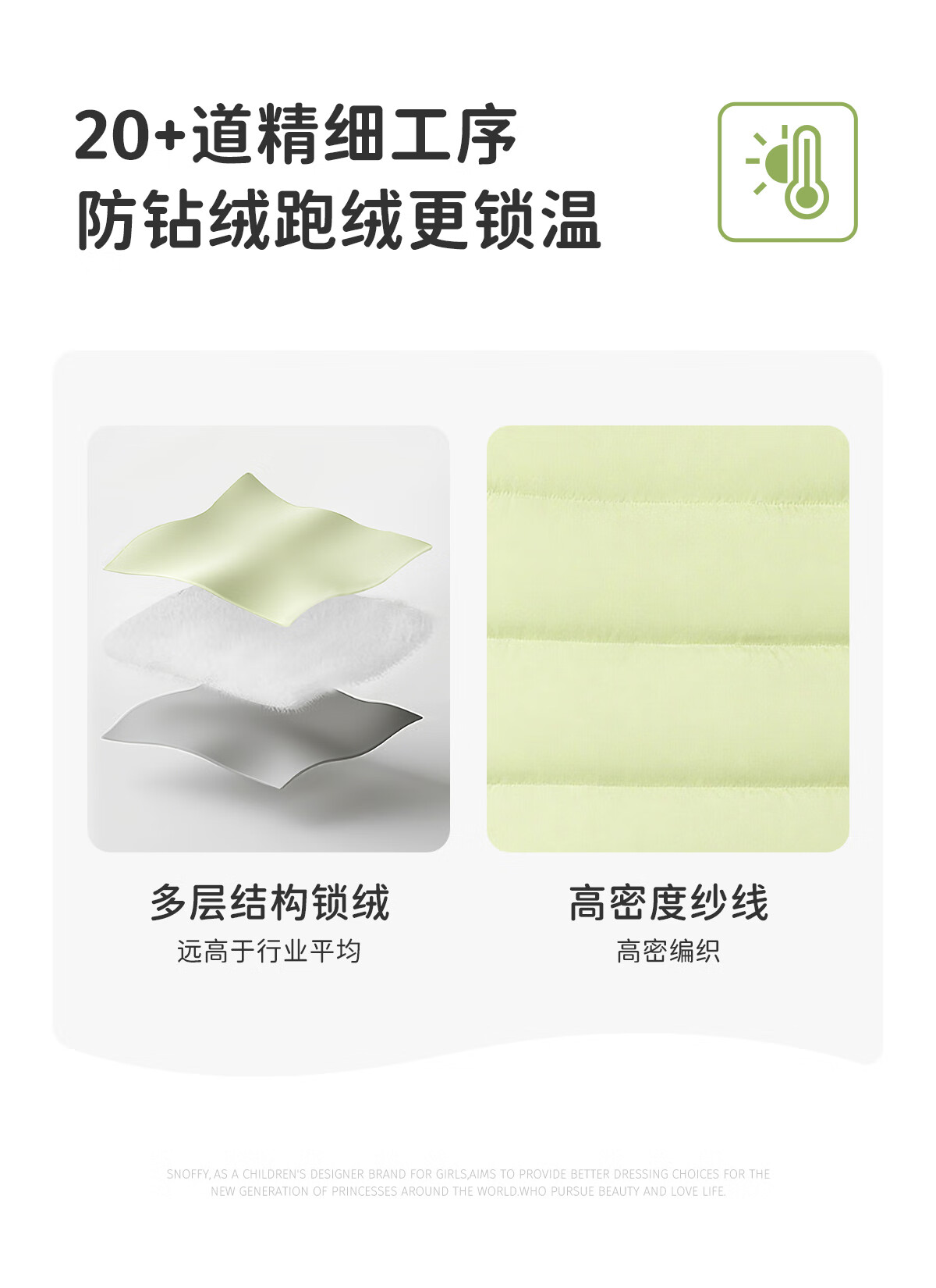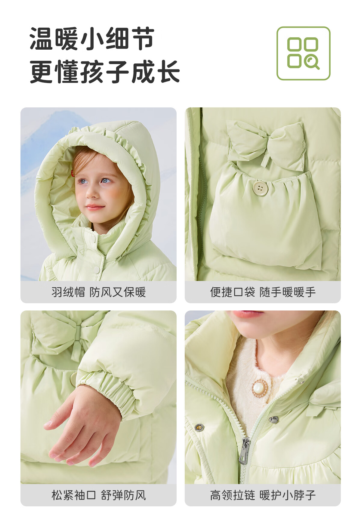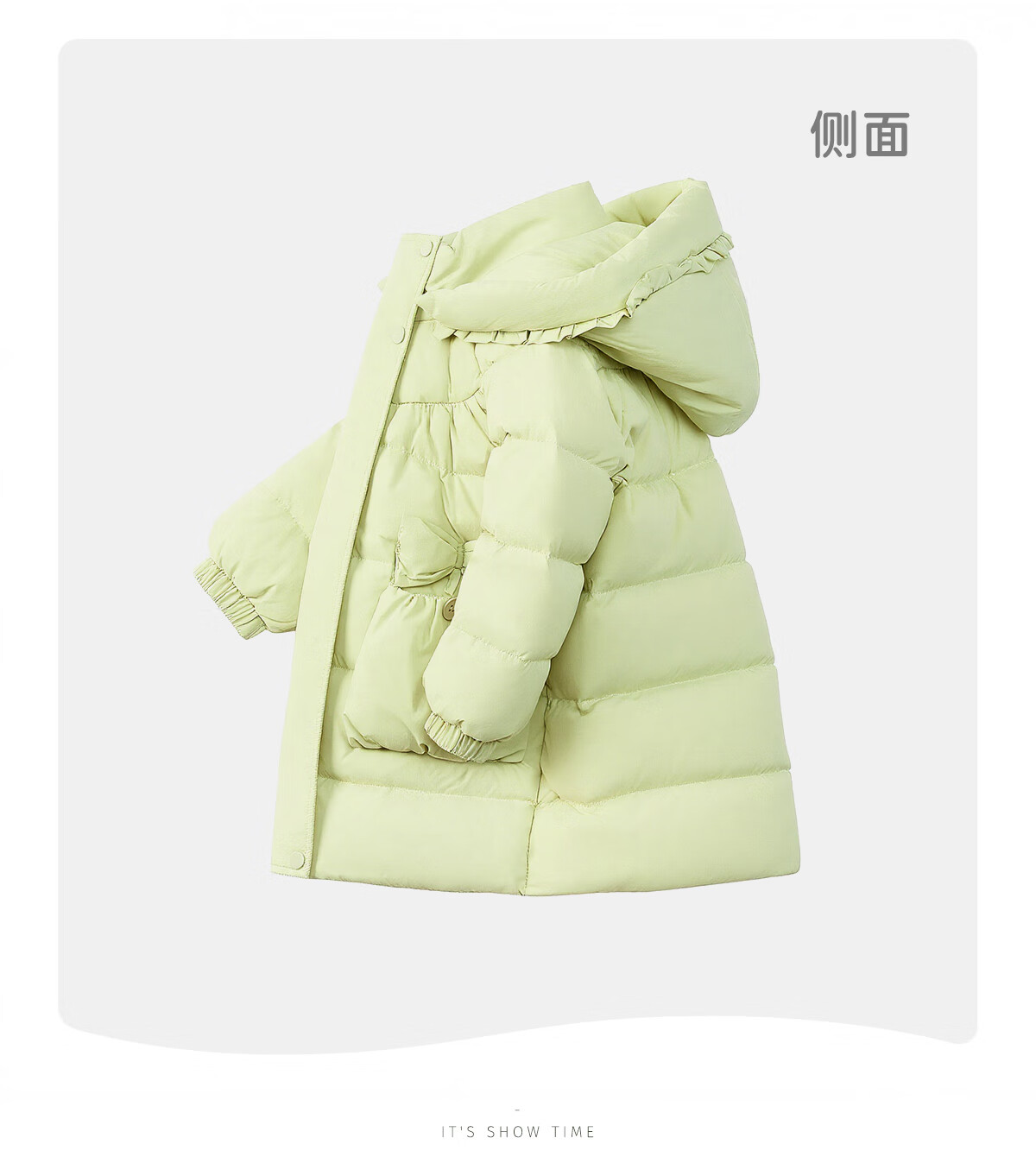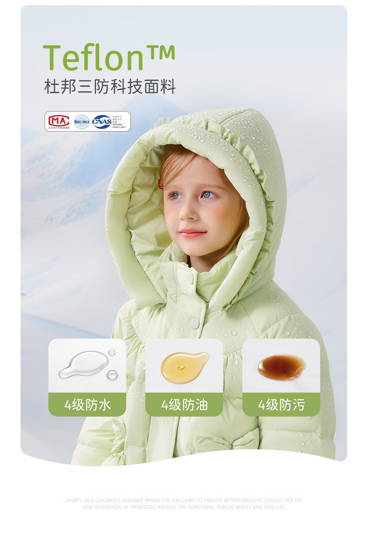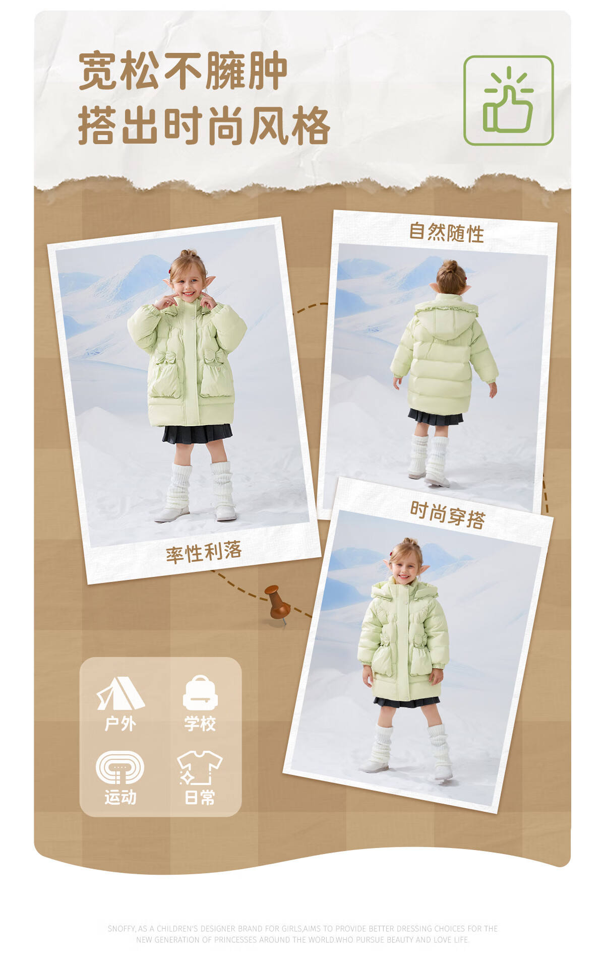 斯纳菲儿童羽绒服女童冬季加厚保暖童装女宝宝中长款外套 莺黄绿 120