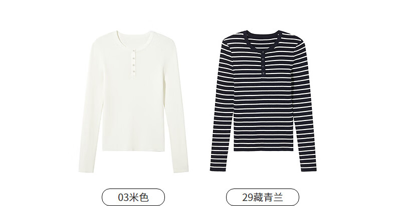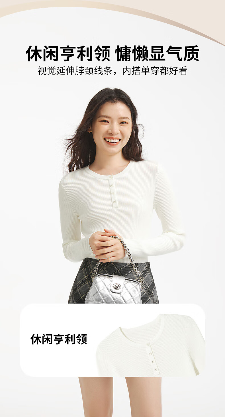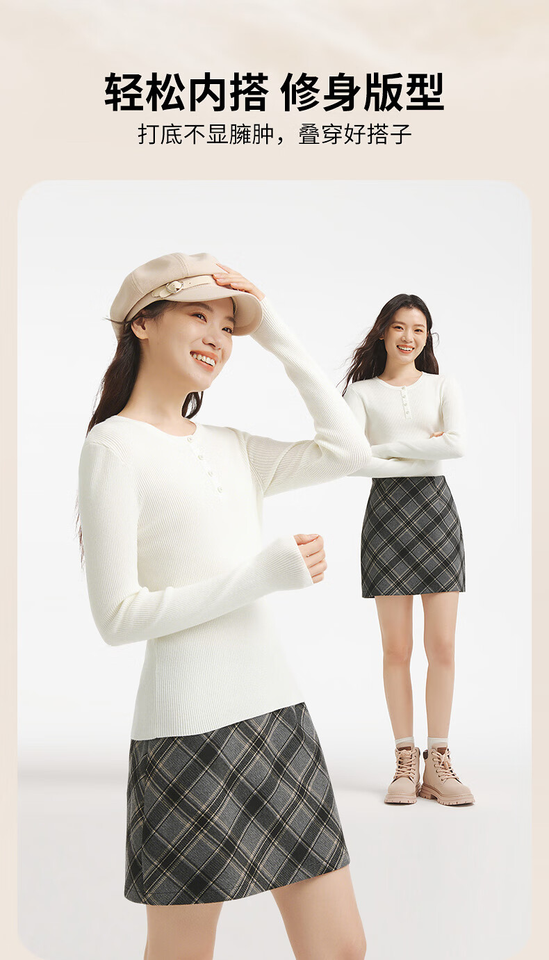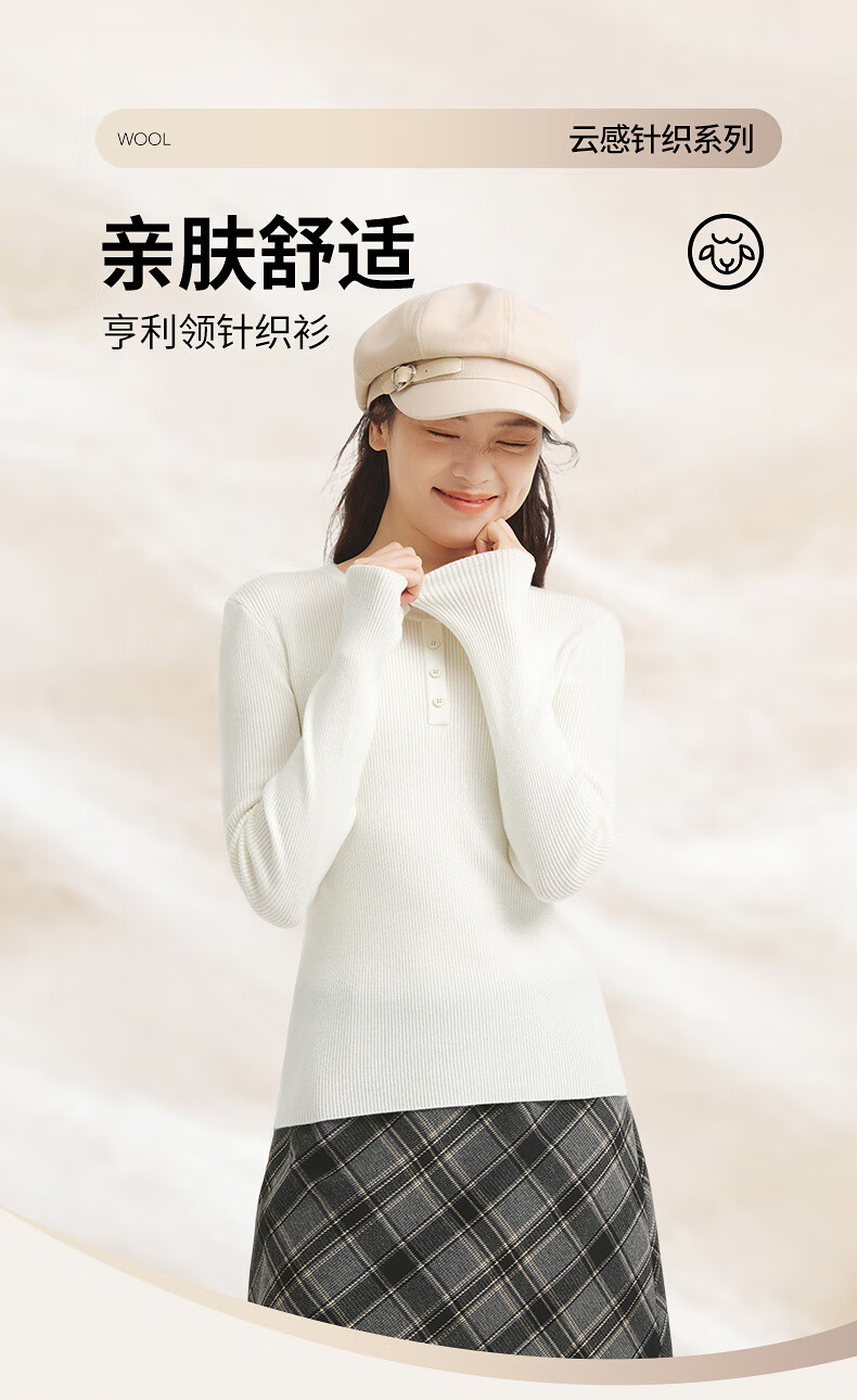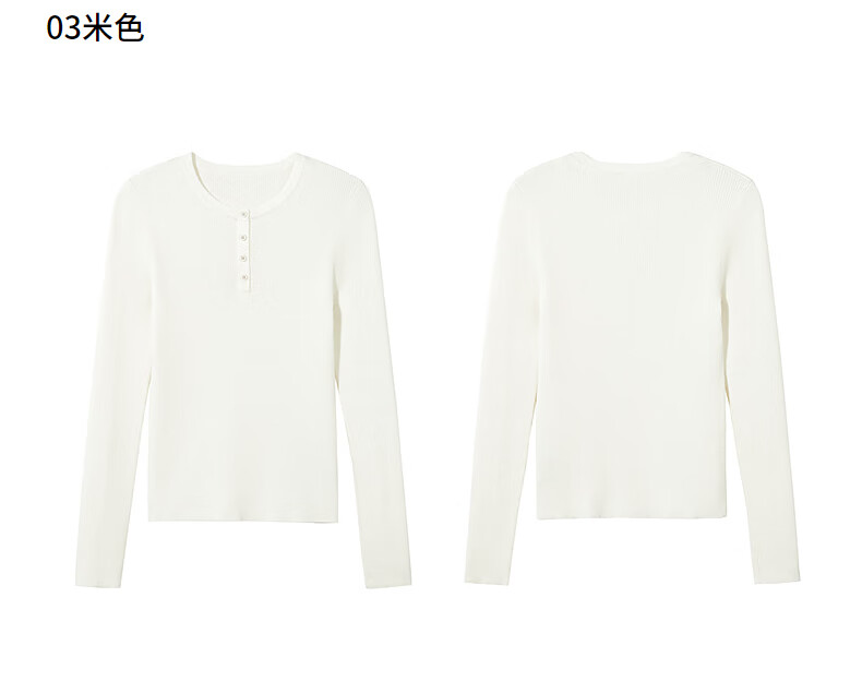 热风女士针织衫修身打底毛衣2025年冬季新款美式亨利领打底衫上衣 03米色 S