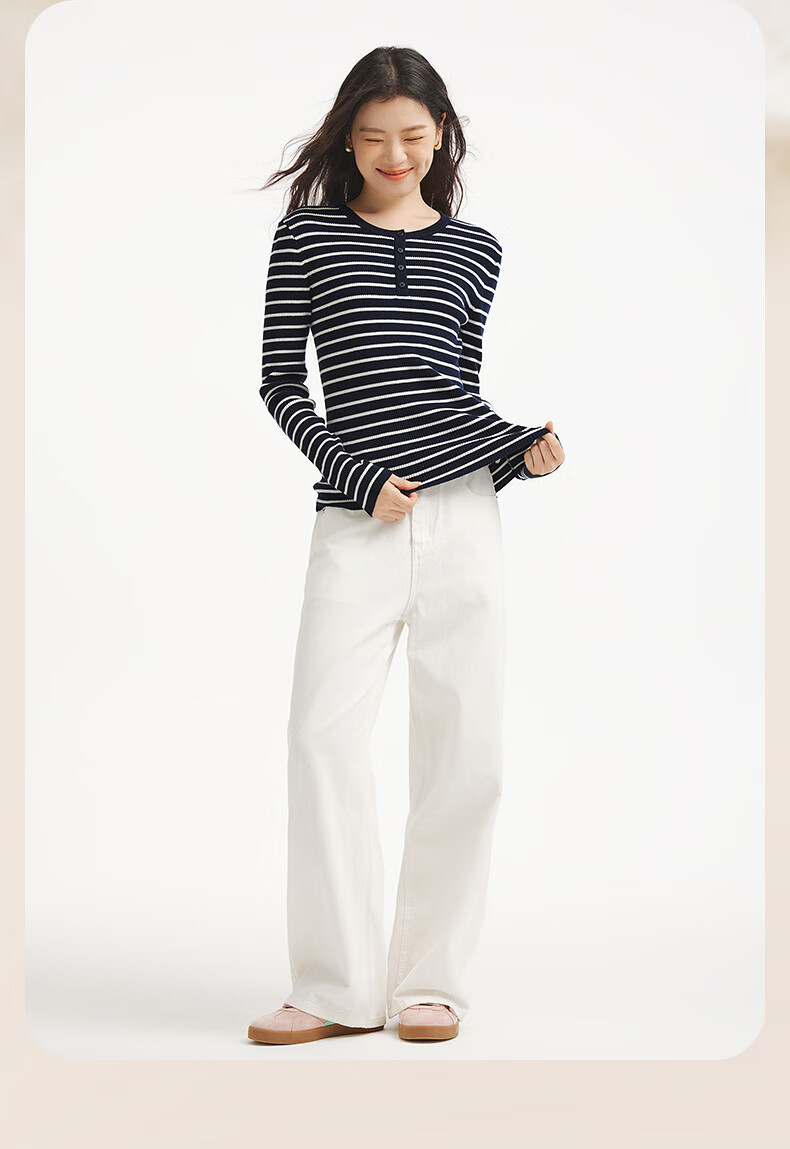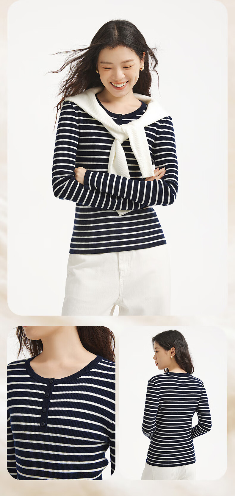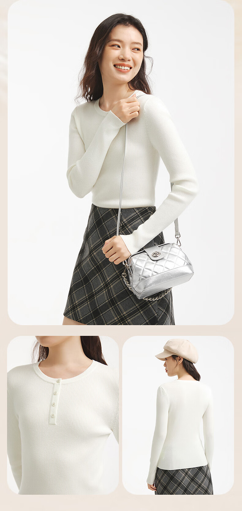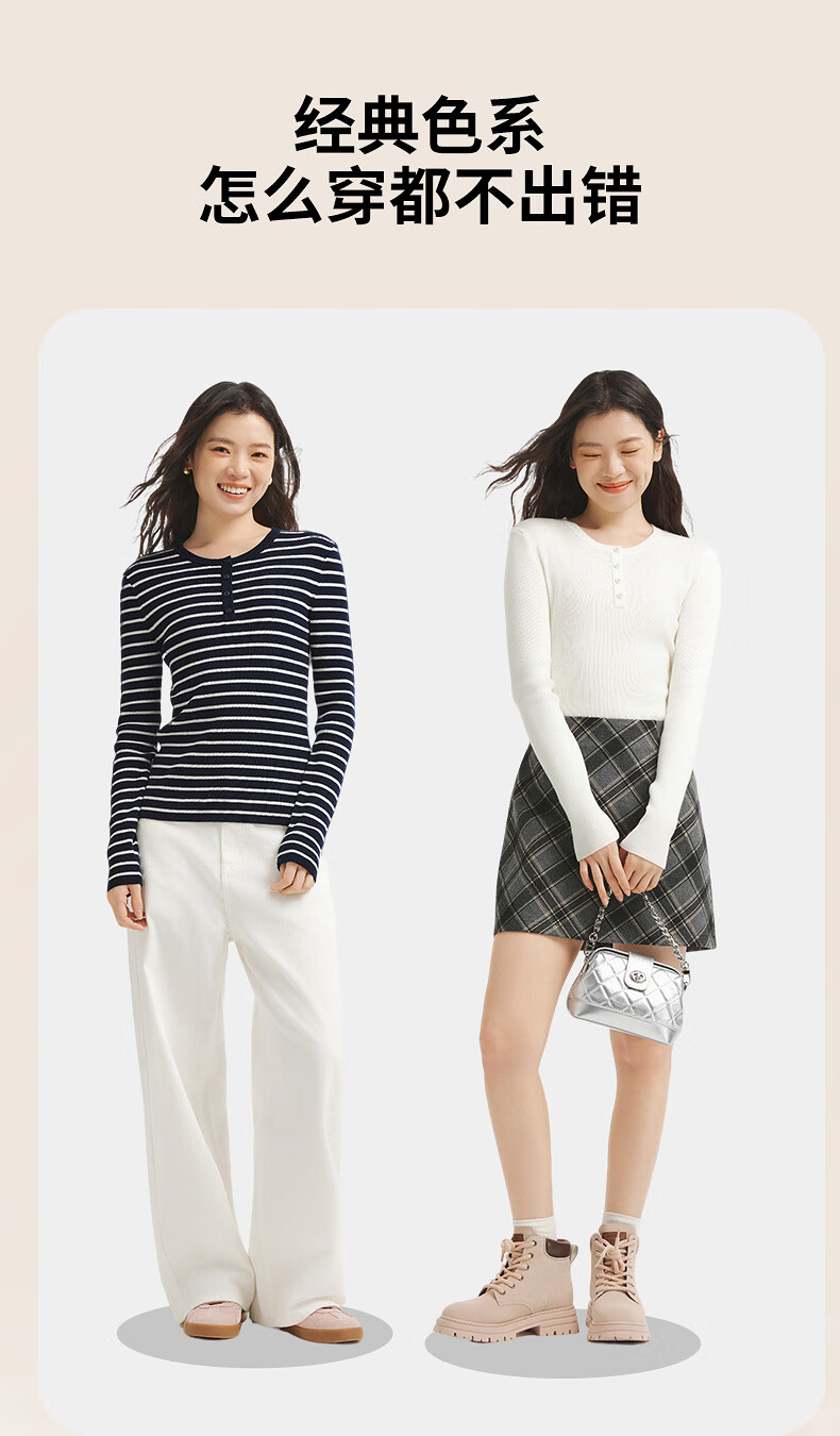 热风女士针织衫修身打底毛衣2025年冬季新款美式亨利领打底衫上衣 03米色 S