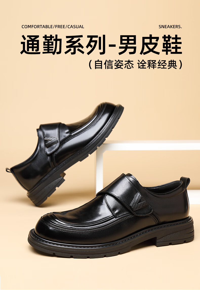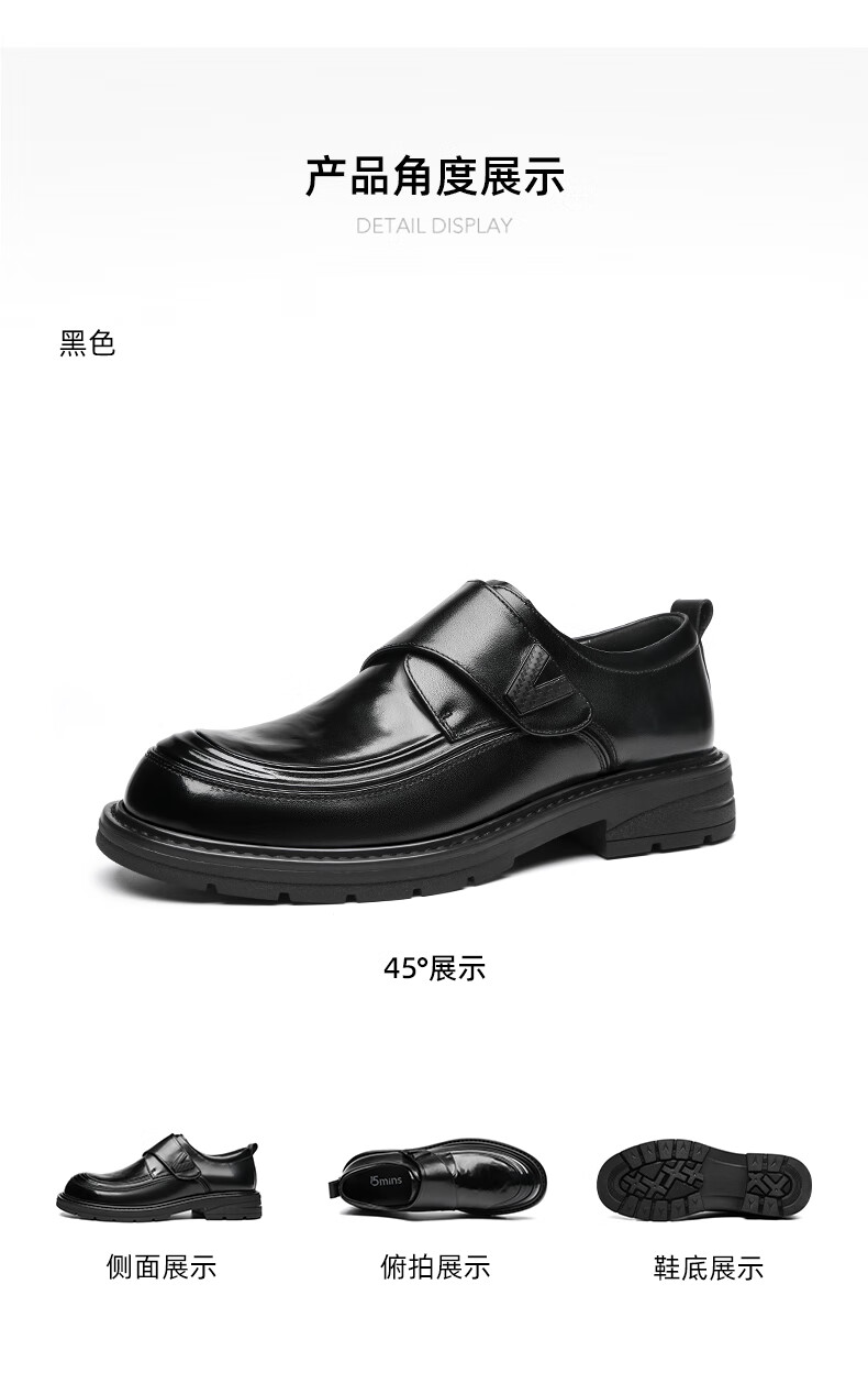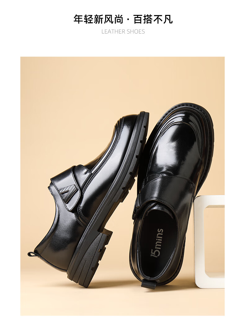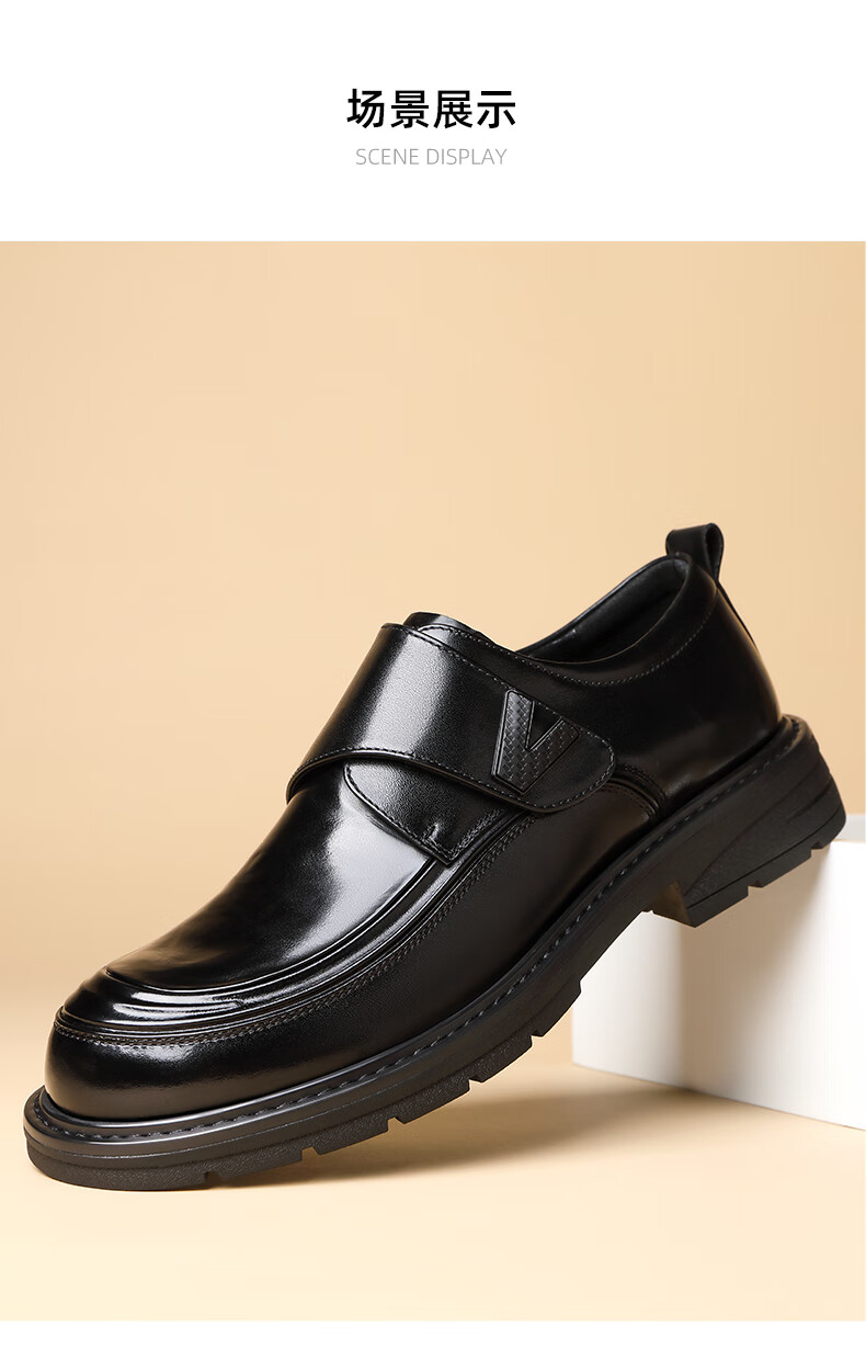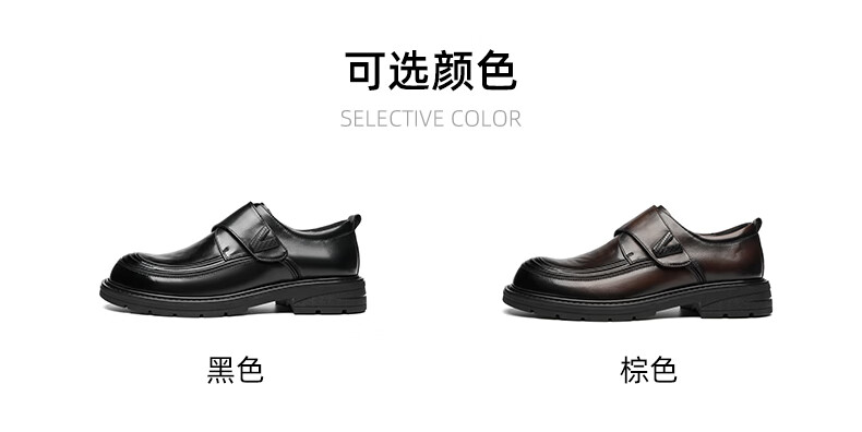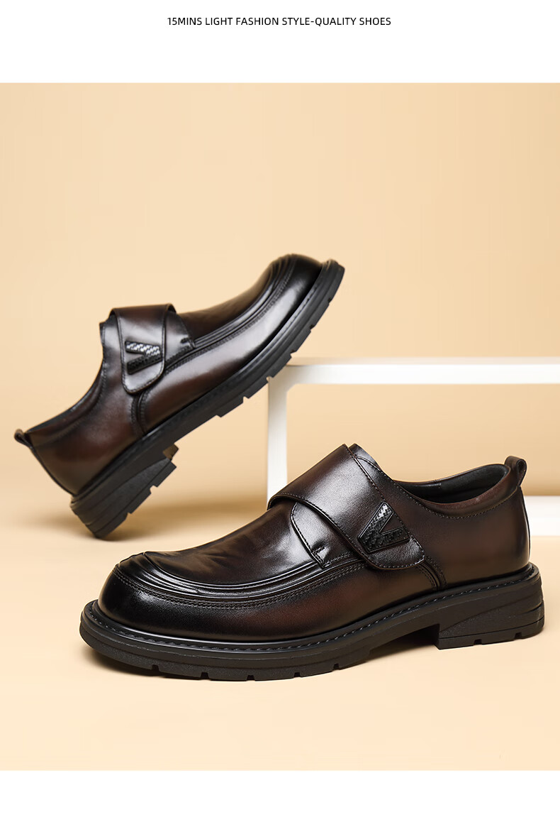 15分钟头层牛皮男士商务正装皮鞋高端孟克鞋休闲皮鞋男 E2411 棕色 39