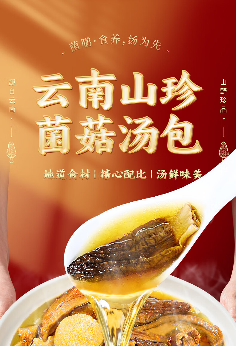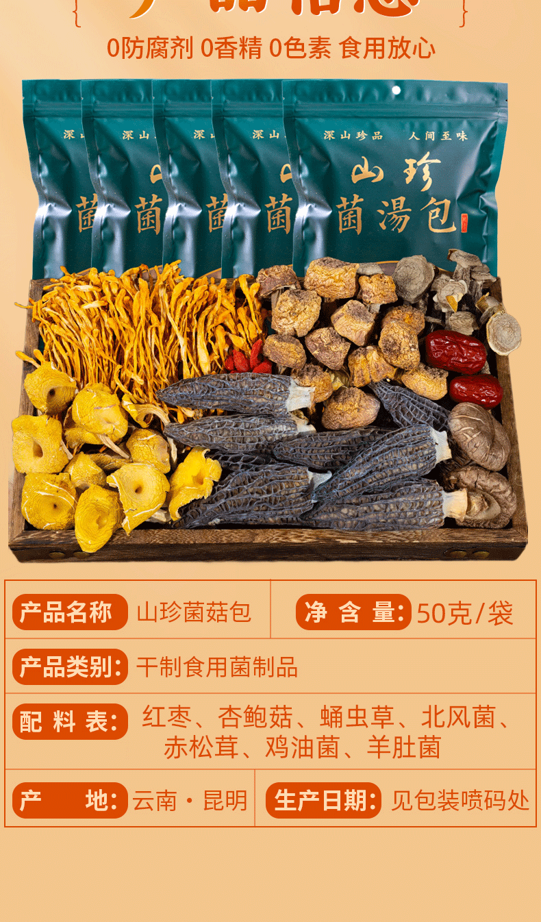 菌心鲜 羊肚菌汤包50g 云南山珍菌菇汤包特产干货松茸蘑菇煲炖鸡材料包