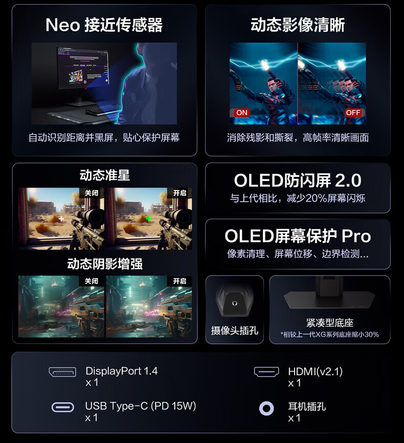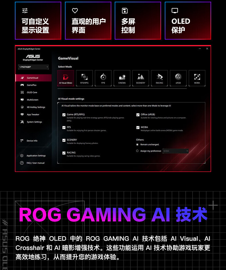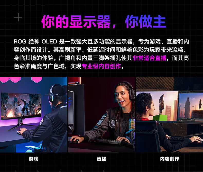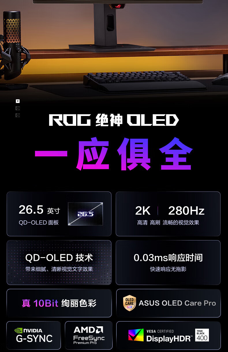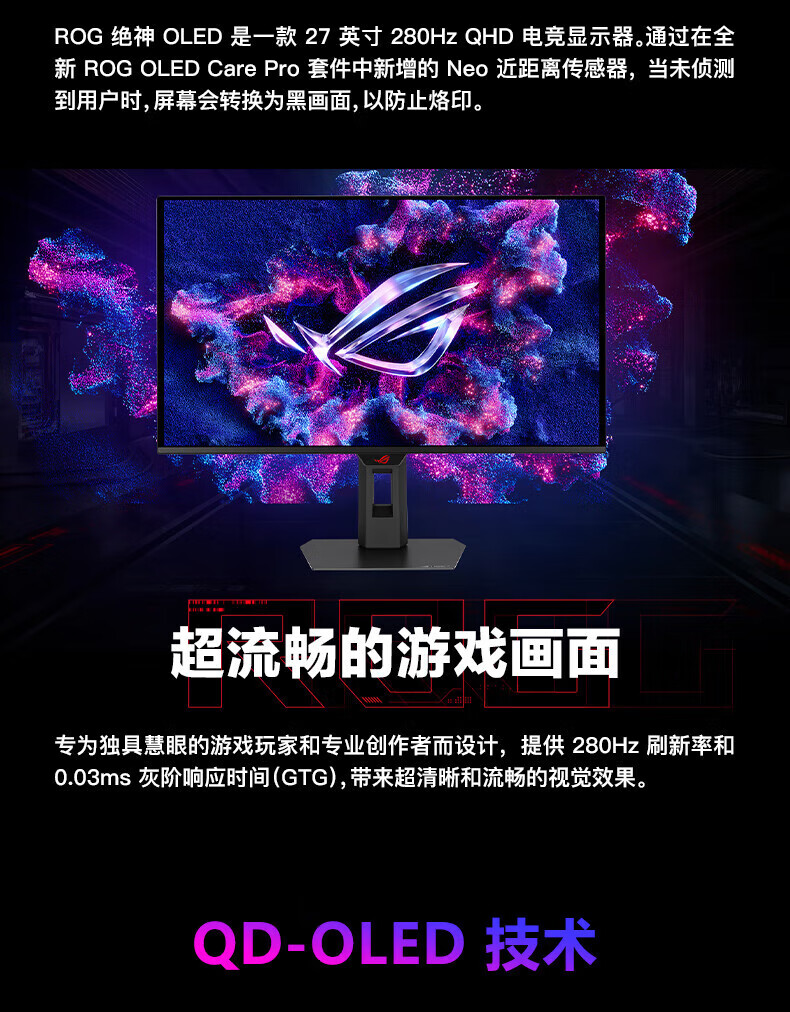 华硕ROG 超杀27 国家补贴15% 27英寸OLED显示器2K电竞显屏幕 280Hz 真10bit 可调节HDR XG27ACDMS 2K280Hz OLED屏