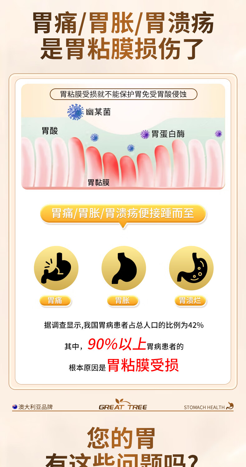 GREAT TREE澳洲进口品牌护胃片 辅助保护胃黏膜修复损伤养胃舒缓胃痛胃酸胀