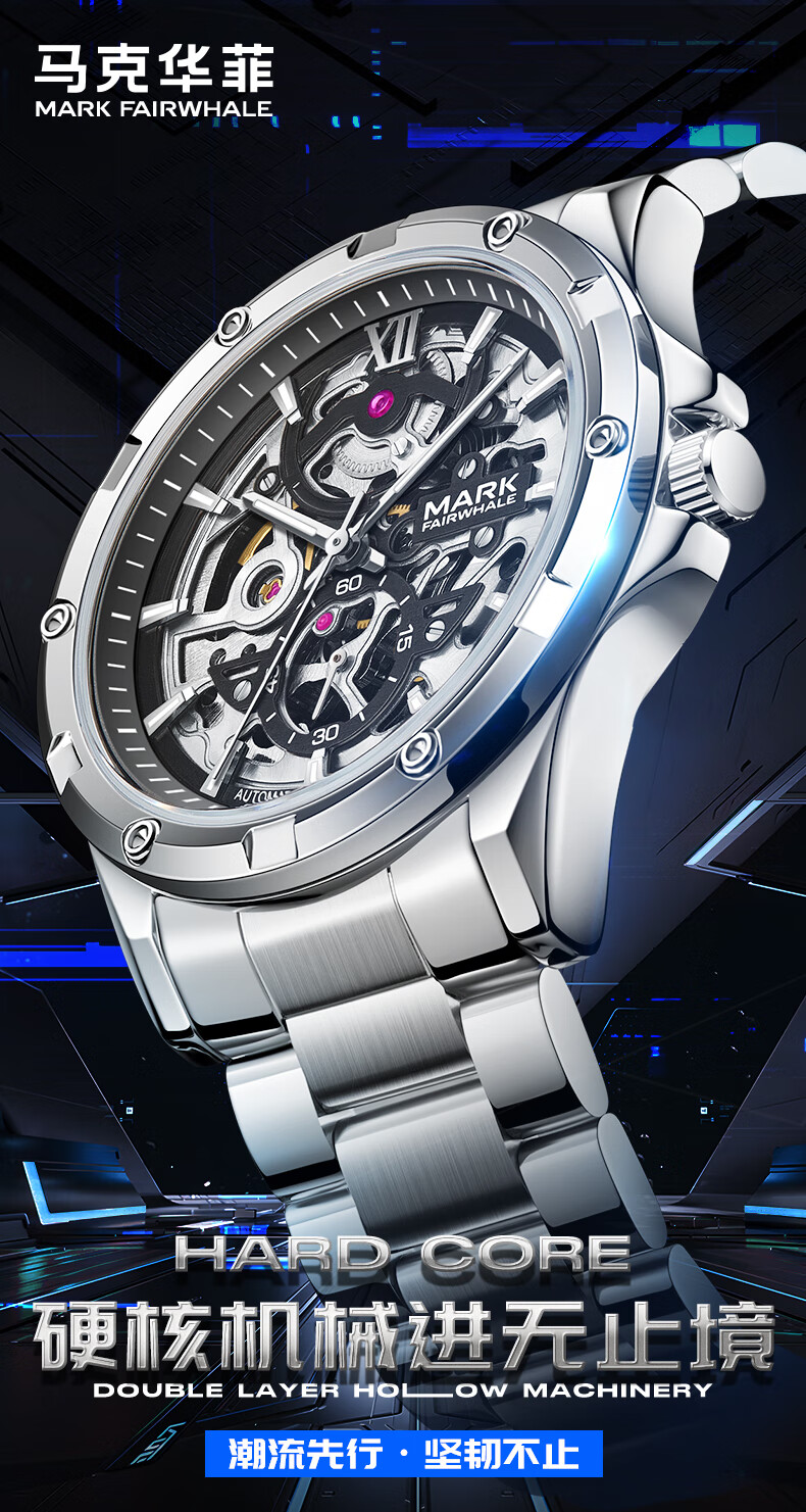 马克华菲(FAIRWHALE)探险者男士自动机械手表商务防水国表学生腕表生日礼物送男友