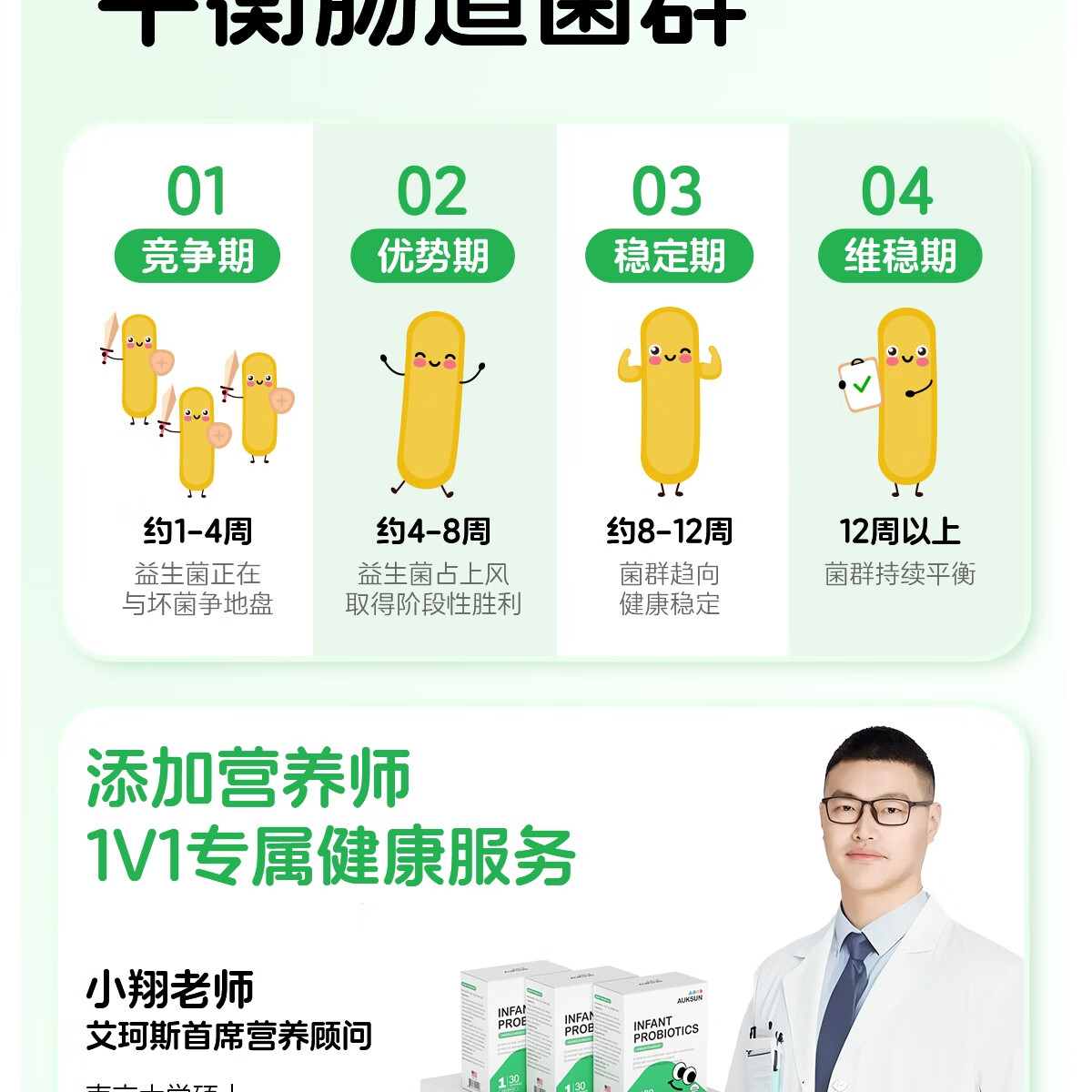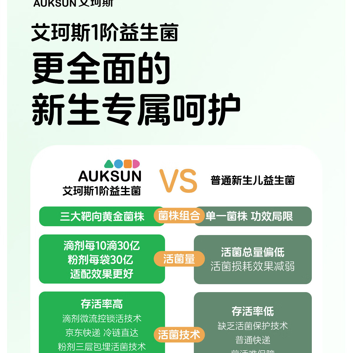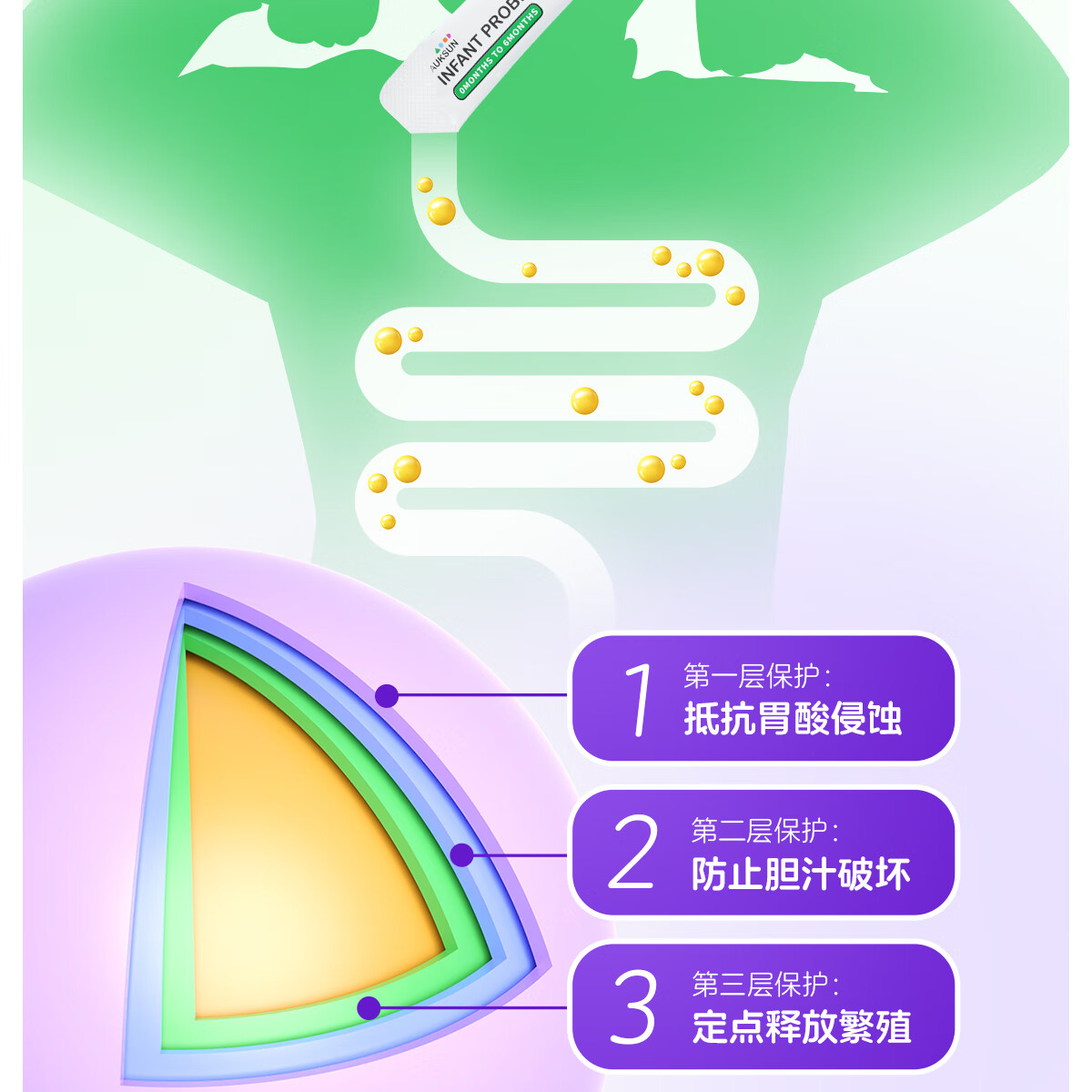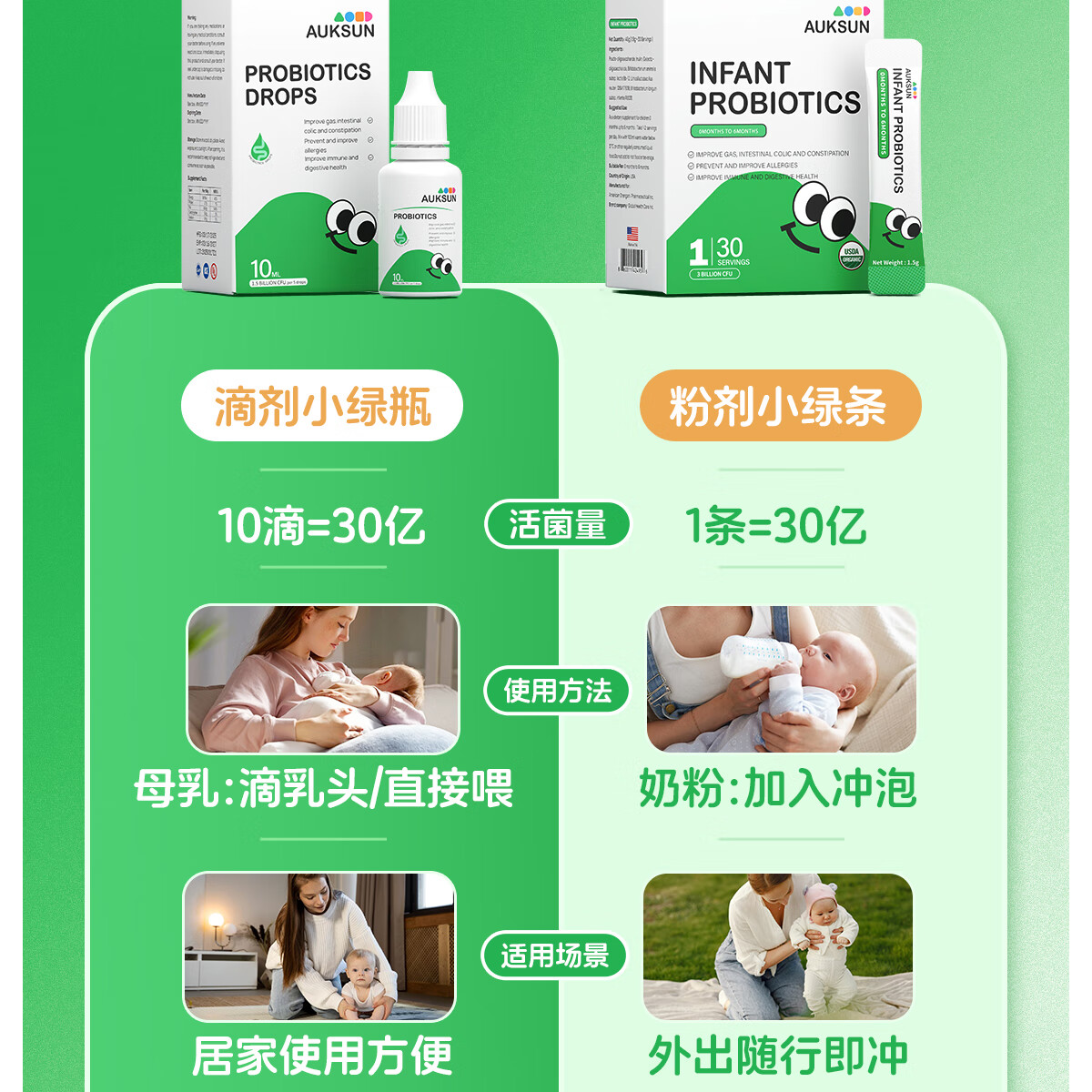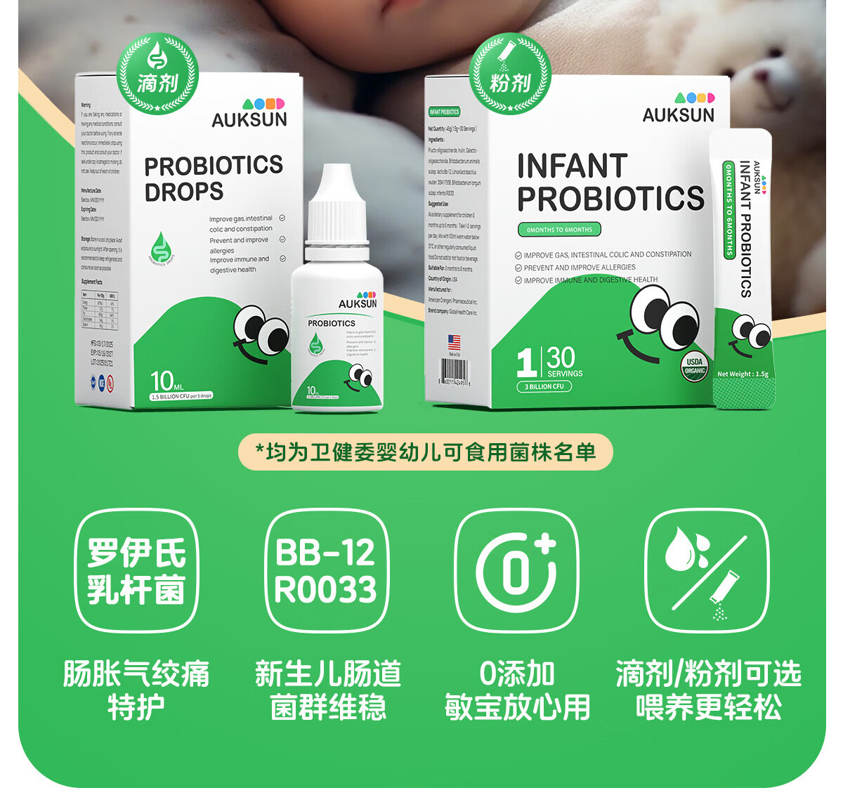 艾珂斯AUKSUN分阶益生菌滴剂0-6月新生婴幼儿宝宝改善肠胃双歧杆菌10ml