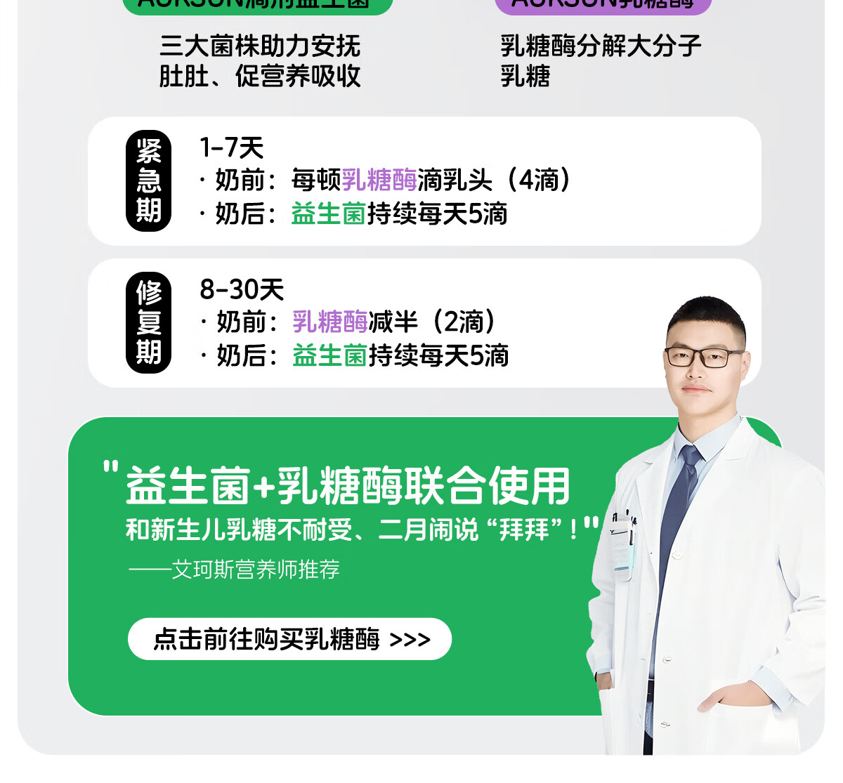 艾珂斯AUKSUN乳糖酶酸性滴剂冷链15ml新生婴幼儿宝宝奶瓣腹泻乳糖不耐受