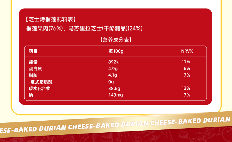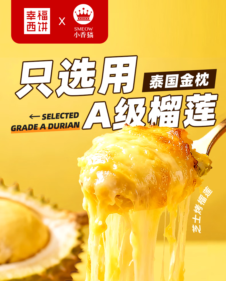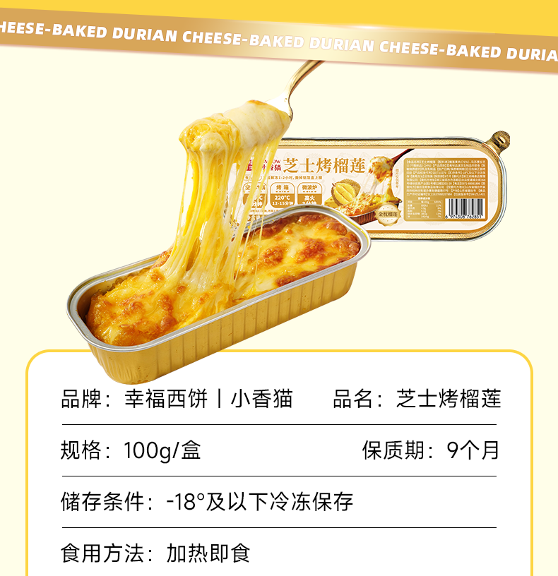 幸福西饼x小香猫 芝士焗烤榴莲泰国金枕A级榴莲果肉树熟进口无核 100g*4盒