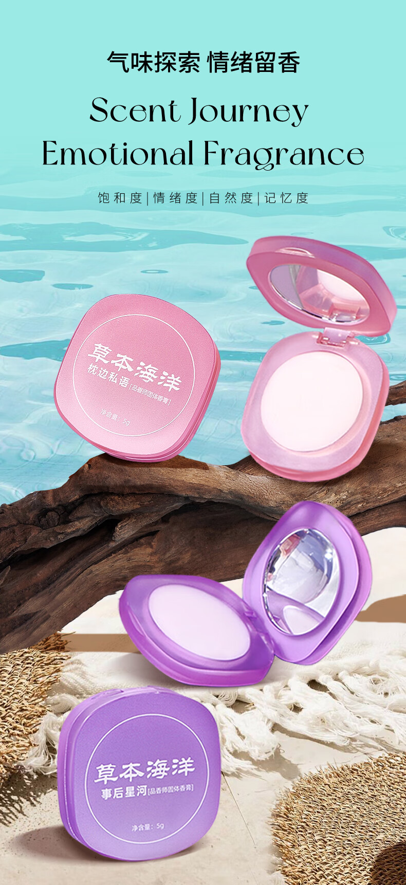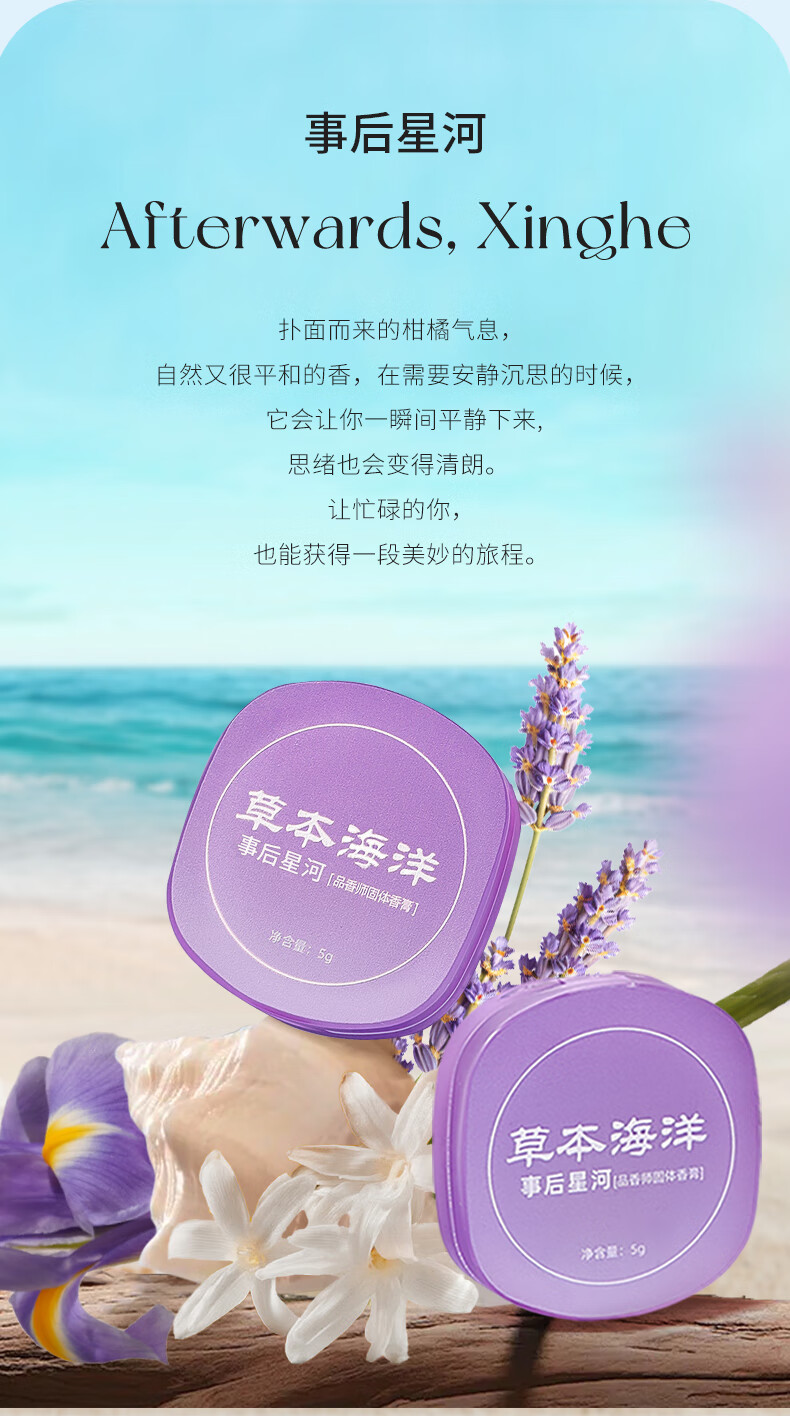 草本海洋品香师固体香水女士持久留香便携口袋香水女生 事后星河【2盒装】