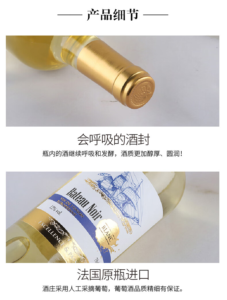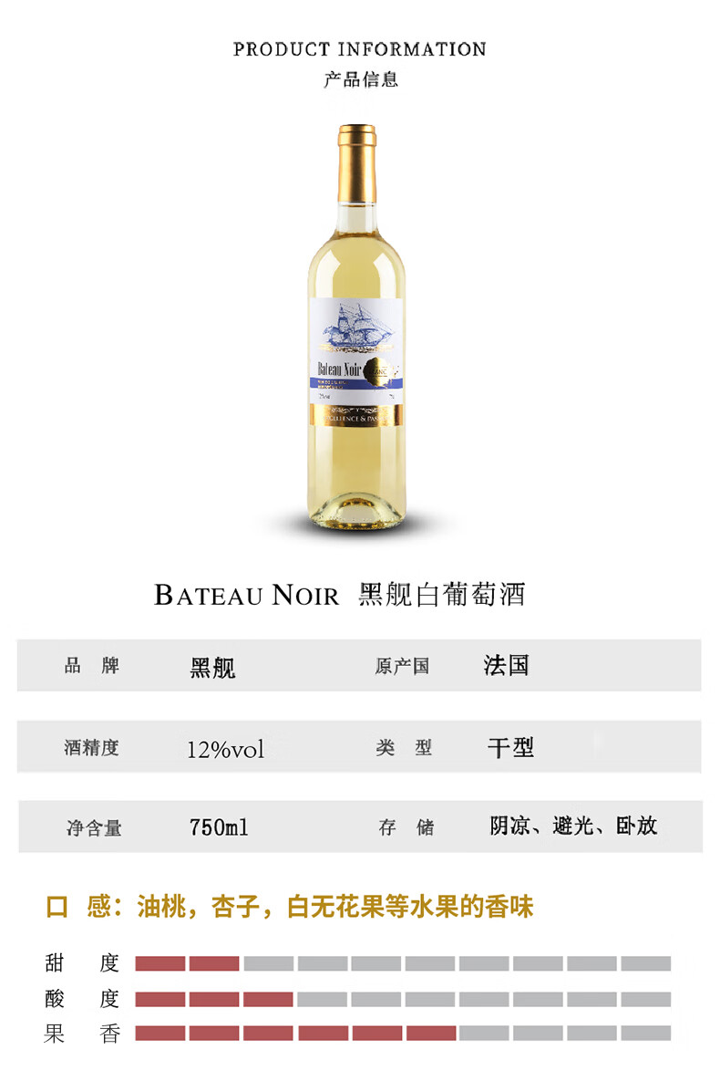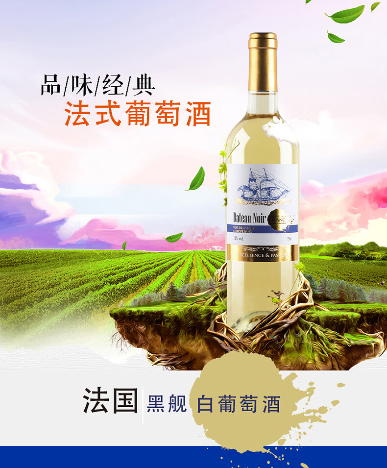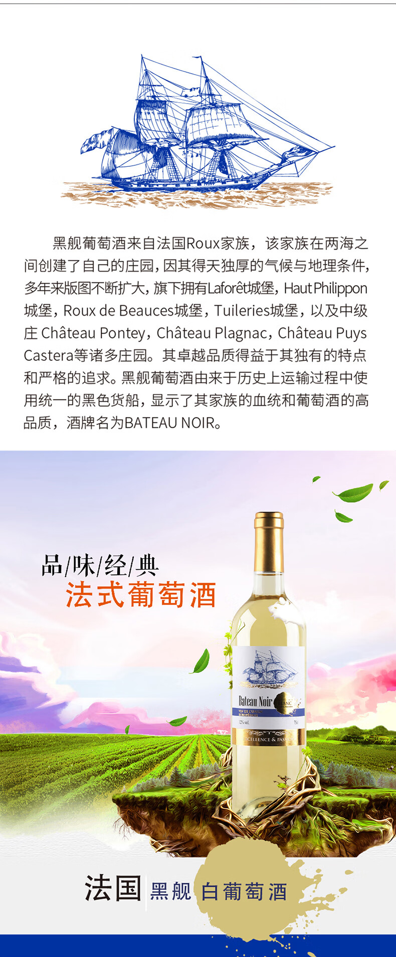 黑舰【玫嘉】法国Roux家族原瓶进口经典混酿干白葡萄酒12度750ml 干白整箱