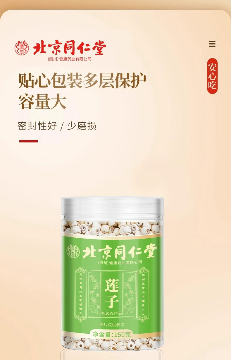 朕皇同仁堂朕皇白莲子去芯磨皮无芯干货白莲米搭银耳百合连子正品 【1盒体验装】150g/盒