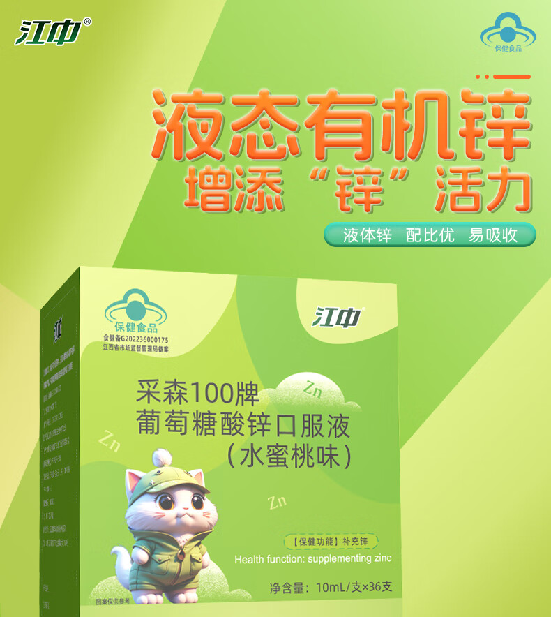 江中【36支/盒】葡萄糖酸锌口服液儿童补锌青少年成人孕妇乳母液体锌 【每支仅需0.82】3盒108支