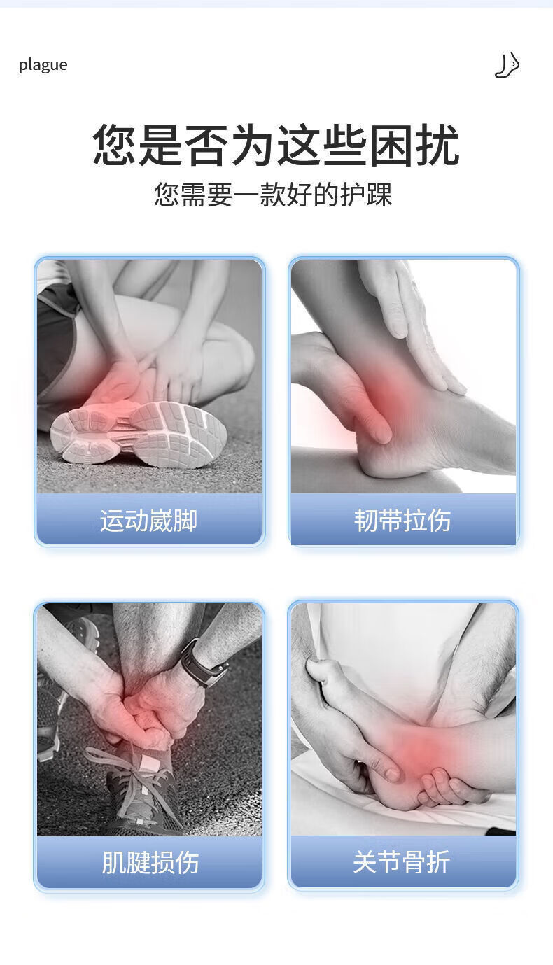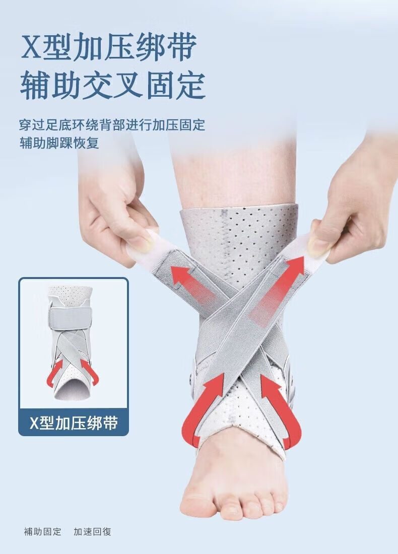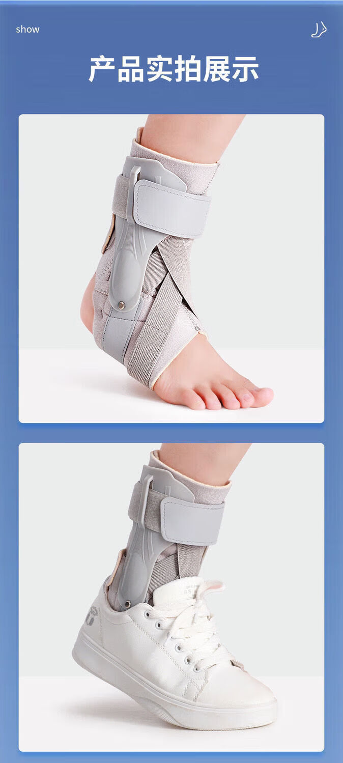 通用脚踝扭伤护具用 护踝固定康复男运动女扭伤恢复器防崴脚踝 灰色[固定康复护踝/左右脚通用 M(36-39码)