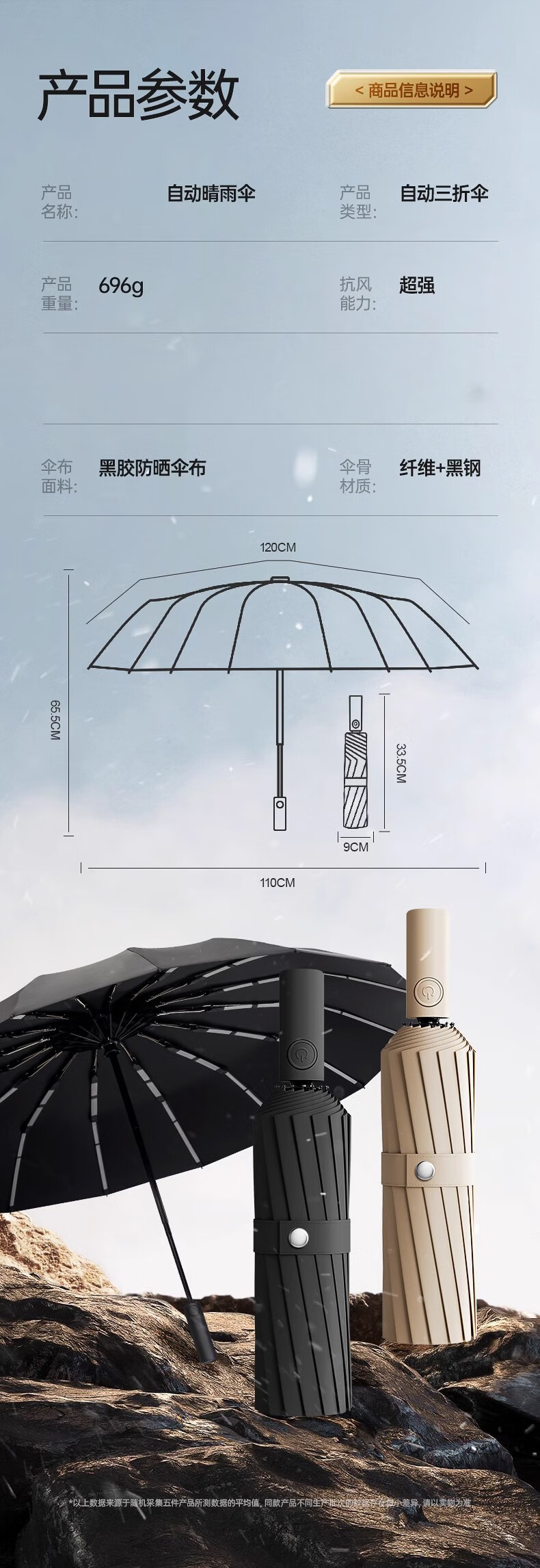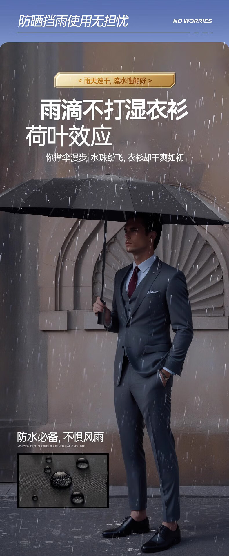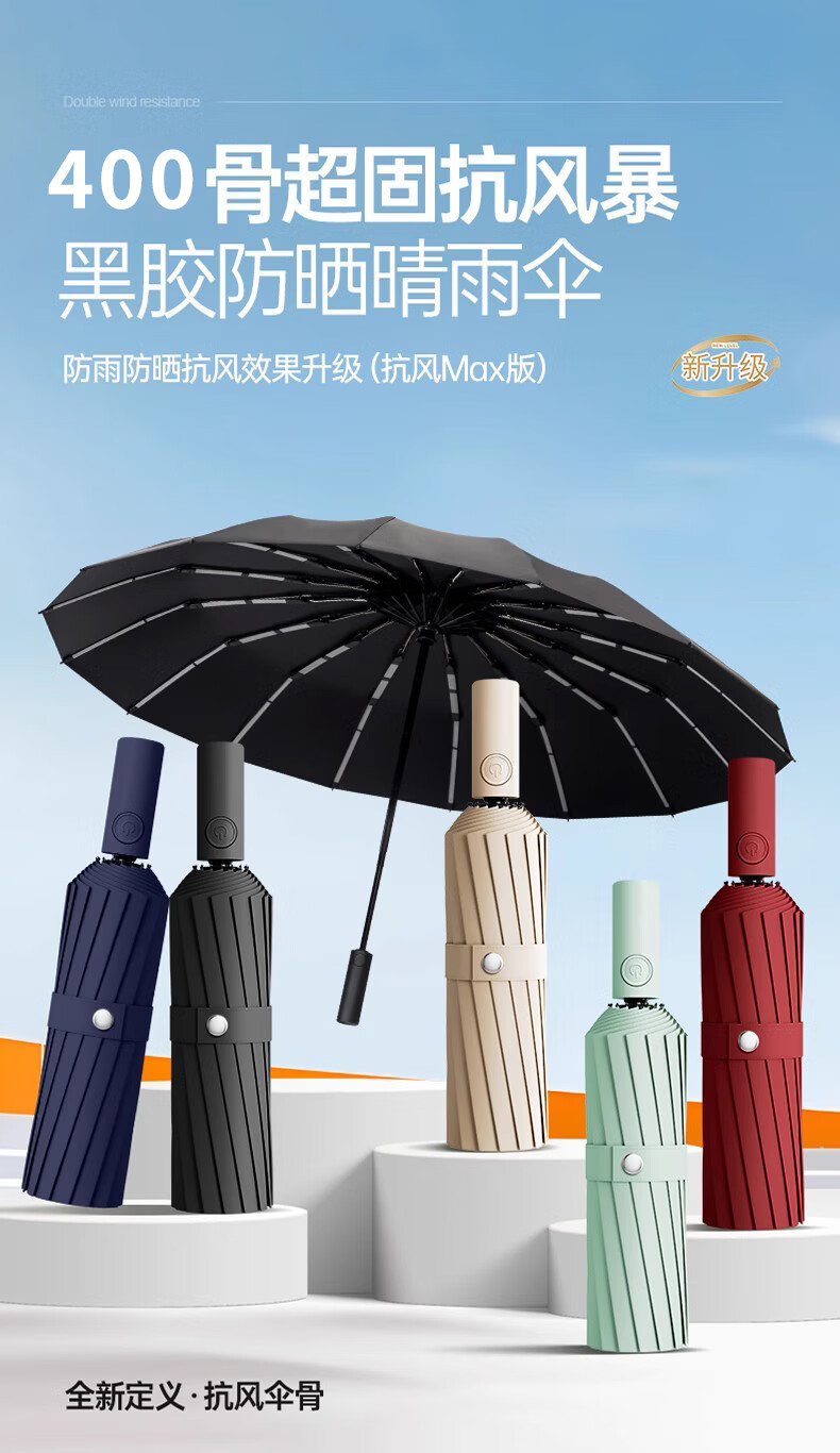 明佳匠400骨 雨伞全自动男女便携折叠大号遮阳伞商务太阳伞防晒晴雨两用 【400骨】加固黑胶自动伞-高级黑 【可定制logo-晴雨两用-不漏雨】