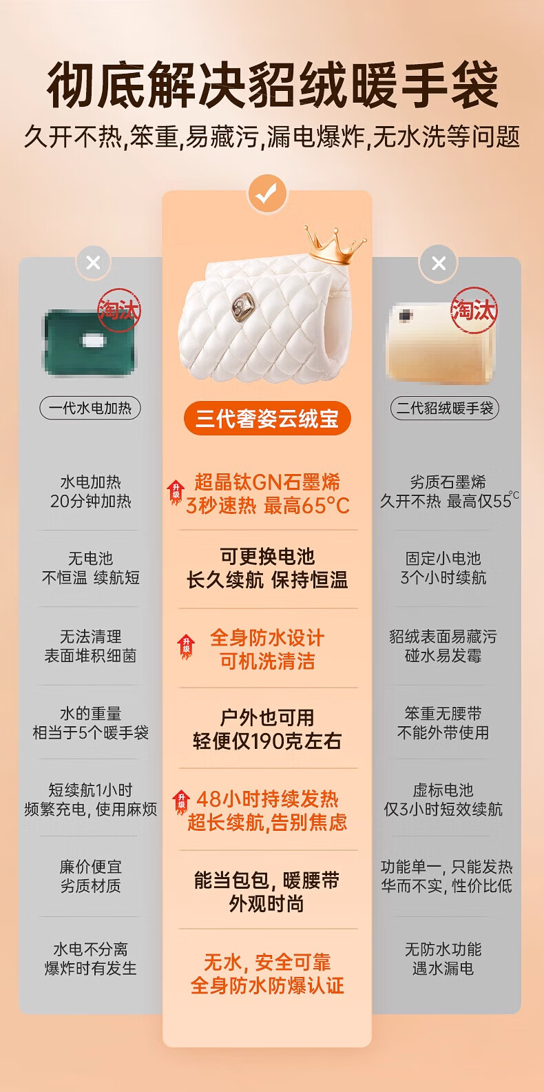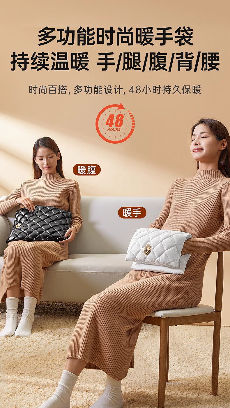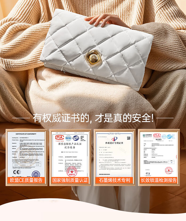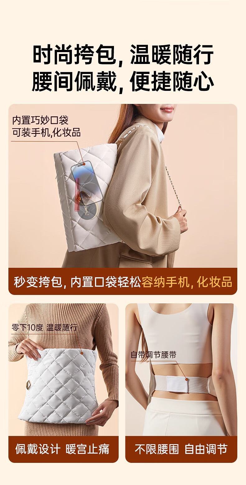 奢姿【2025新款】石墨烯暖手袋暖手宝充电大号暖宝宝 暖床暖宫腰带热水袋加热取暖器 可挎式包包礼盒装 【充电暖手16小时】双面石墨烯秒热65℃