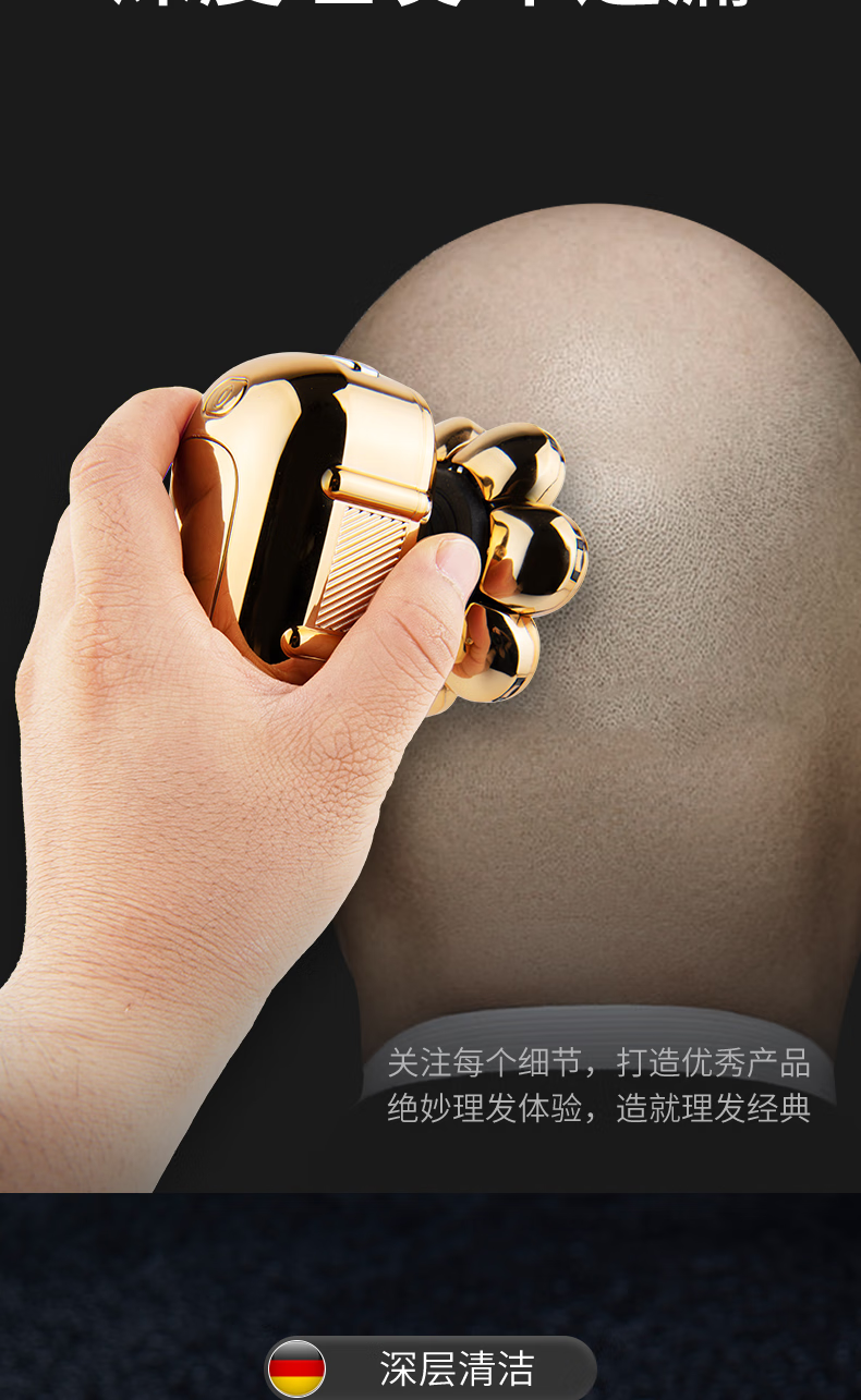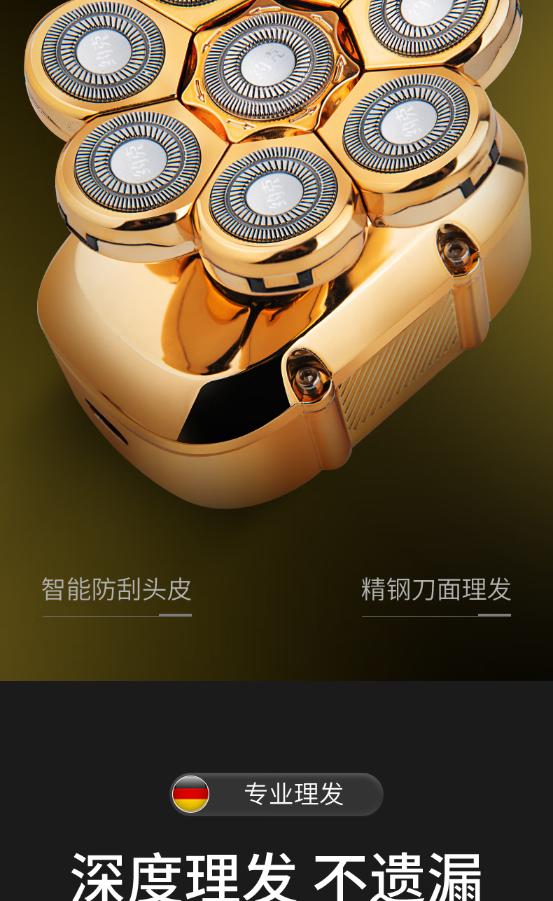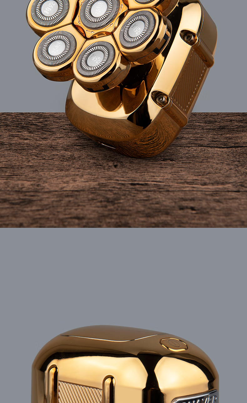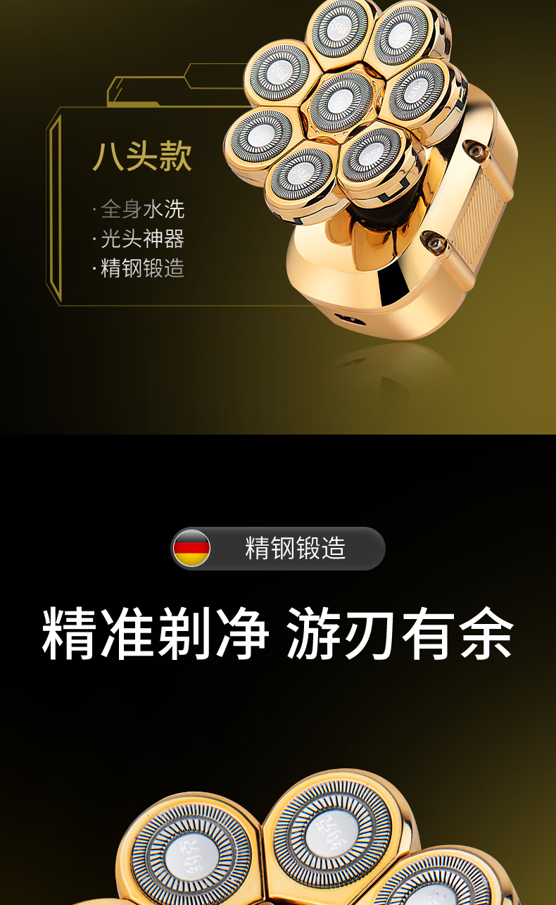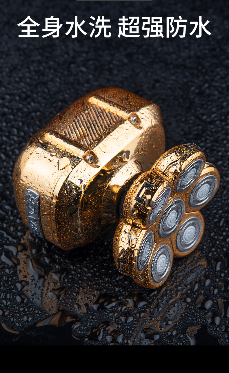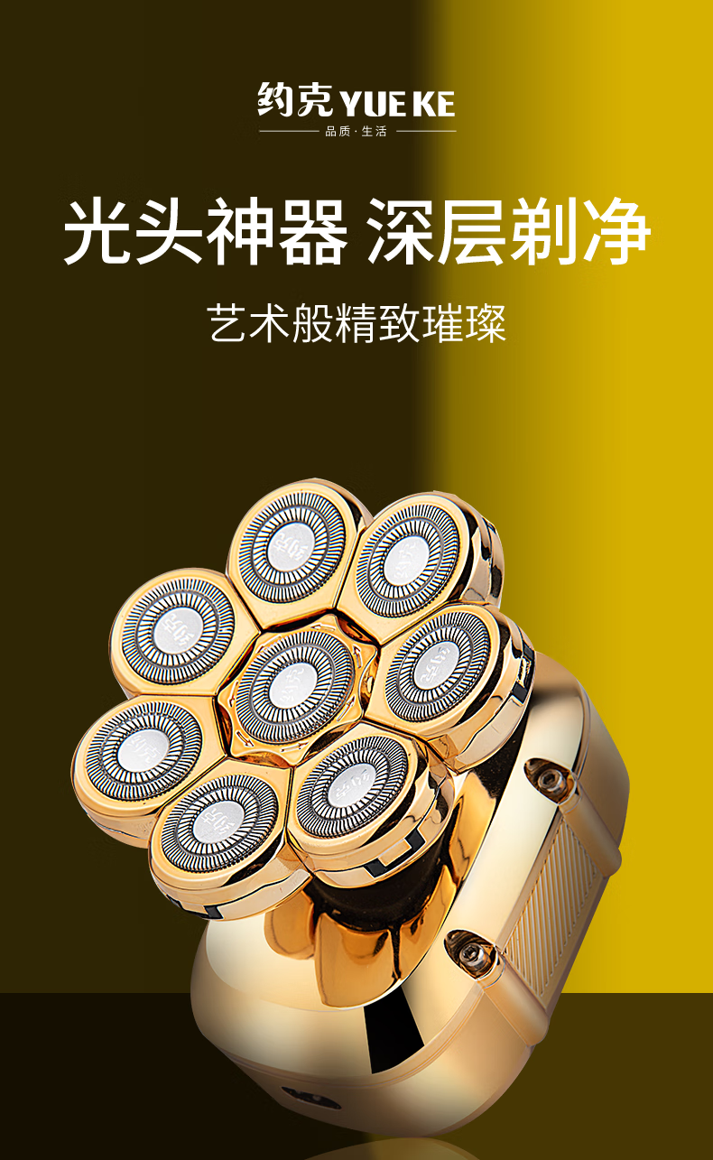 约克 (YUEKE)剃光头神器八刀头自刮光头机多功能剃须刀男士电动刮胡刀全身水洗充电理发器情人节礼物 5978金色八刀头剃须刀单机+收纳包(带液晶显示)