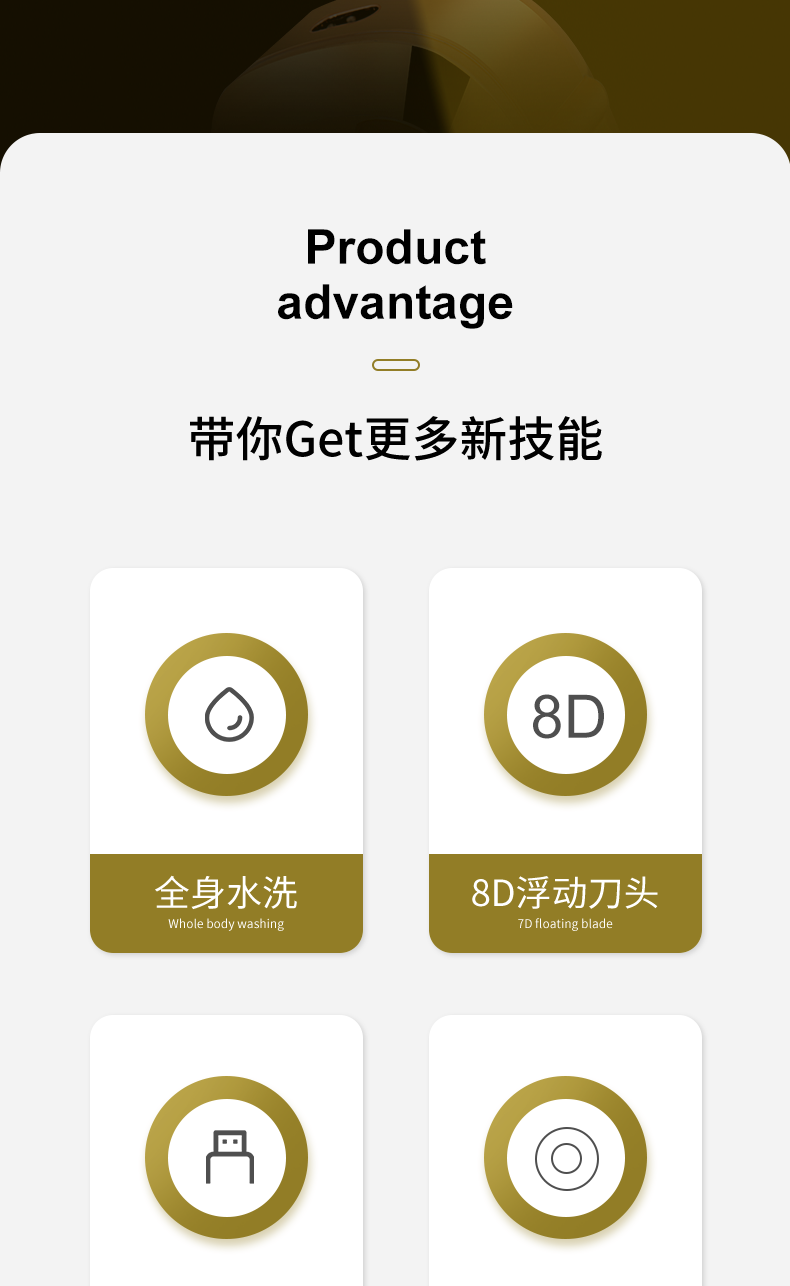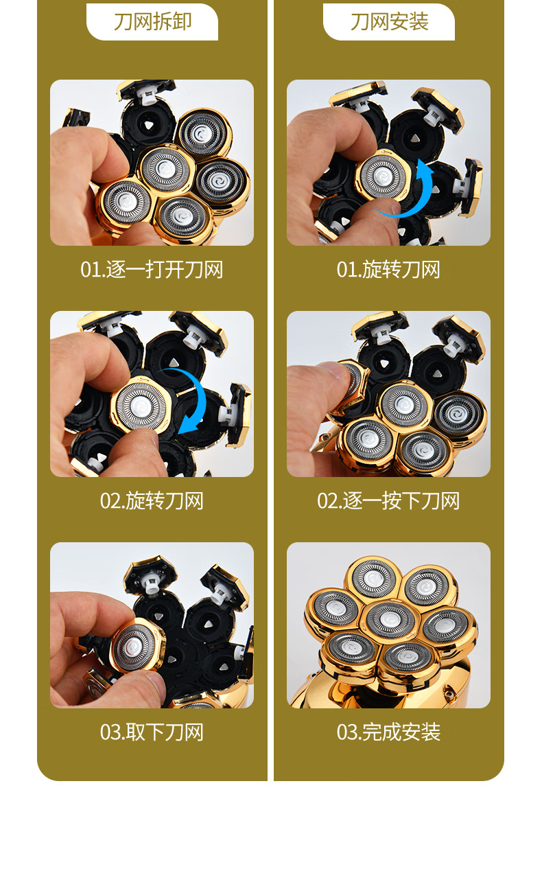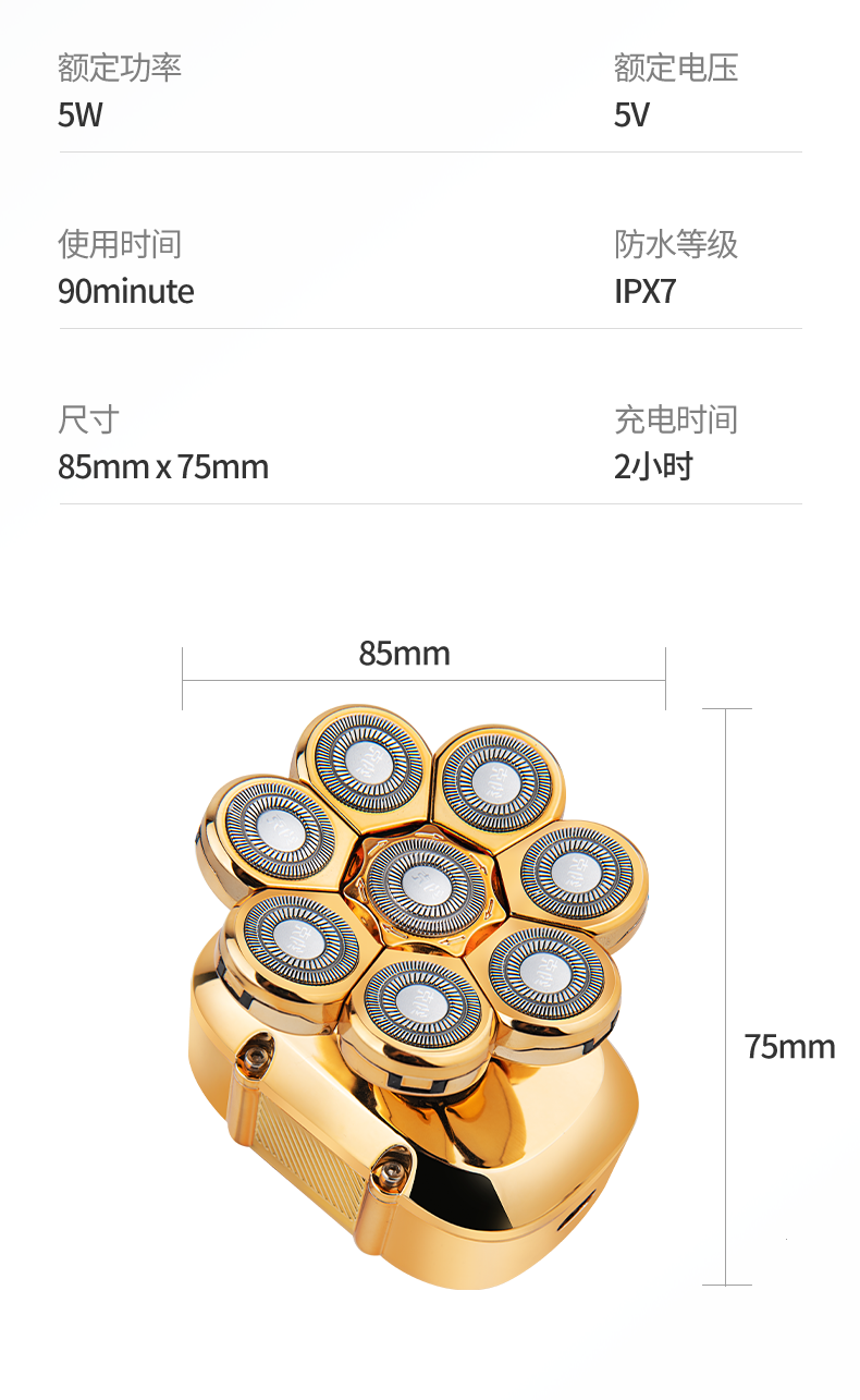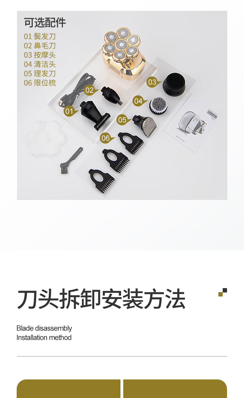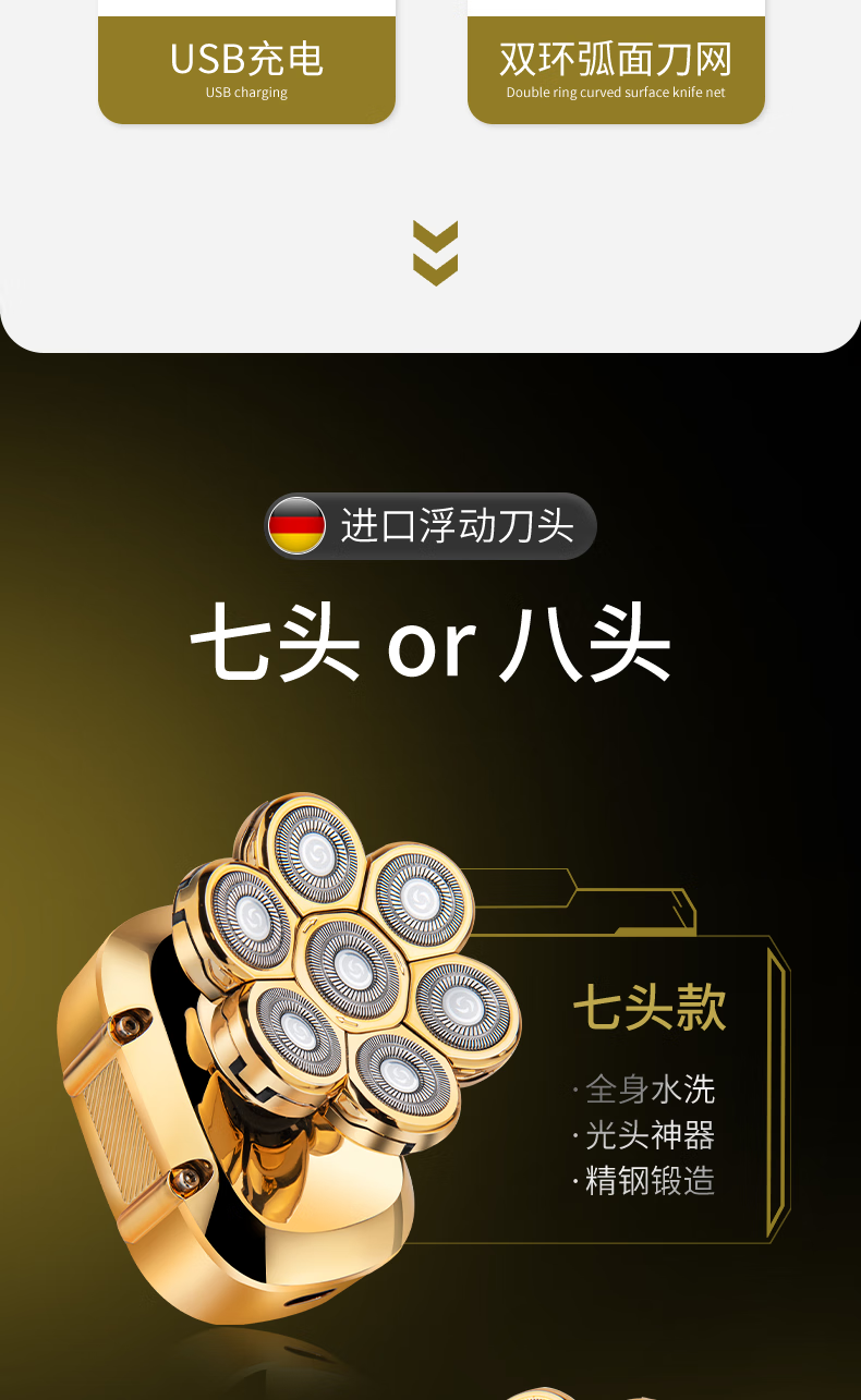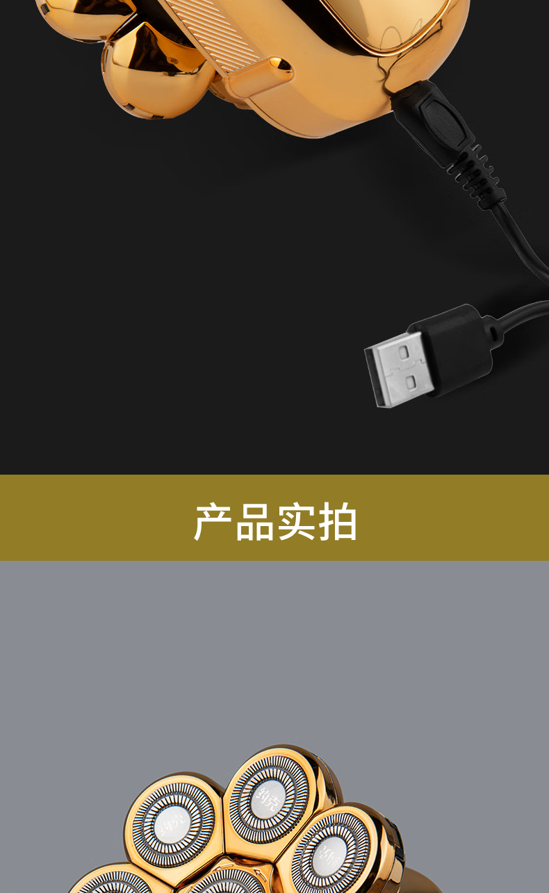 约克 (YUEKE)剃光头神器八刀头自刮光头机多功能剃须刀男士电动刮胡刀全身水洗充电理发器情人节礼物 5978金色八刀头剃须刀单机+收纳包(带液晶显示)