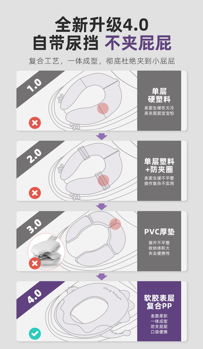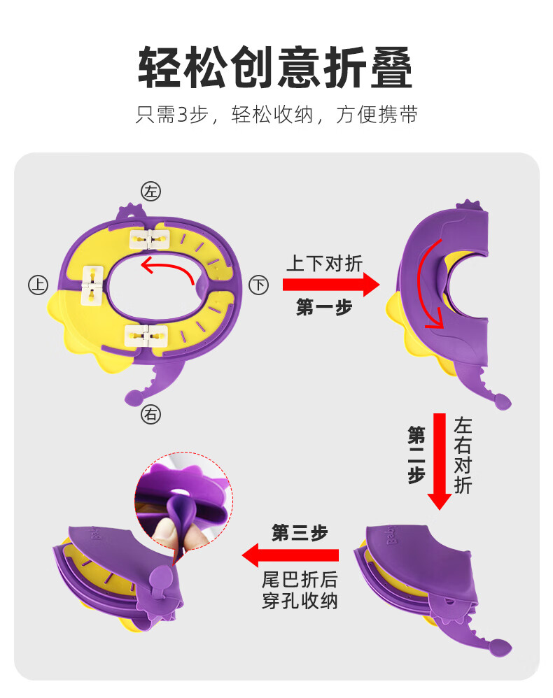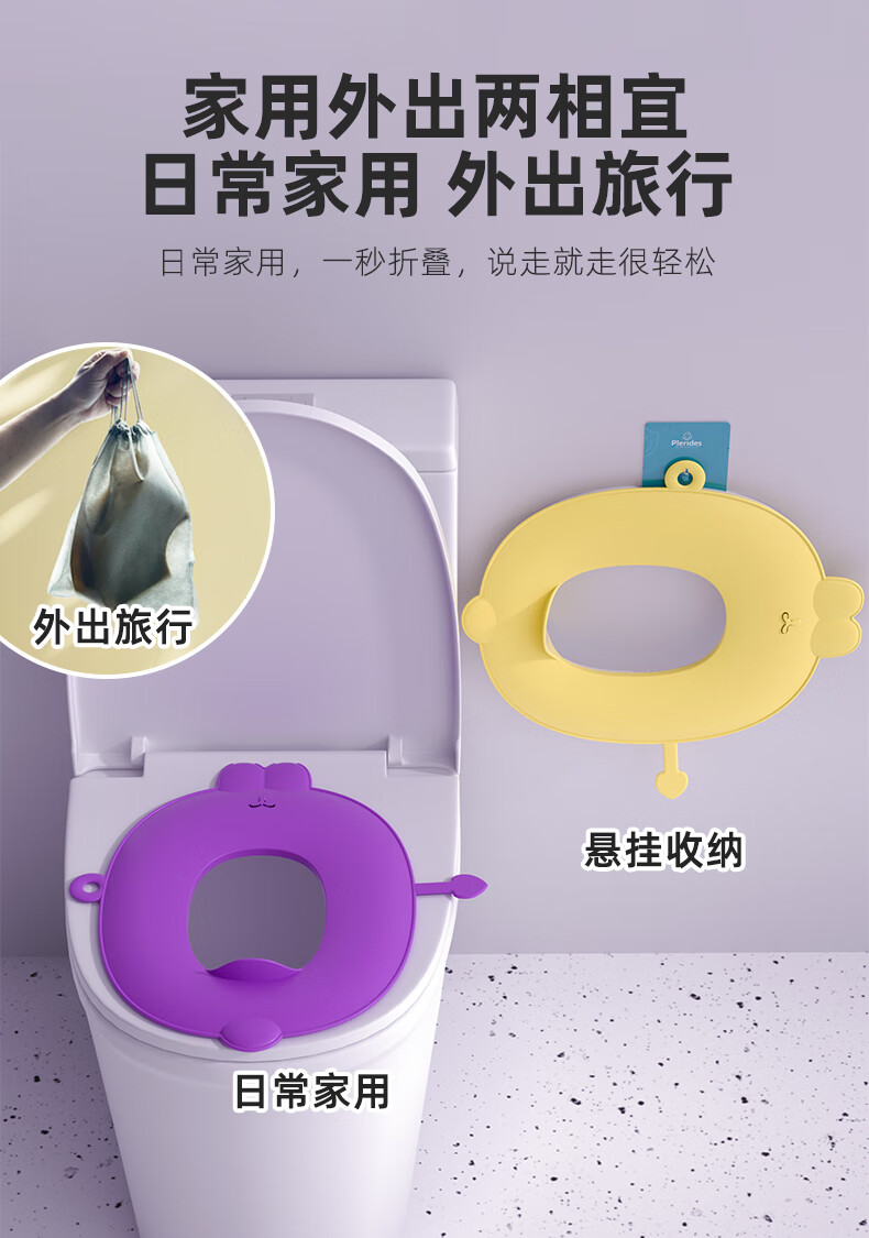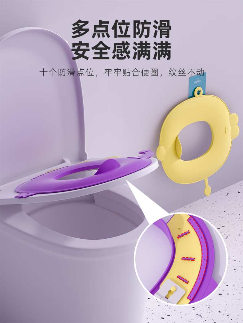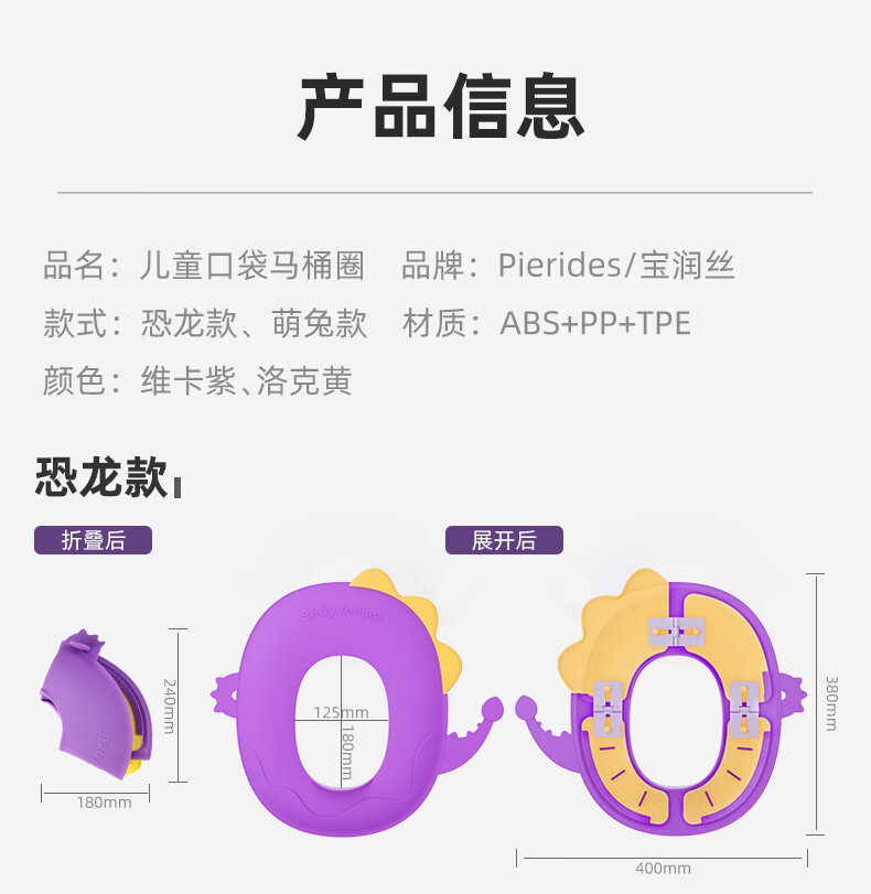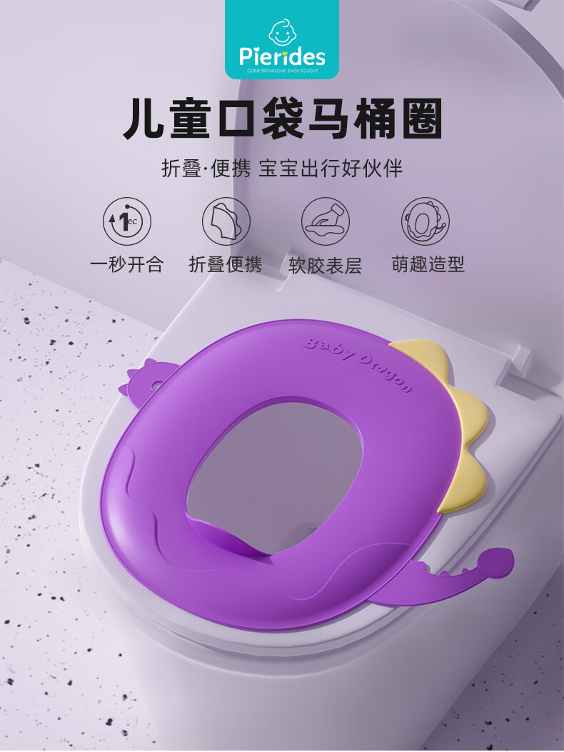 宝润丝(PIERIDES)宝润丝儿童折叠马桶圈口袋坐便器宝宝旅行酒店厕所外出坐便垫便携 【恐龙款】维卡紫